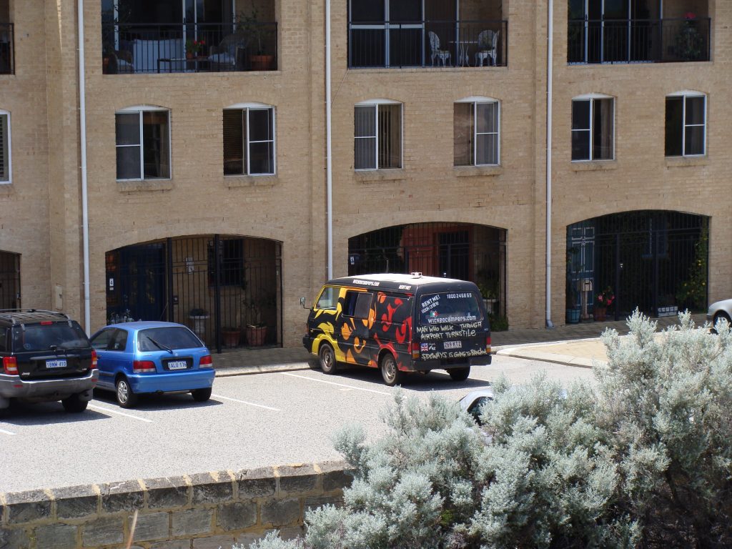 Erinnert ein klein wenig zumindest an den Hamburger Hafen…Unser Camper, der wohl älteste, den Wicked noch hatte…So sieht es dann teilweise aus. Die Straße ist neu gemacht und im Norden von Perth sind die Straßen für Zieh-Wohnungs-Siedlungen auch schon fertig…