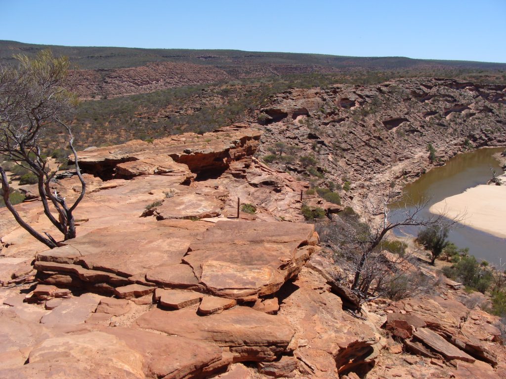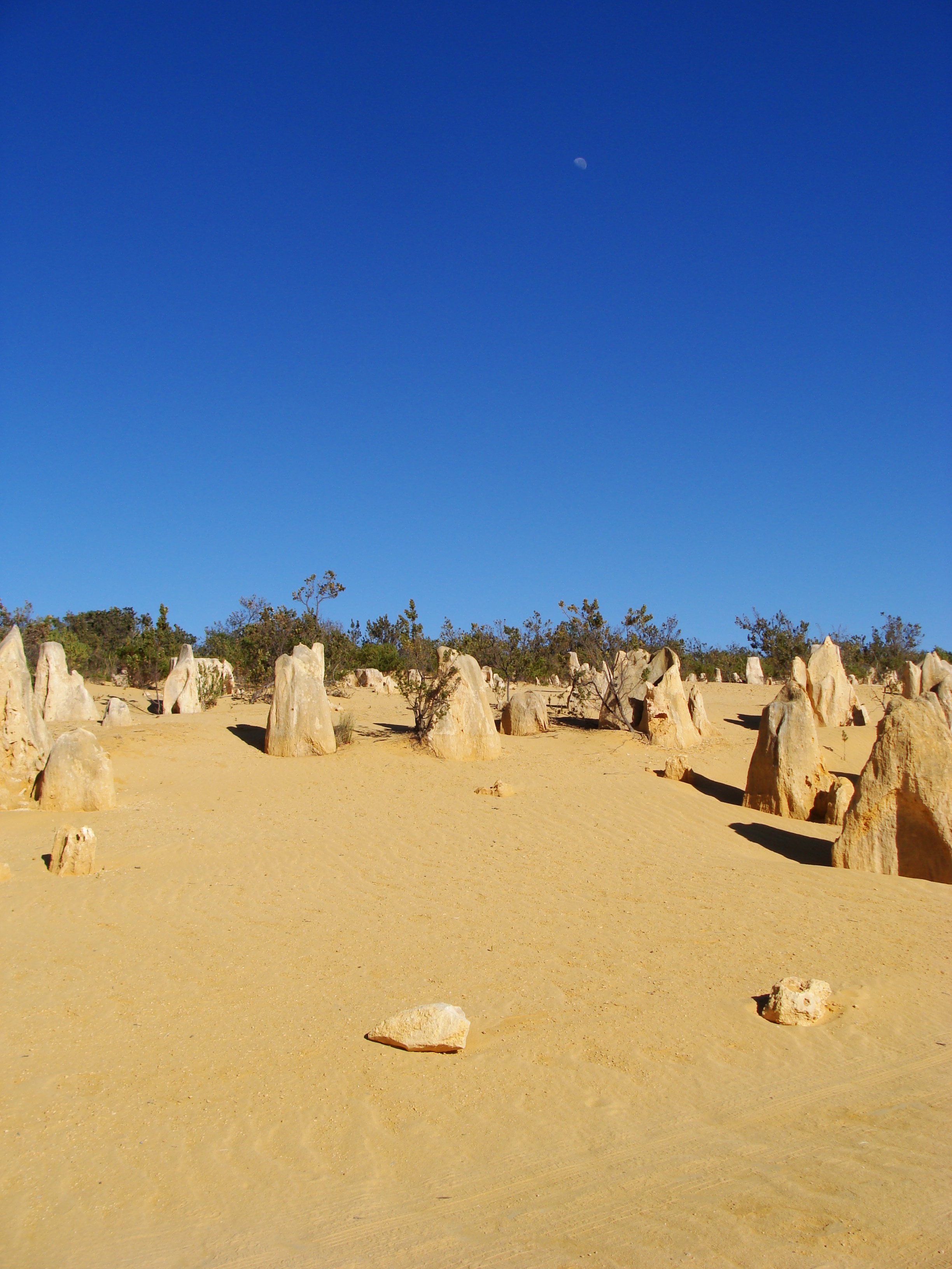 Um euch die winzigen Details zu ersparen, gibt es hier mal nur eine Zusammenfassung. Zunächst ging es von Perth aus gen Süden nach Fremantle, aber da da nicht wirklich viel los war, schon bald gen Norden bis nach Cervantes, wo „The Pinnacles Desert“ ist. Für den Sonnenuntergang hat es nicht gereicht und so wurde die Attraktion kurz nach Sonnenaufgang angeschaut bevor es nach Kalbarri ging. Da haben wir zwei Tage Station gemacht und sind bei gefühlten 45 Grad drei Stunden Wandern gewesen, ohne Schatten, dafür aber mit vielen Fliegen…