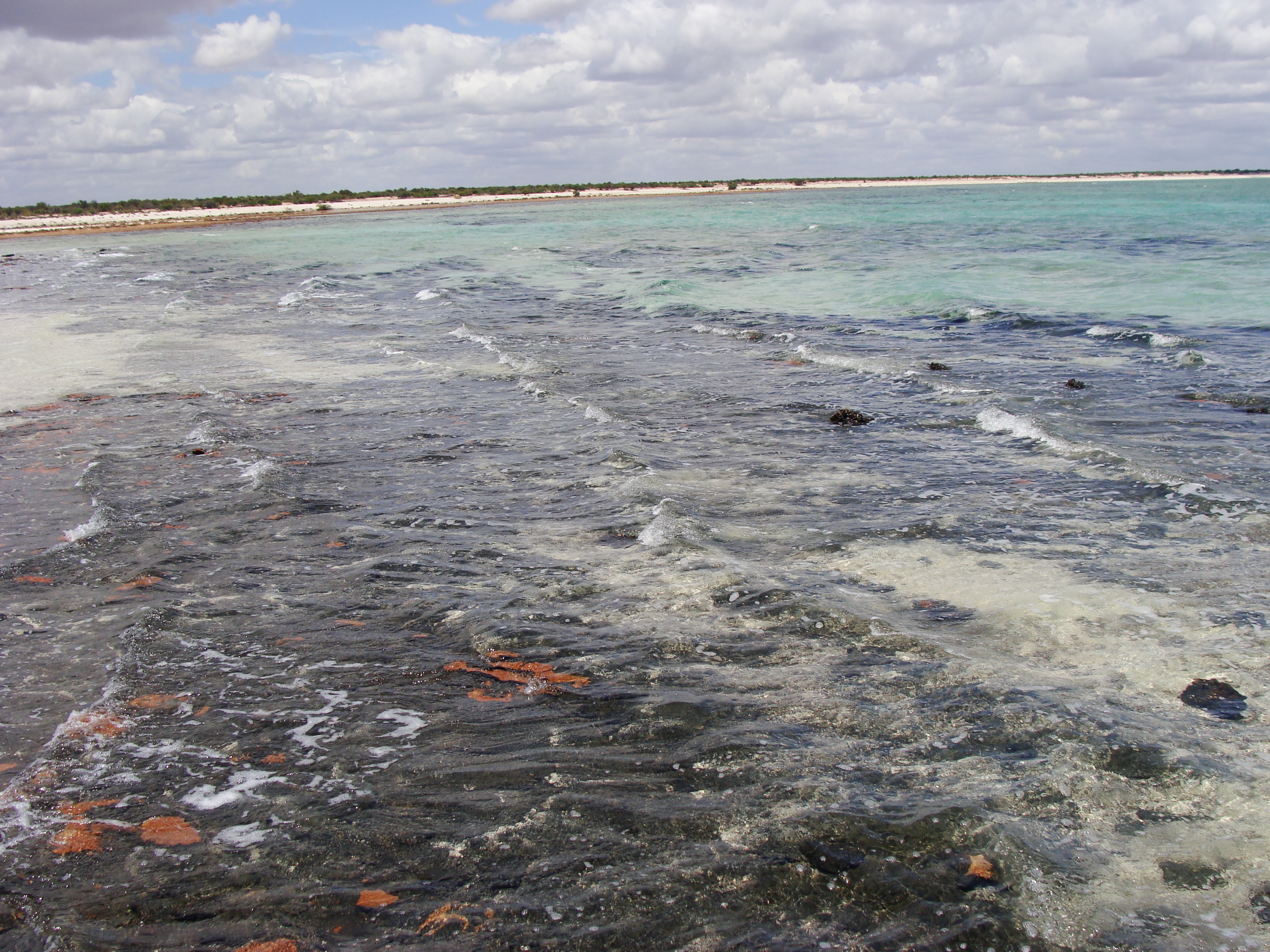 Stromatoliten, quasi wachsende Steine, die von Bakterien in den letzten 3.5 Mrd Jahren produziert wurden und den Sauerstoffanteil in der Luft erst auf lebenswerte 20% schraubten.