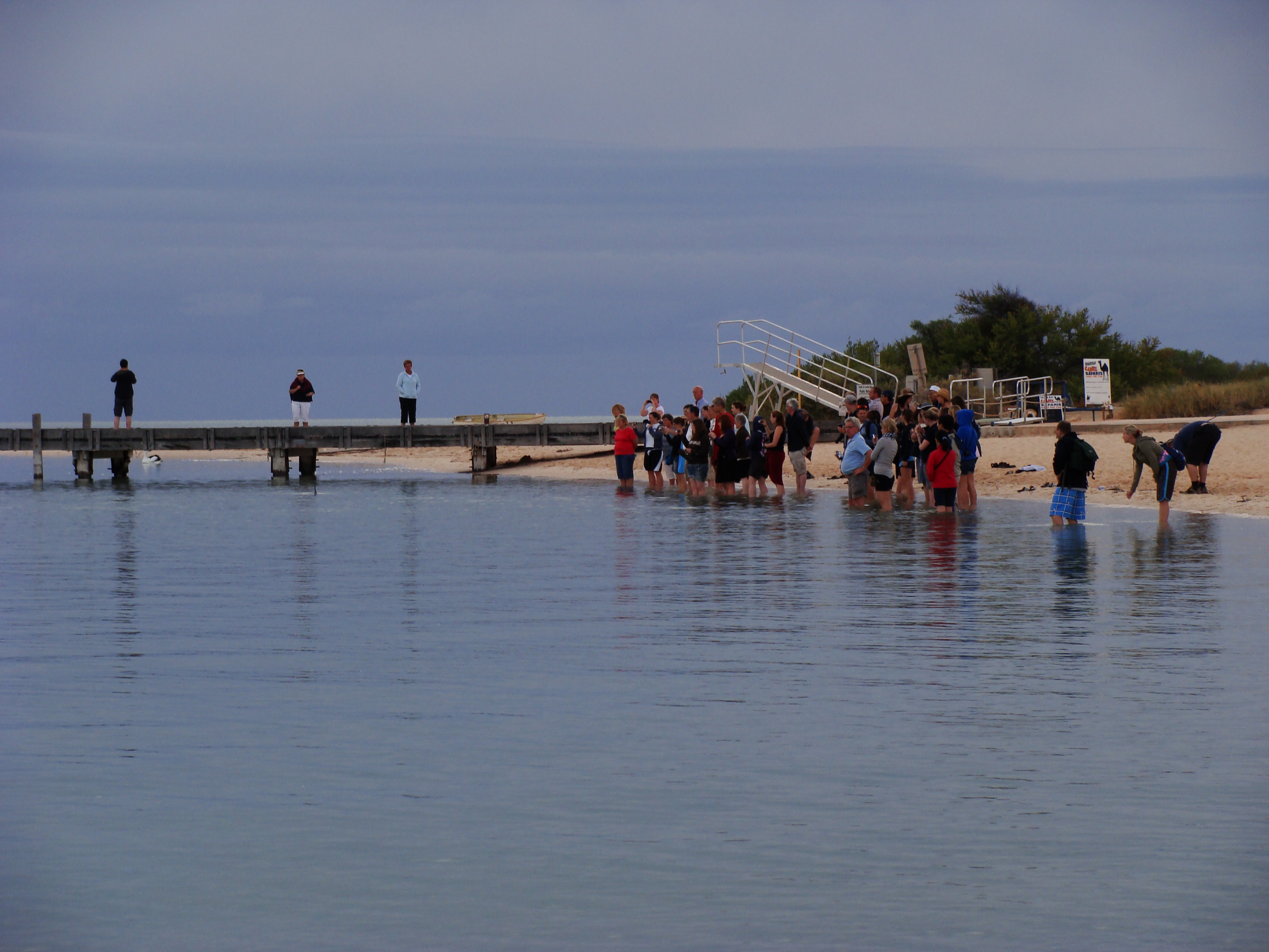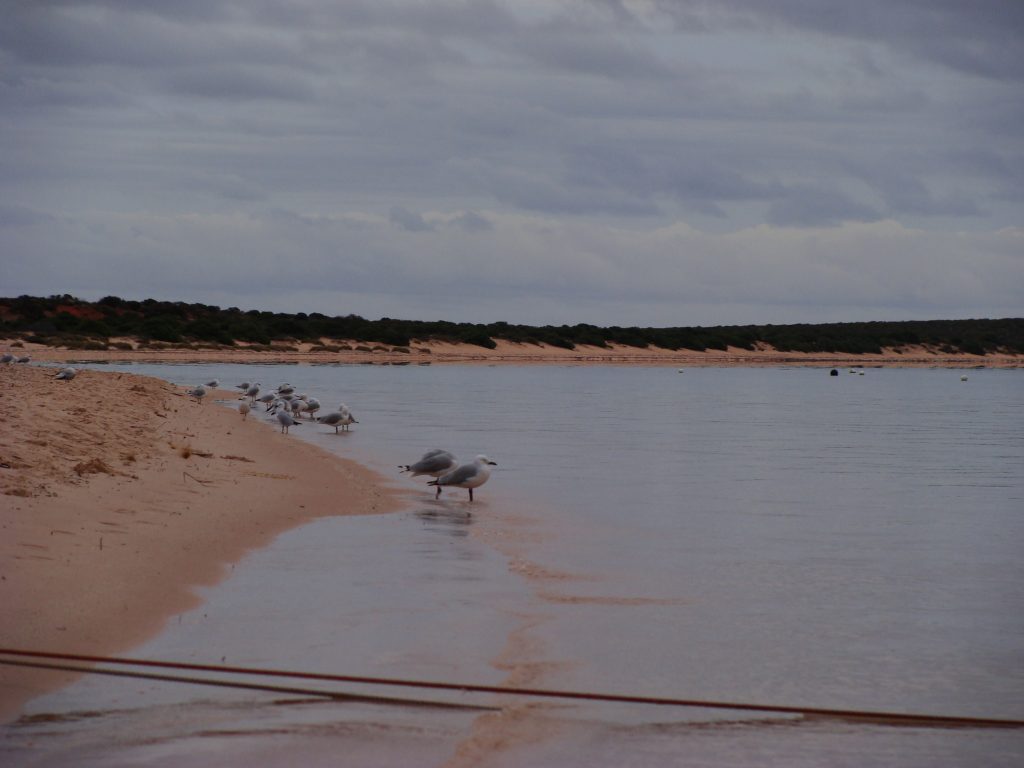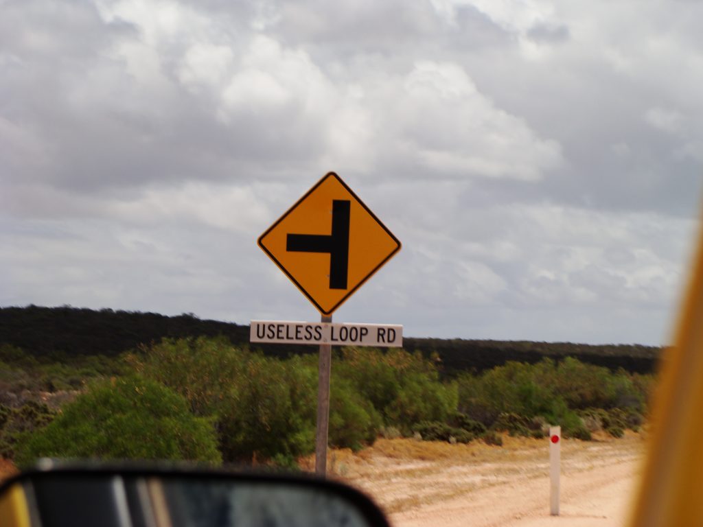 Nächster Stop war Monkey Mia, dem weltbekannten Delfin-Resort in der Shark Bay, wo es die weltbekannte Delfin-Fütterung mit wilden Delfinen gab. Da war der Strand dann auch schon um halb acht Uhr morgens mit Touristen gefüllt (Ich hatte vorher schon den Sonnenaufgang fotografiert). Bei Monkey Mia ist auch die „Useless Loop Rd“, die nach „Useless Loop“ führt. Die Australier haben schon merkwürdige Namensgebung…