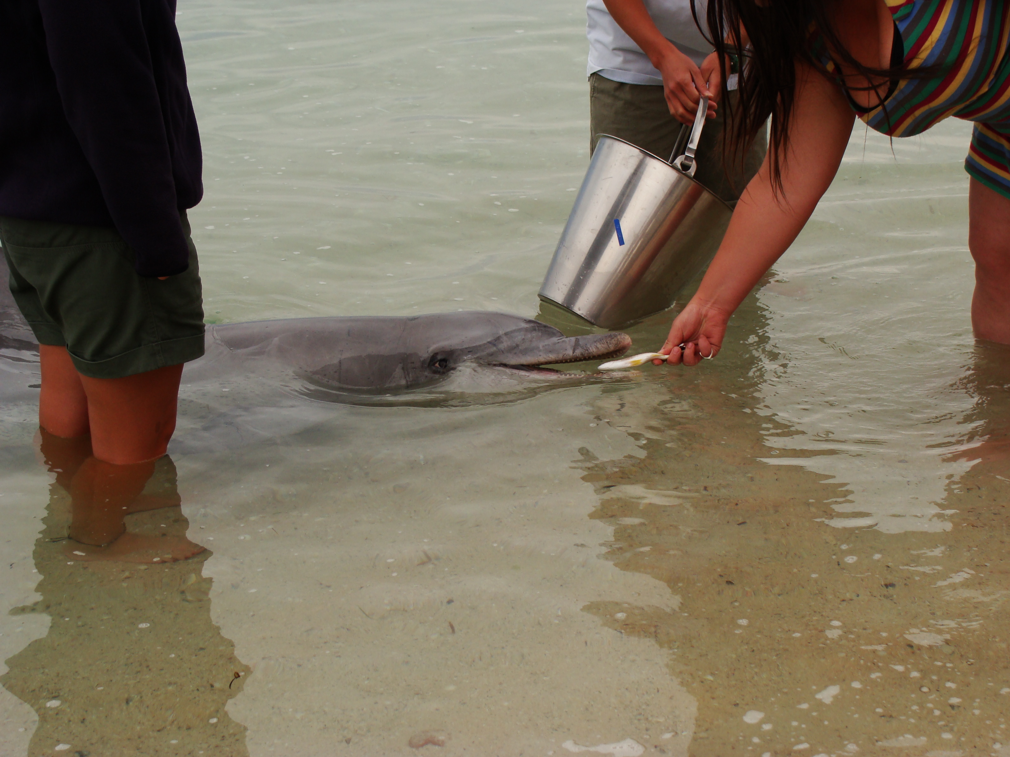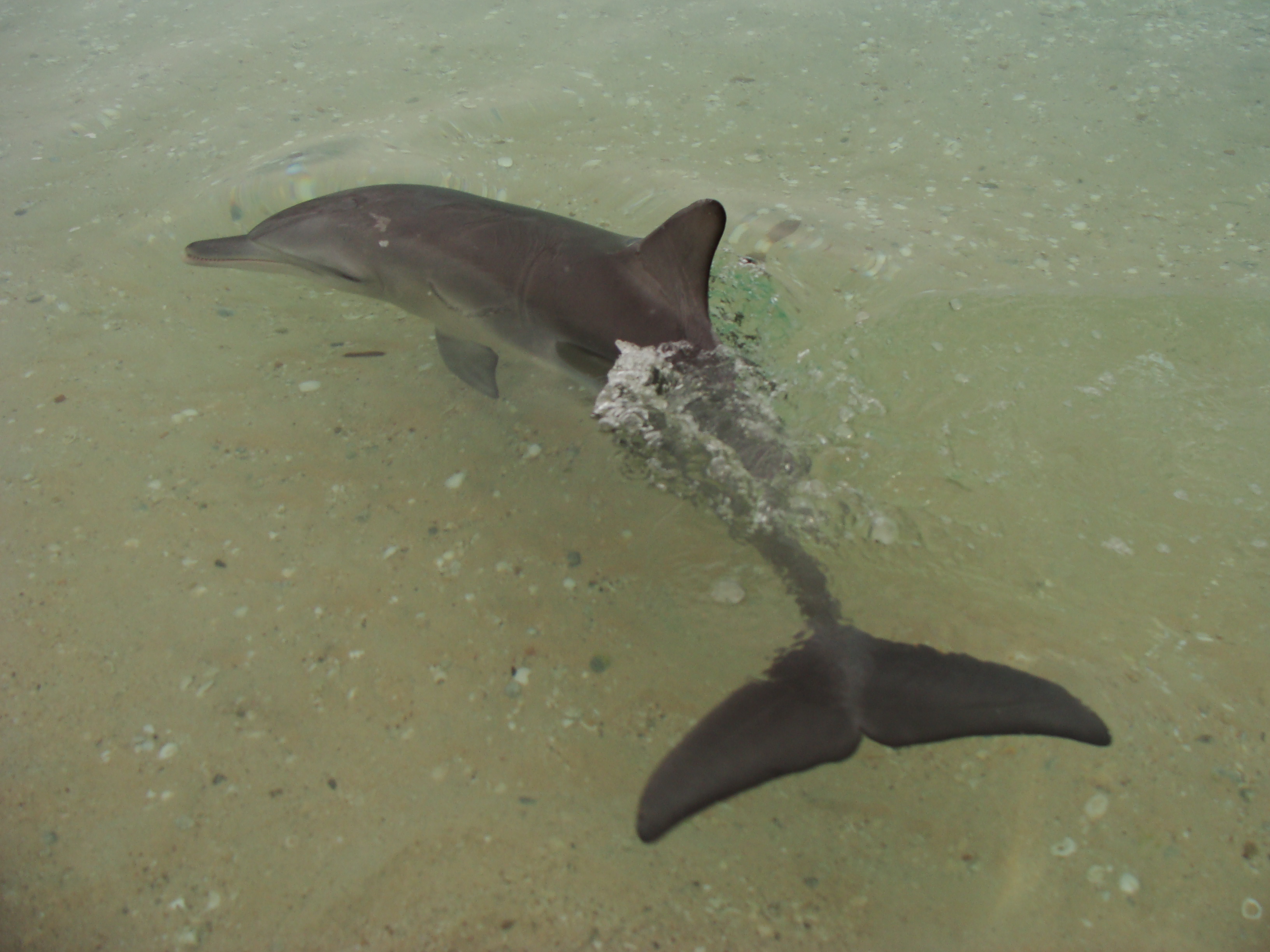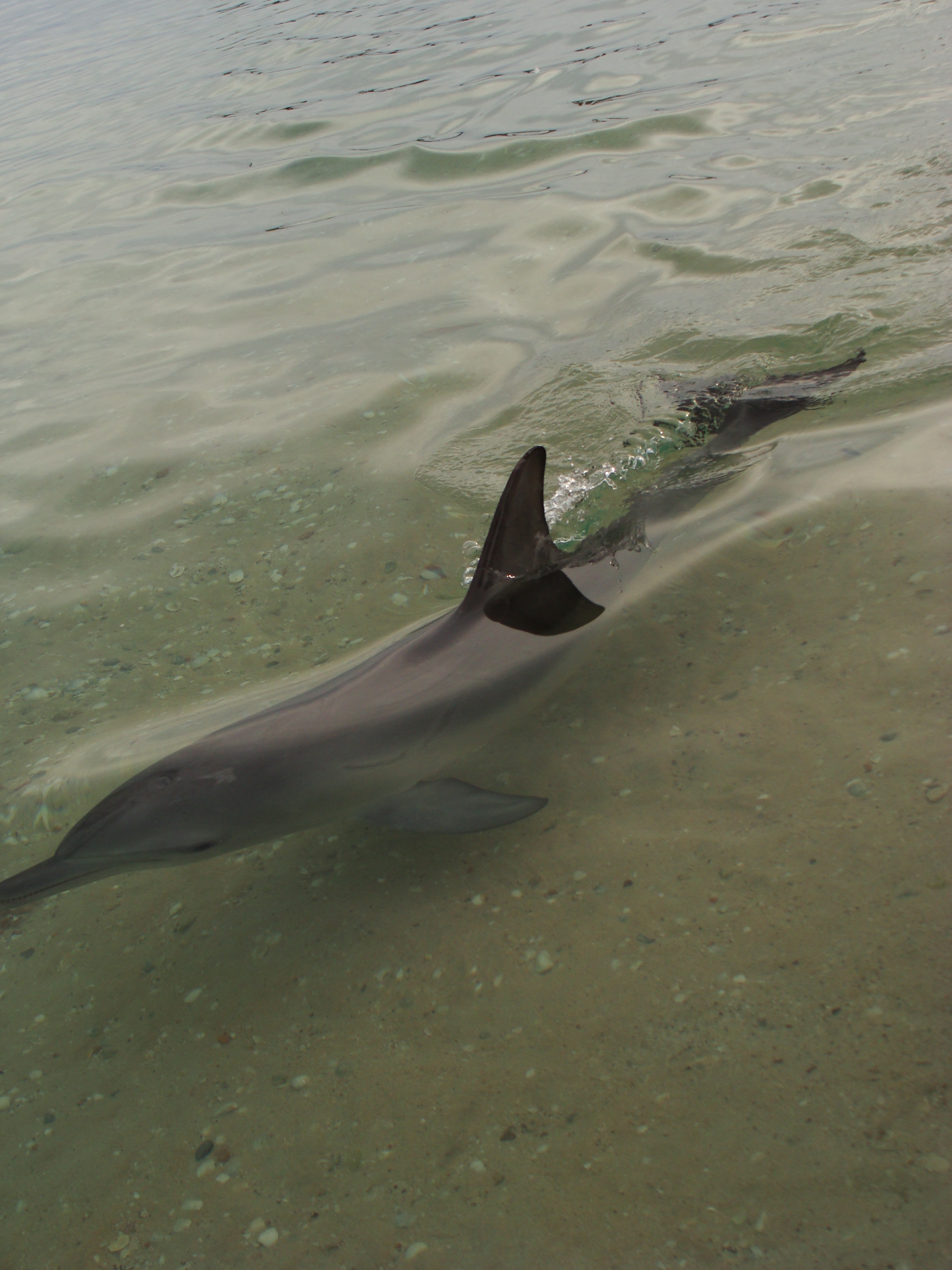 Die MöwenDie TouristenDa ist er, der erste Delfin. Es sind alles Wild-Dolphins, die NICHT dressiert oder in Becken gehalten werden. Trotzdem kommen sie täglich zur Fütterung an den Strand.