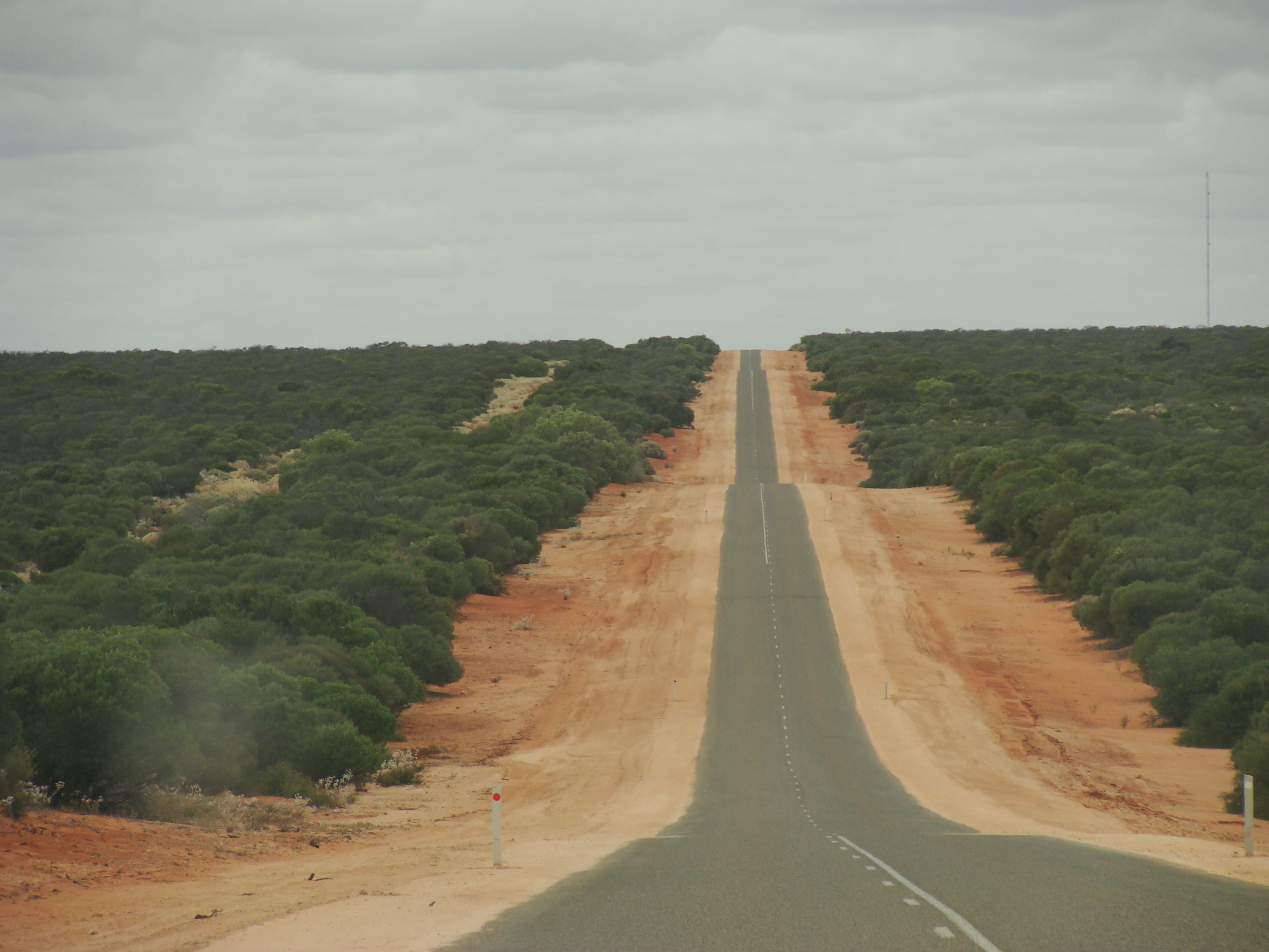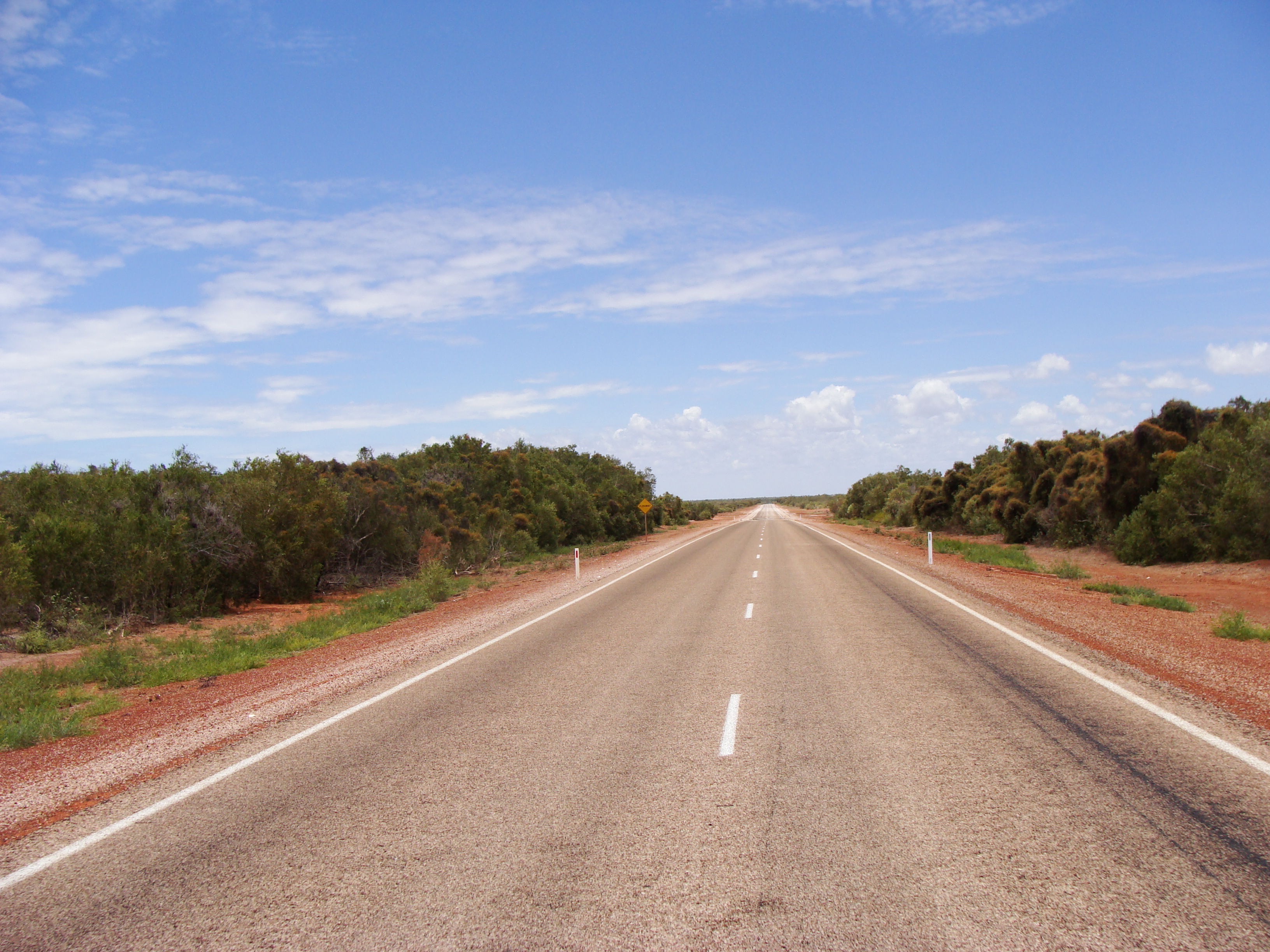 Es macht schon Spaß, auf der „falschen“ Seite der Straße zu fahren. Allerdings sind die Distanzen in Western Australia einfach zu riesig. Da muss man schon mal 700km von einer Attraktion zur nächsten fahren. Und das sieht dann so aus, dass die Straße auch für 40km gerne mal nur gerade aus geht. Also bis zum Horizont nur gerade aus und wenn man da ist, dann wieder und wieder und wieder und wieder…