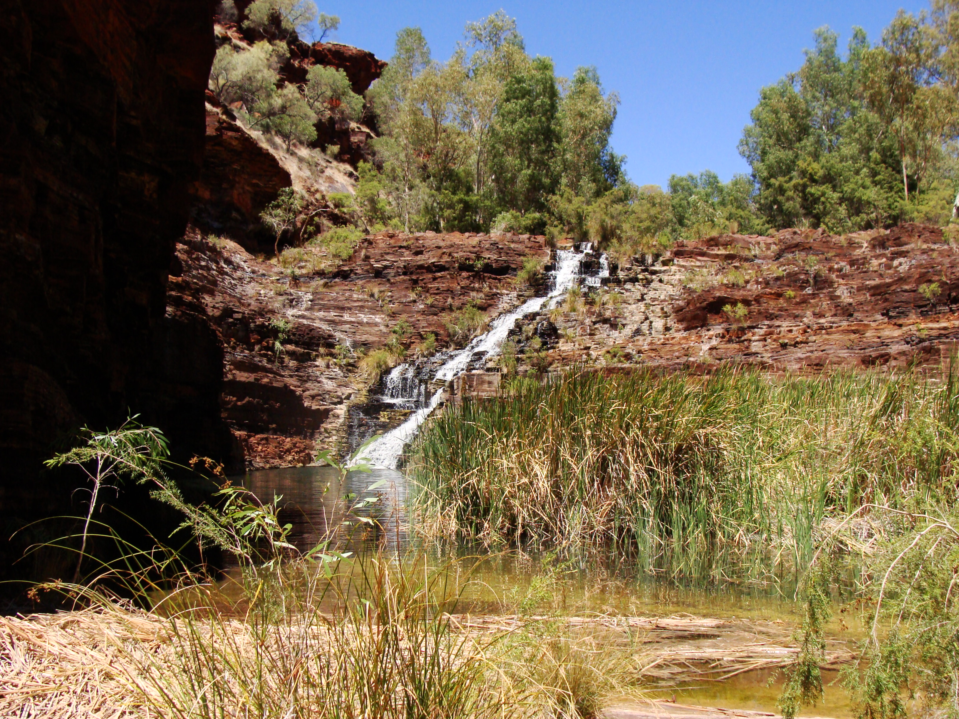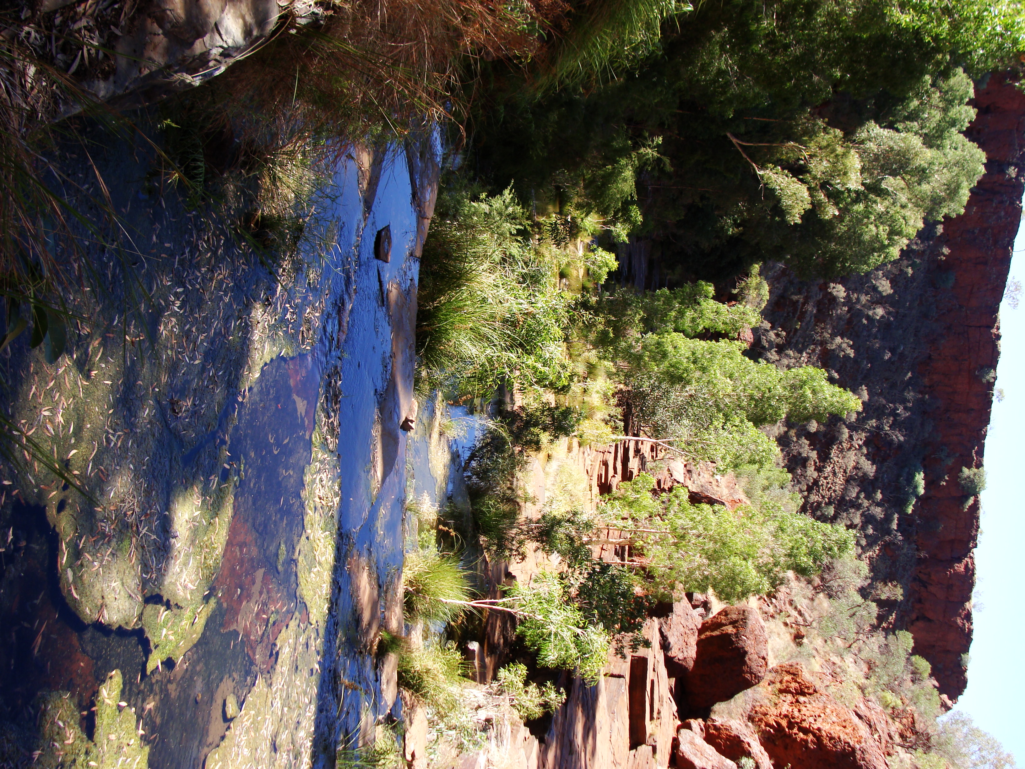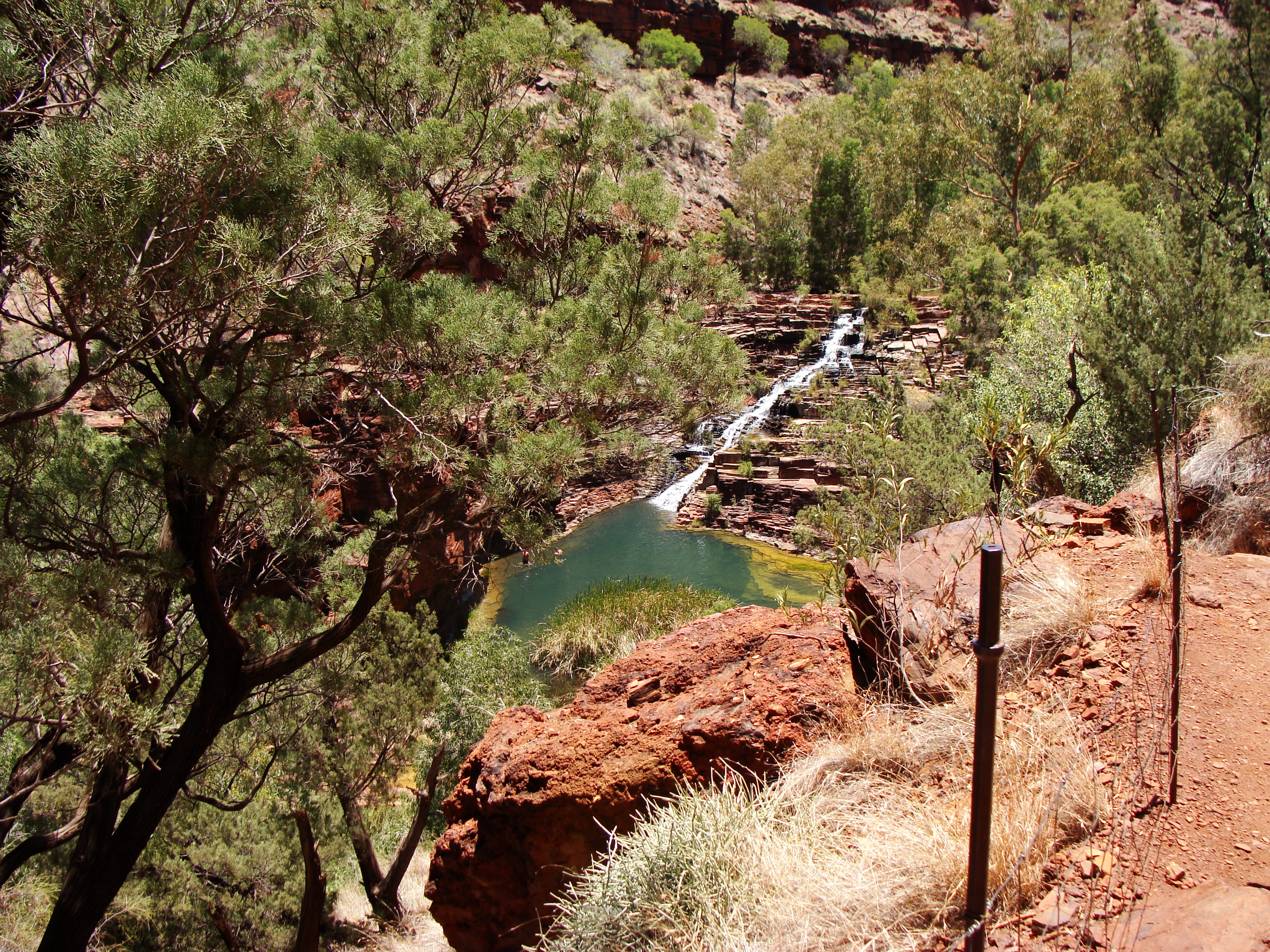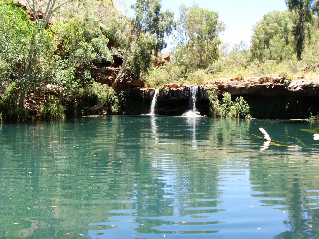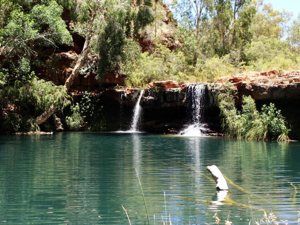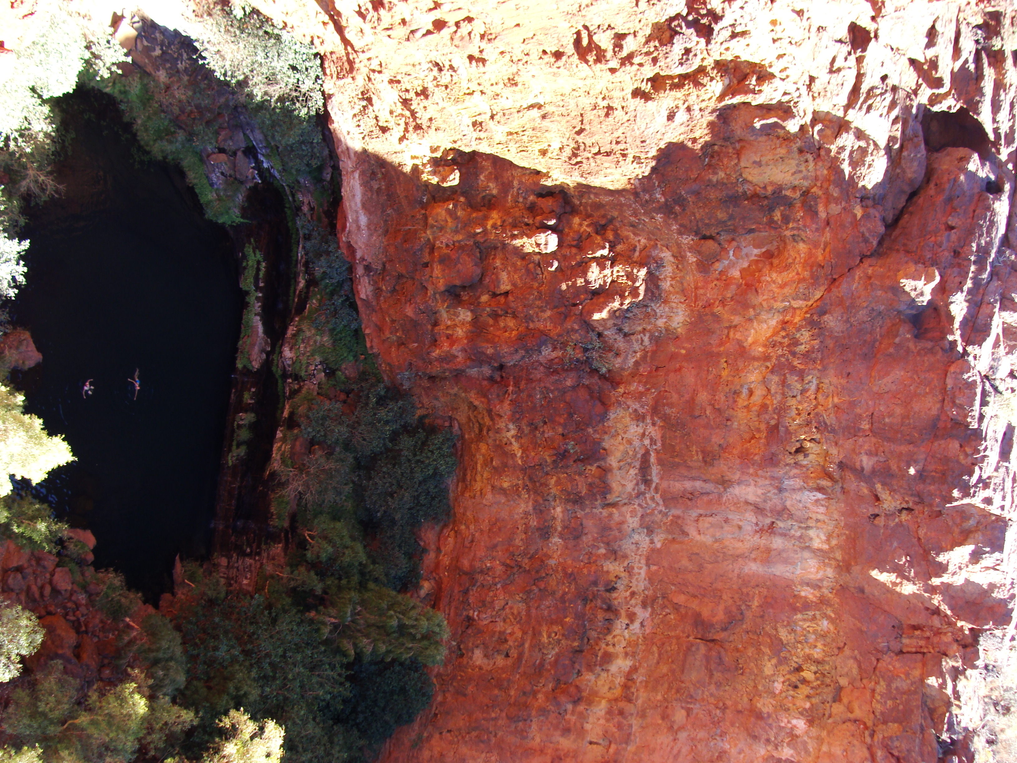 Der nächste Stopp war Karijini Nationalpark, wo wieder ein wenig in Schluchten gewandert wurde und sonst nur gesonnt und entspannt wurde. Wieder keine Dusche und nur Plumpsklo, und Dingos. Bei den Wasserfällen konnte man auch Baden, was der Abkühlung ganz gut tat. Insgesamt war es in der Schlucht aber nicht ganz so heiß.