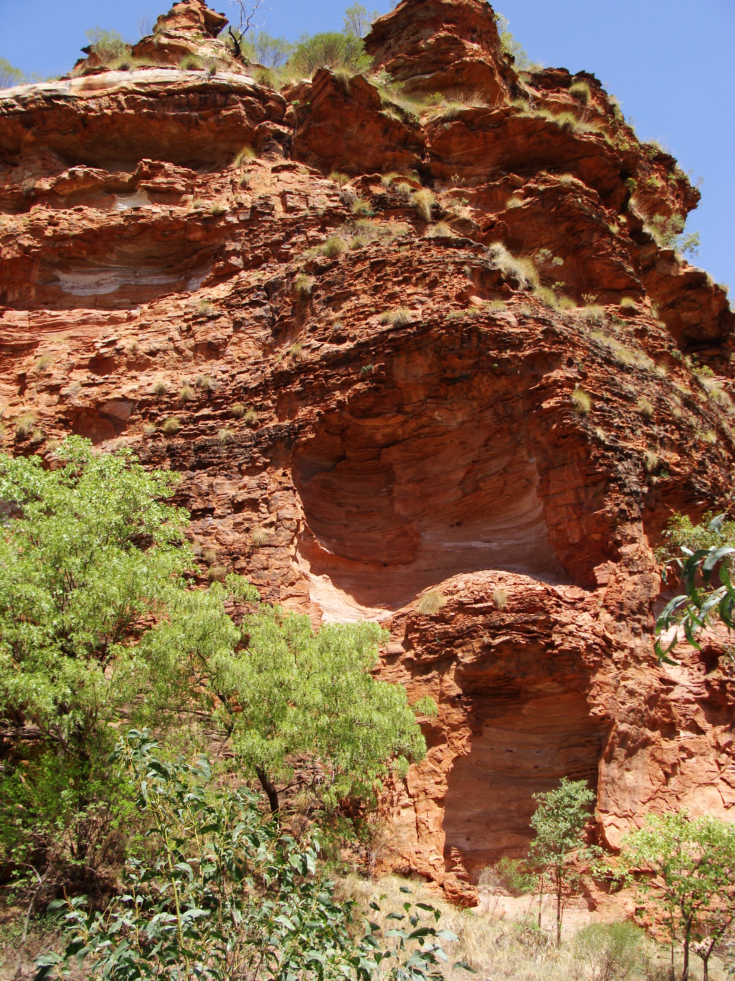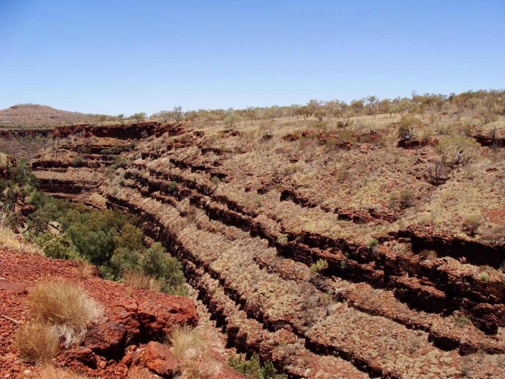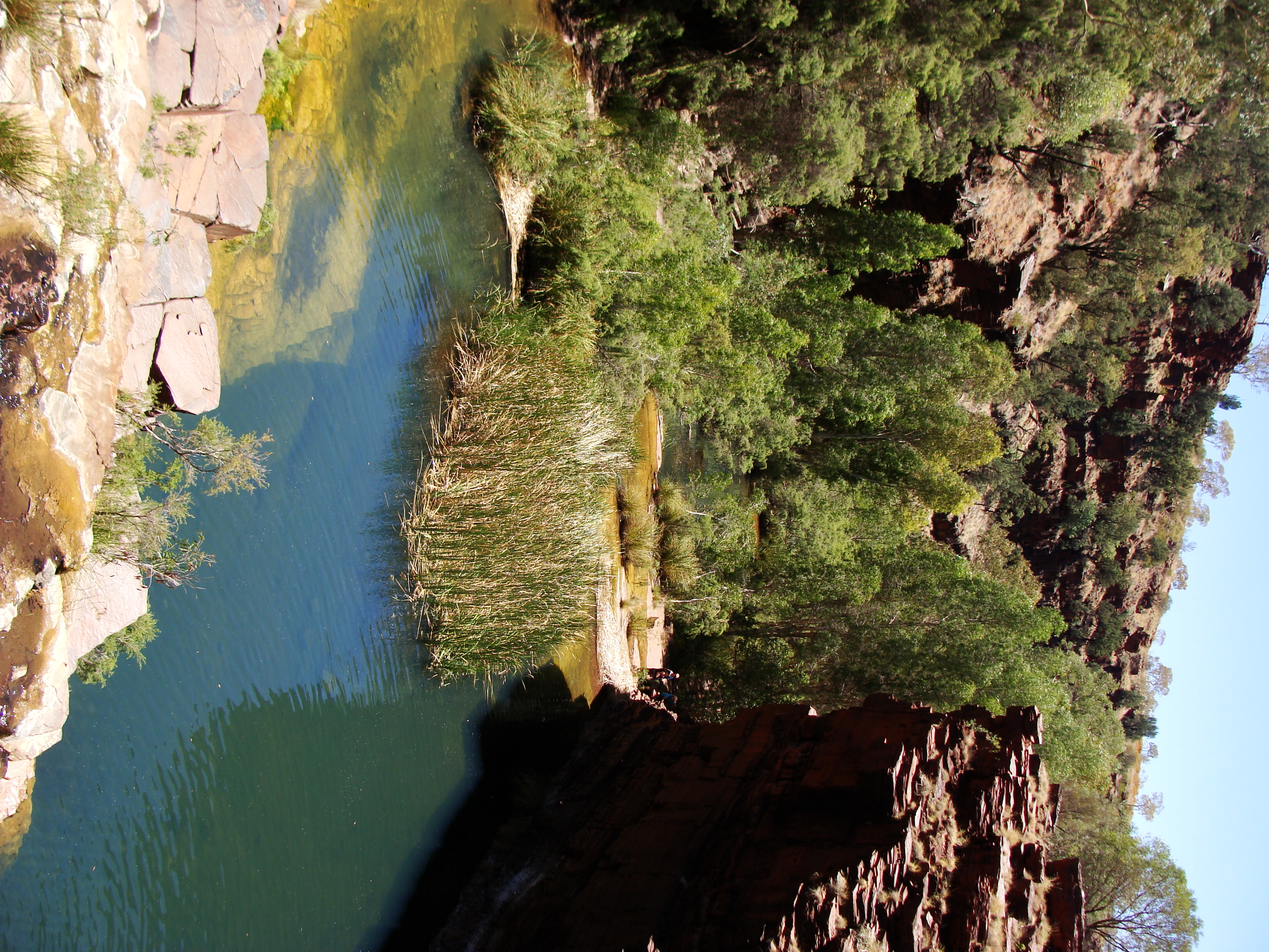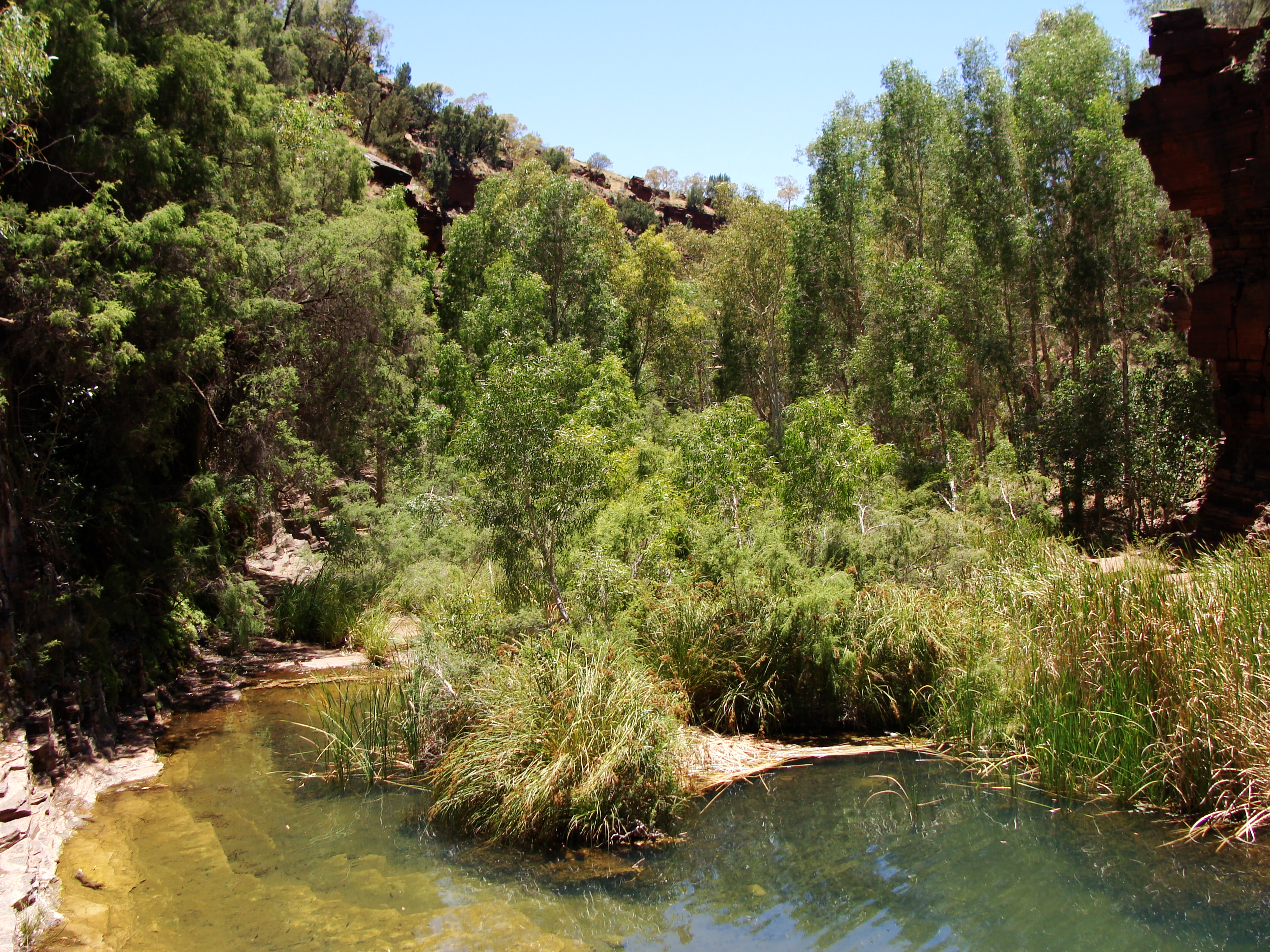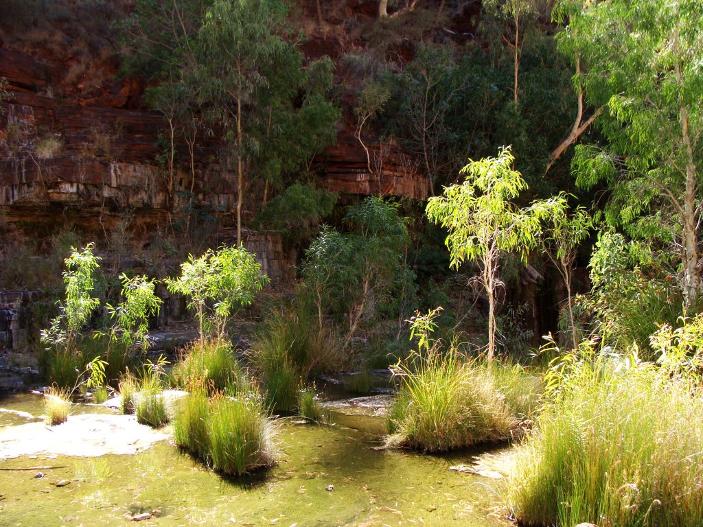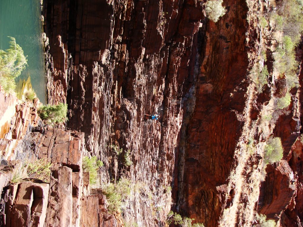 Der nächste Stopp war Karijini Nationalpark, wo wieder ein wenig in Schluchten gewandert wurde und sonst nur gesonnt und entspannt wurde. Wieder keine Dusche und nur Plumpsklo, und Dingos. Bei den Wasserfällen konnte man auch Baden, was der Abkühlung ganz gut tat. Insgesamt war es in der Schlucht aber nicht ganz so heiß.