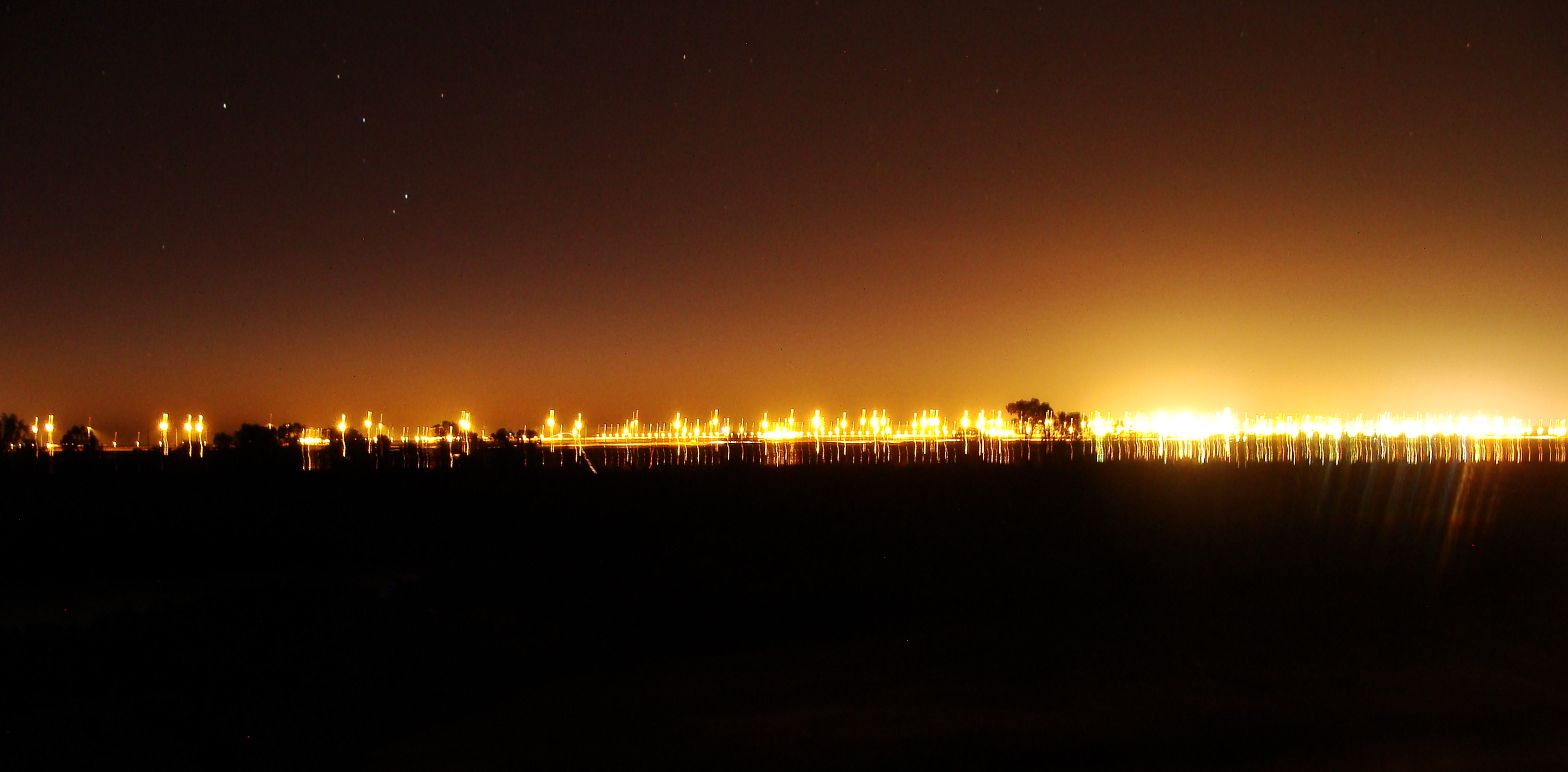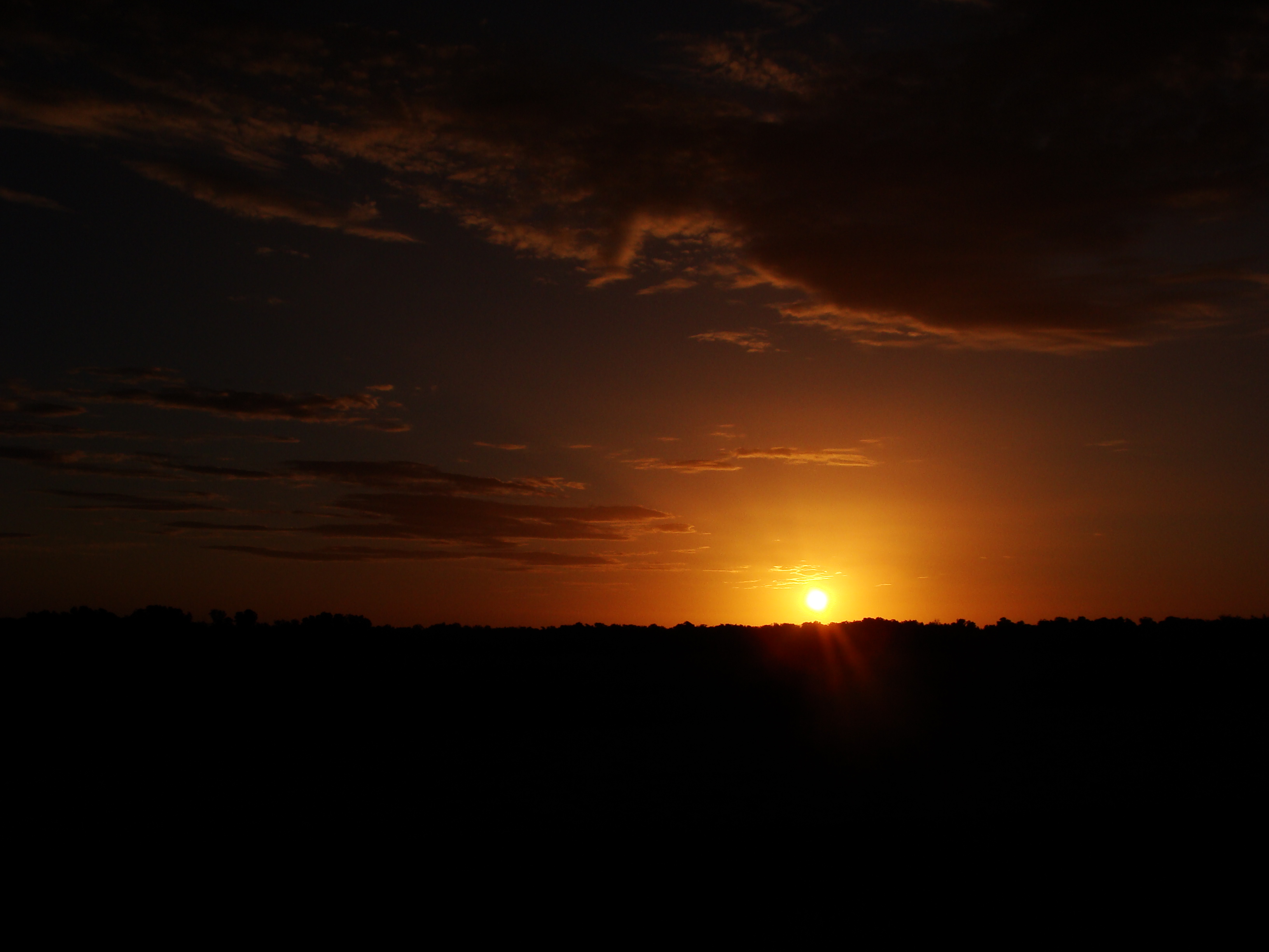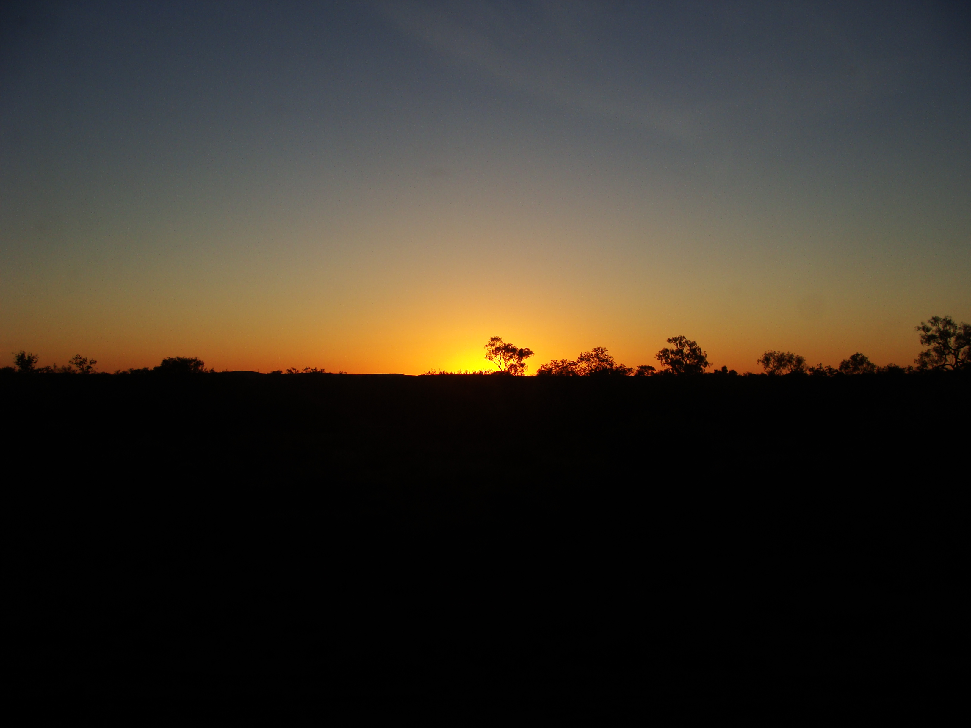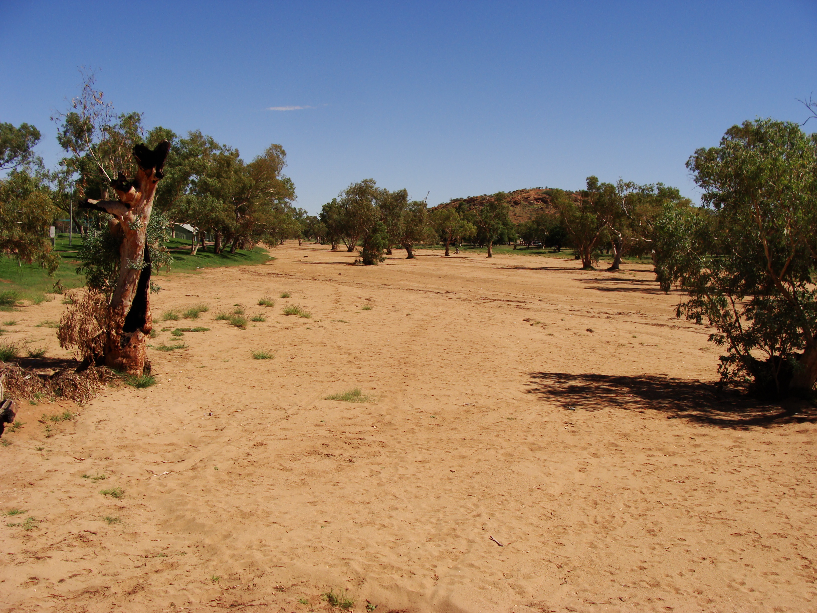 Einige Flüsse in Australien führen sogar Wasser…… es regnet nämlich.Die Holzklasse. Gold- und Platinum-Service konnten wir nicht sehen und natürlich auch nicht leisten. Selbst das Bett war viel zu teuer…Sonnenaufgang aus dem fahrenden Zug fotografiert…Man könne meinen, der Bush brennt…oder?Aber es ist doch nur die Sonne!Wieso ist Berlin näher dran an Alice Springs als Rom?Ha, erwischt! In Australien wird der Schlitten vom Weihnachtsmann von Albino-Känguruhs gezogen.Der Todd River in Alice Springs. Führt ganz selten mal Wasser, daher wird die alljährliche Regatta auch mit den Händen durchgeführt.