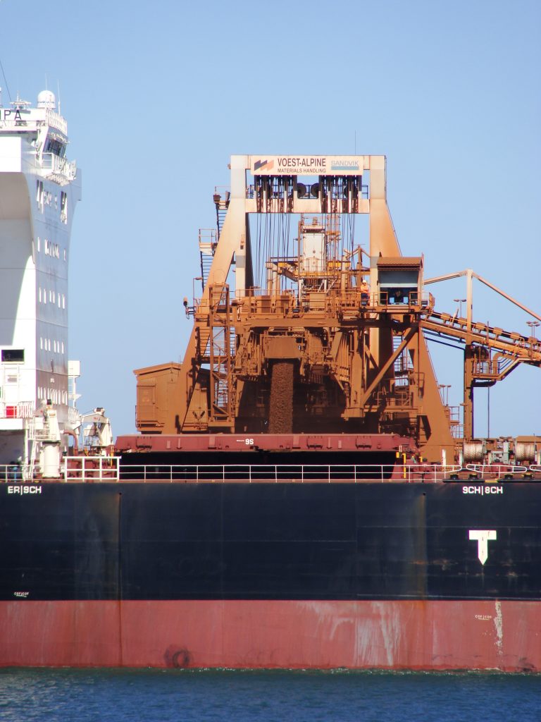 Es ging dann ein paar hundert Kilometer gen Norden nach Port Hedland, einer Industriestadt an der Nordküste. Hier wird Eisenerz nach Asien und vor allem nach China verschifft. Da die Australier wohl schon genug Geld haben, werden Rohstoffe verkauft und nicht fertige Produkte. Das rote Zeug wird alles mit Zügen zu den Schiffen gebracht, deren Umschlagzeit mittlerweile auf 24h herunter gedreht wurde. Da wir am Wochenende da waren, konnten wir leider keine Tour über die Anlage machen.