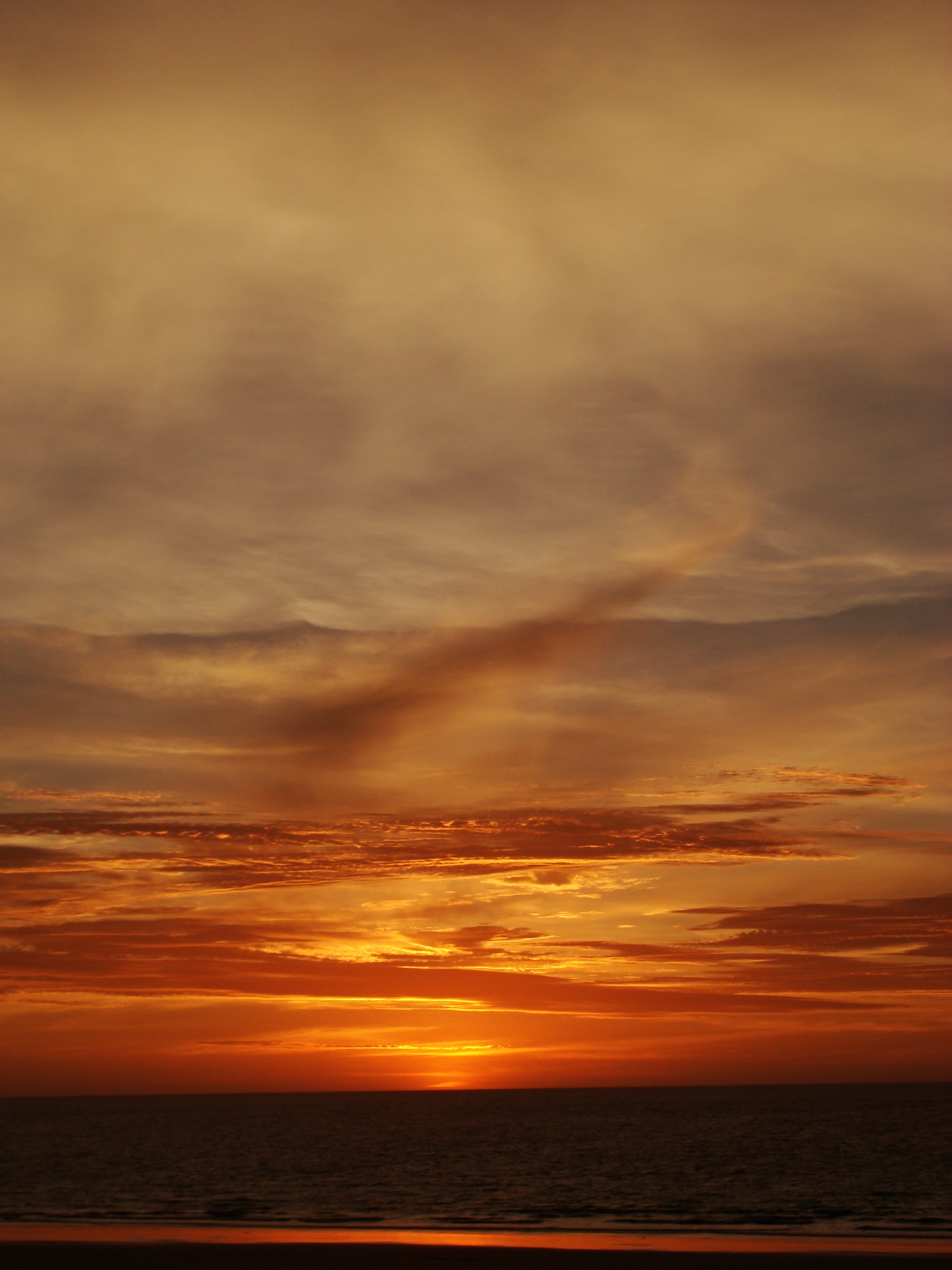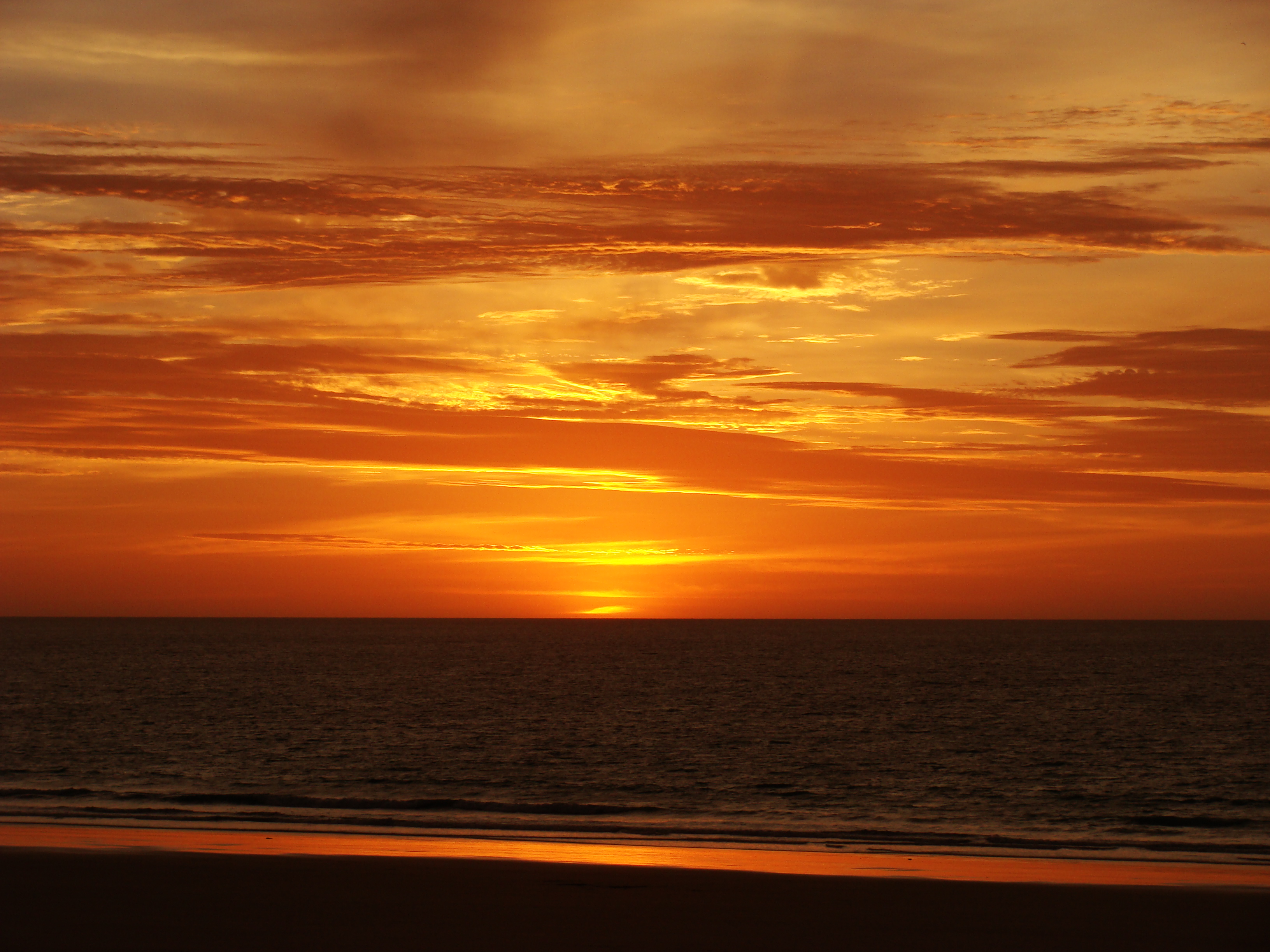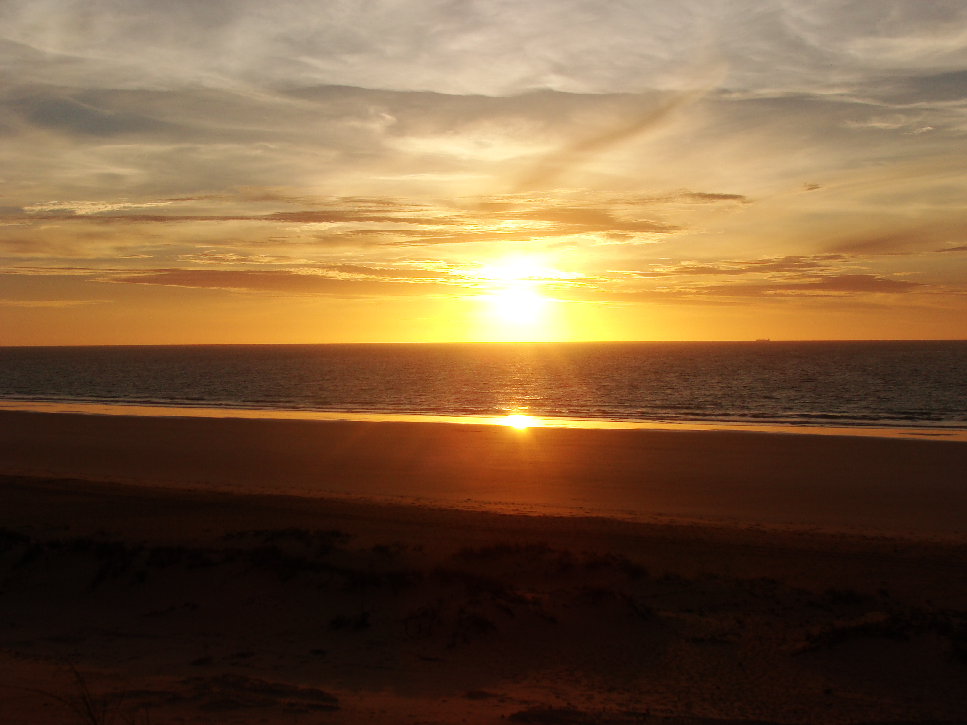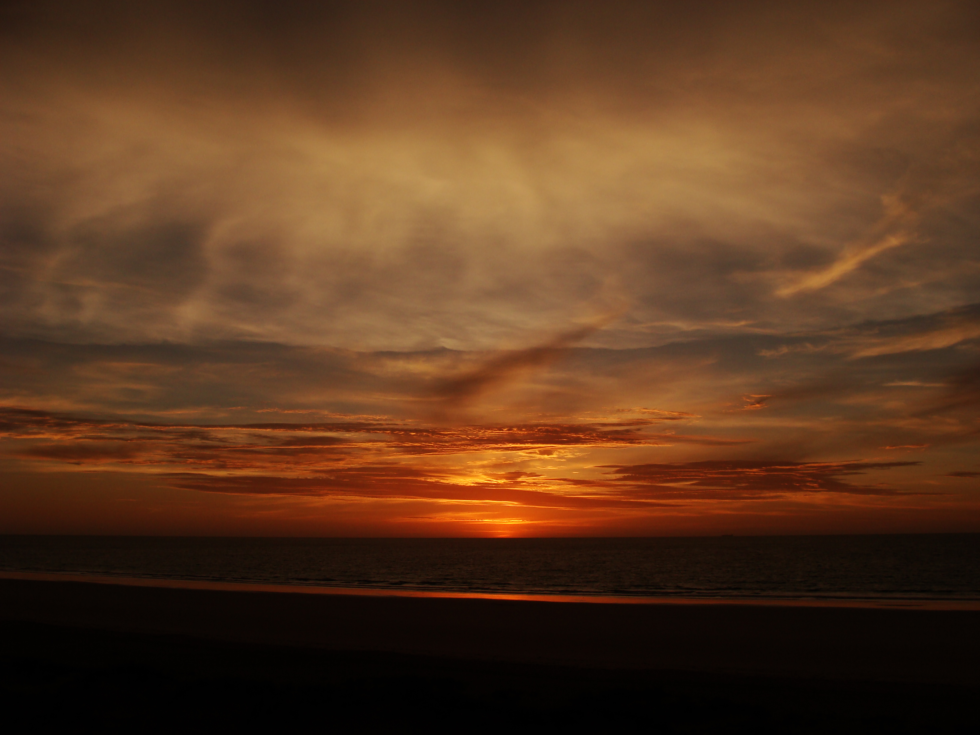 Vor Broome waren wir nur noch eine Nacht in Cape Keraudren, wo wir Schildkröten schauen wollten. Die sollen zu dieser Zeit anfangen, ihre Eier am Strand zu legen. Wir verloren aber in der Nacht ein wenig die Orientierung (Handytaschenlampe hat eine Reichweite von etwa 2.5m) und bei aufziehendem Gewitter ging es dann bald zurück in den Camper. Dann waren wir auch schon in Broome. Eigentlich hatten wir drei Wochen bis hierhin eingeplant, waren aber schon nach zwei da… Also erstmal länger da gewesen und Kinofilme geschaut: Australia im Open-Air Kino, dem ältesten Filmtheater der Welt und dann noch den 007, wo wir mittags alleine im Kino waren, quasi Privatvorstellung. Dann gab es auch mal wieder einen Strandtag, der aber wegen der Hitze schon nach zwei Stunden vorbei war ;). Langsam stieg auch die Luftfeuchtigkeit an, sodass man Nachts aus dem Schwitzen leider nicht mehr herauskam und morgens erstmal Duschen musste. Da der Camper nicht wirklich eine gute Luftzirkulation hat, blieb das dann auch das Standardprozedere für die kommenden zwei Wochen…