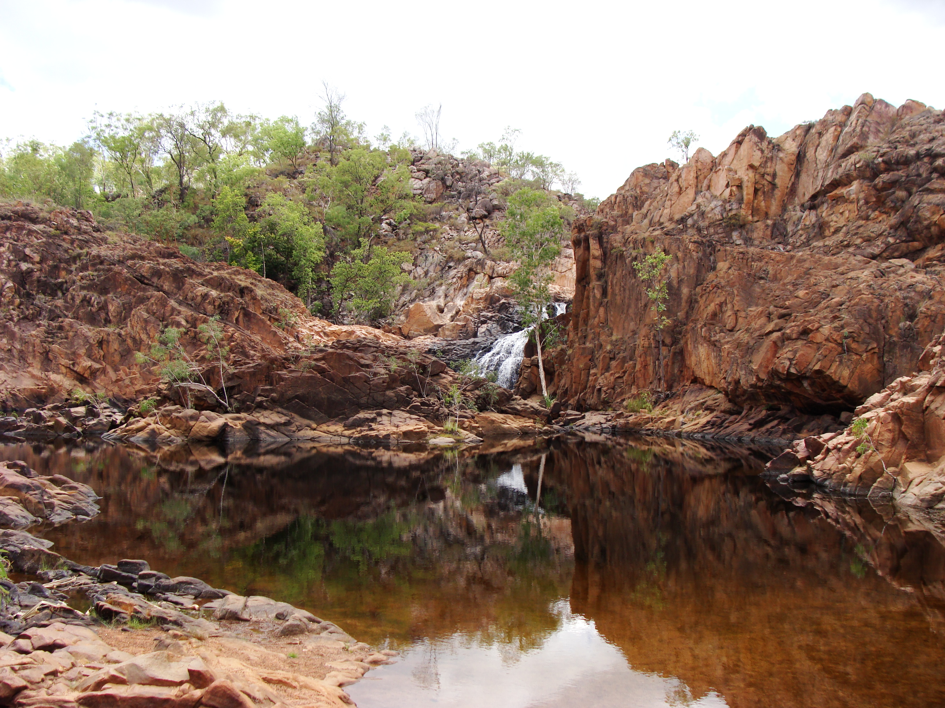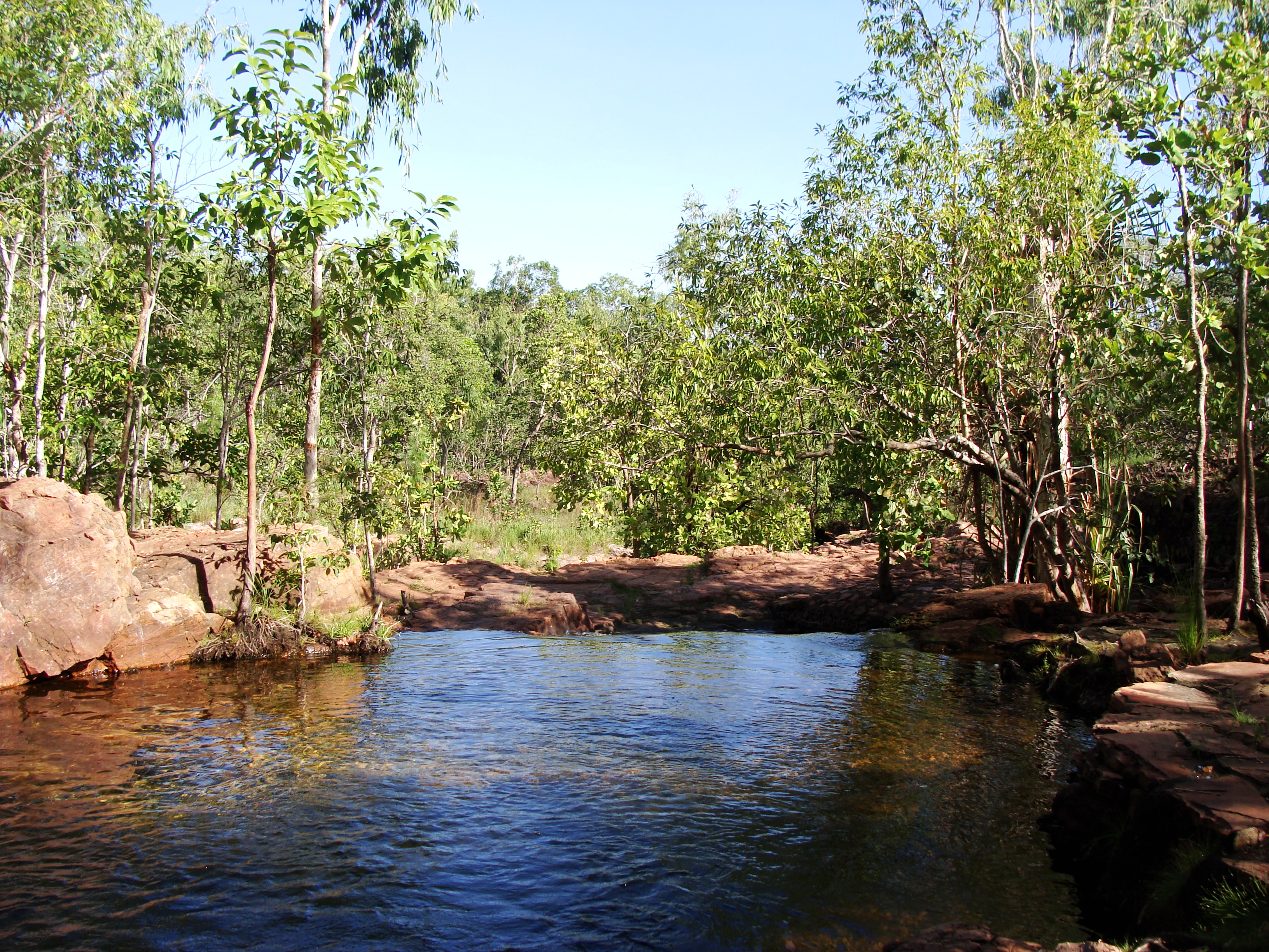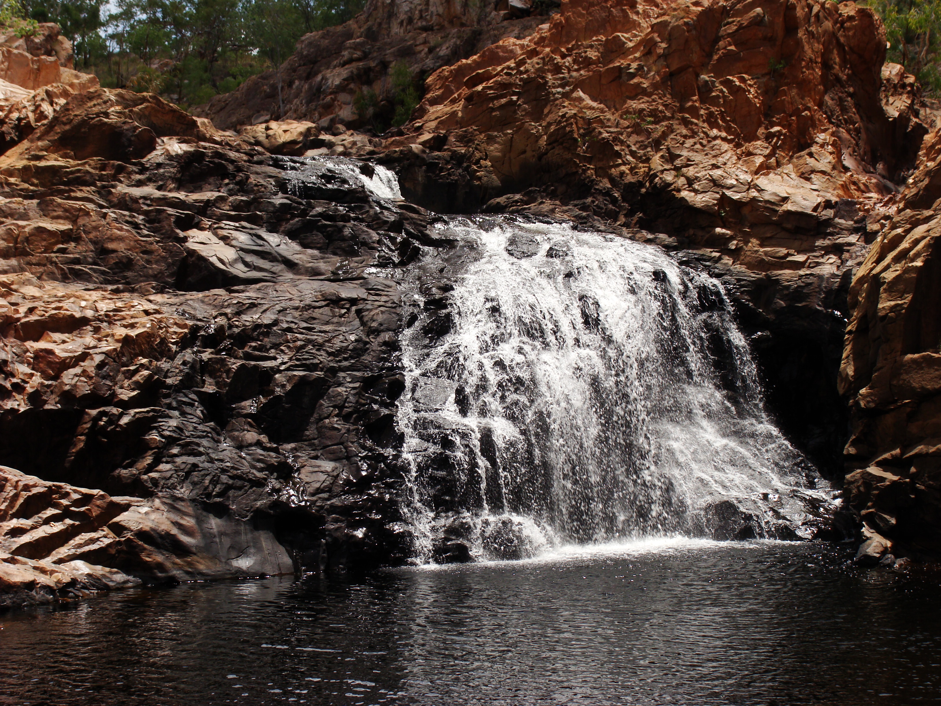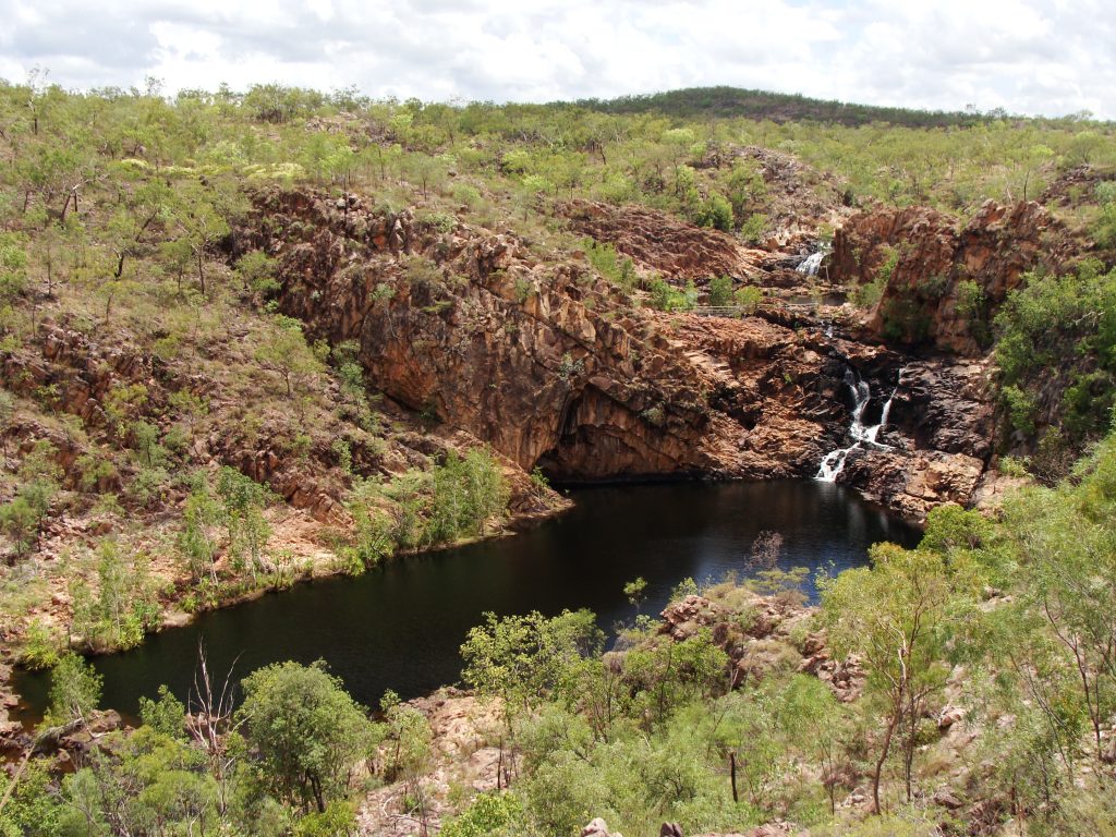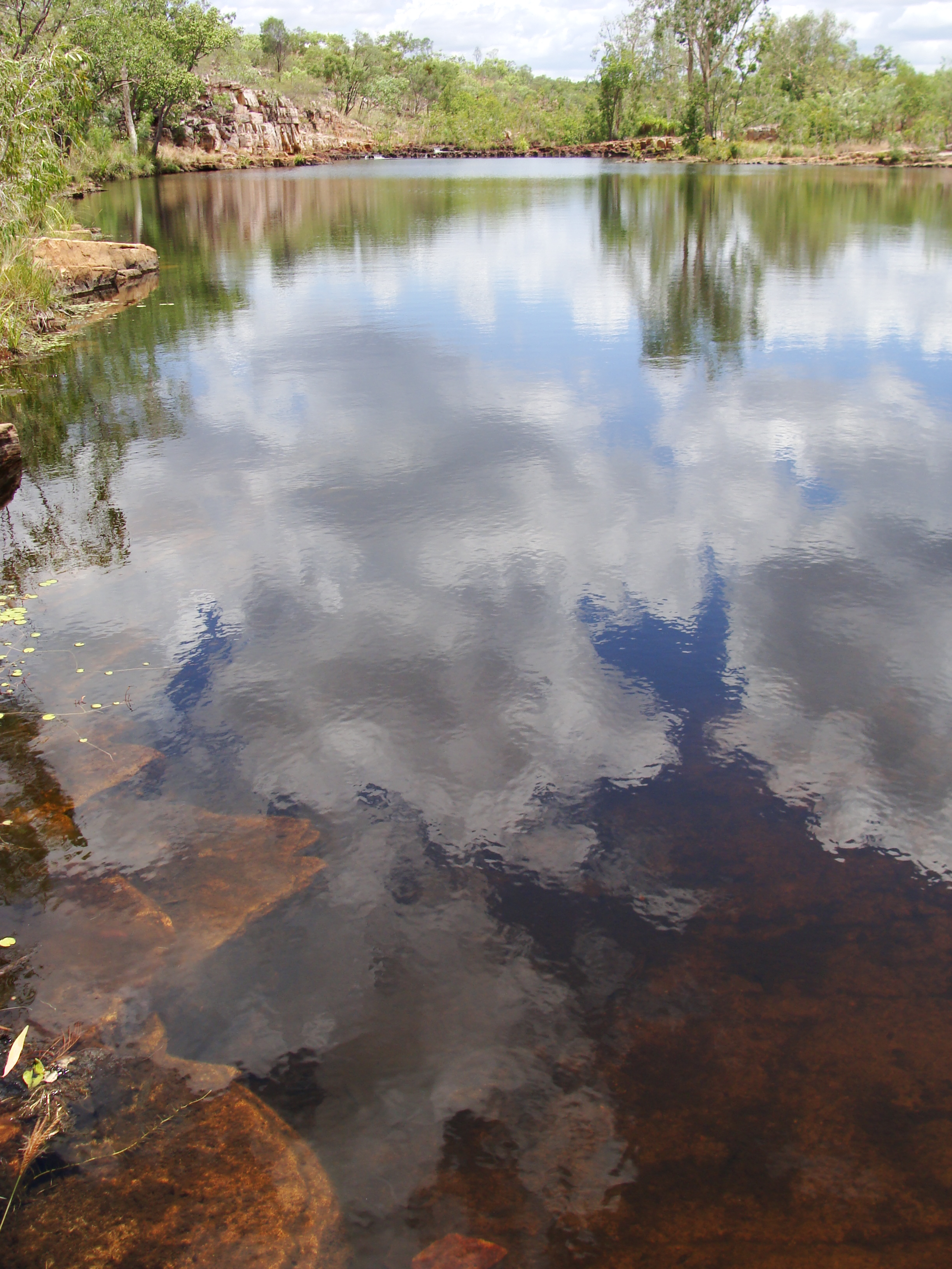 Es ging dann in drei Tagen bis nach Katherine, der nächsten größeren Stadt, aber auch etwa 1500km entfernt. Unterwegs haben wir auf einem 24h-Rastplatz übernachtet und dann noch am Lake Argyle, einem Stausee, der etwa 24,000 Freshies beherrbergt. Gesehen wurden aber leider keine… Mit Katherine waren wir dann auch im Northern Territory und da ging es dann erstmal für zwei Nächte zur Katherine Gorge. Ein Pool- und Kanutag auf dem Campingplatz, inklusive Schwimmen mit Freshies, aber die zeigten sich leider nicht. Dann waren wir noch eine Nacht bei den Edith Falls, wo wir das erste Mal richtig zugeregnet wurden. Als wir angefangen hatten, Essen zu machen, fing es an… Ich stand also in Badehose am (kostenlosen) BBQ und „kochte“ die Steaks, während Marian unter der Heckklappe die Kartoffeln kochte… Gegessen wurde dann unter der Heckklappe im Stehen und später saßen wir dann im Camper, total verdreckt und gelangweilt | das Gewitter hatte uns schon ein wenig überrascht. Den Tag über waren wir nämlich noch schön vier Stunden zum Sweetwater Pool wandern gegangen, natürlich in der prallen Hitze :). Gab dann da oben auch eine Abkühlung.