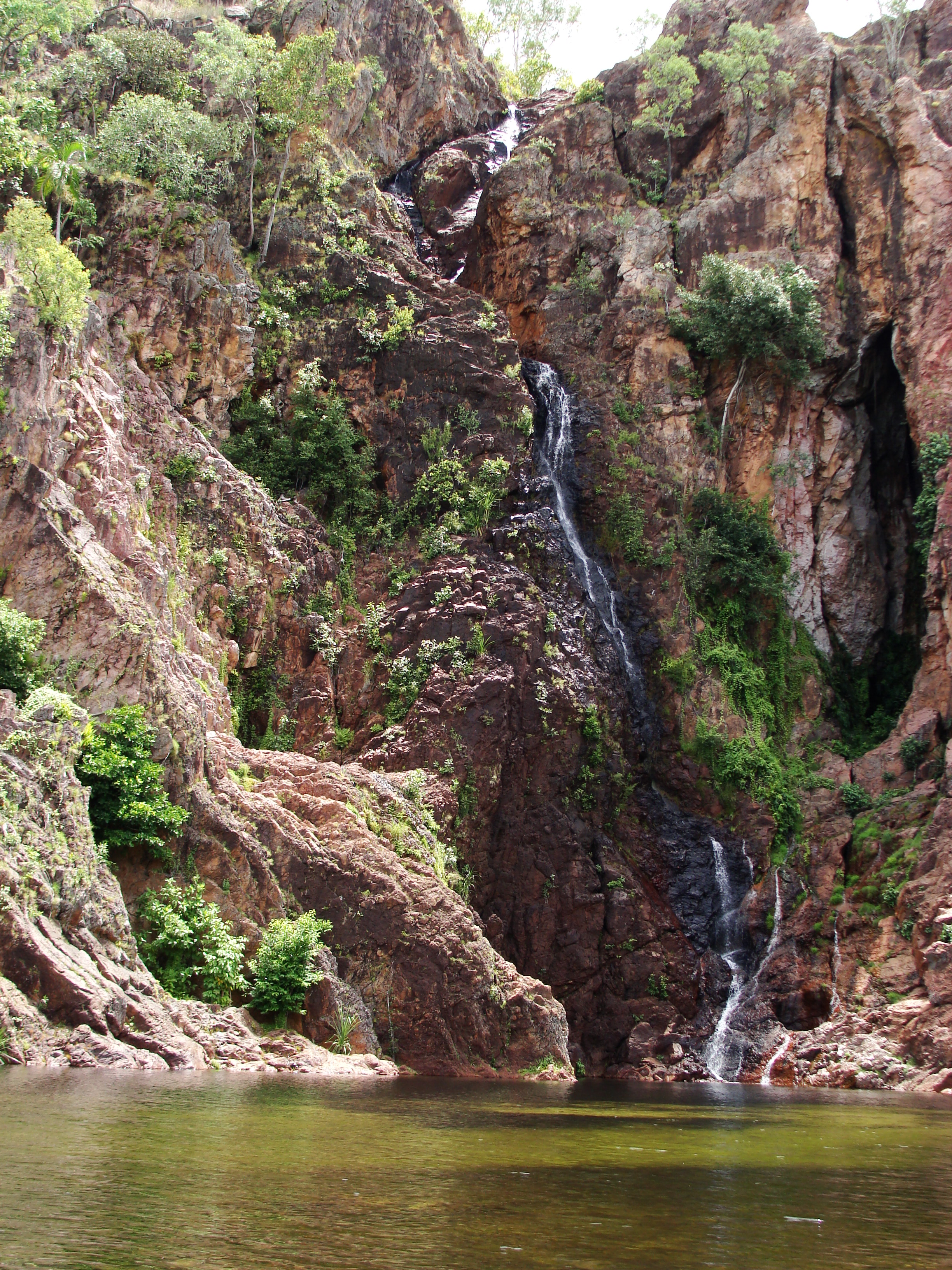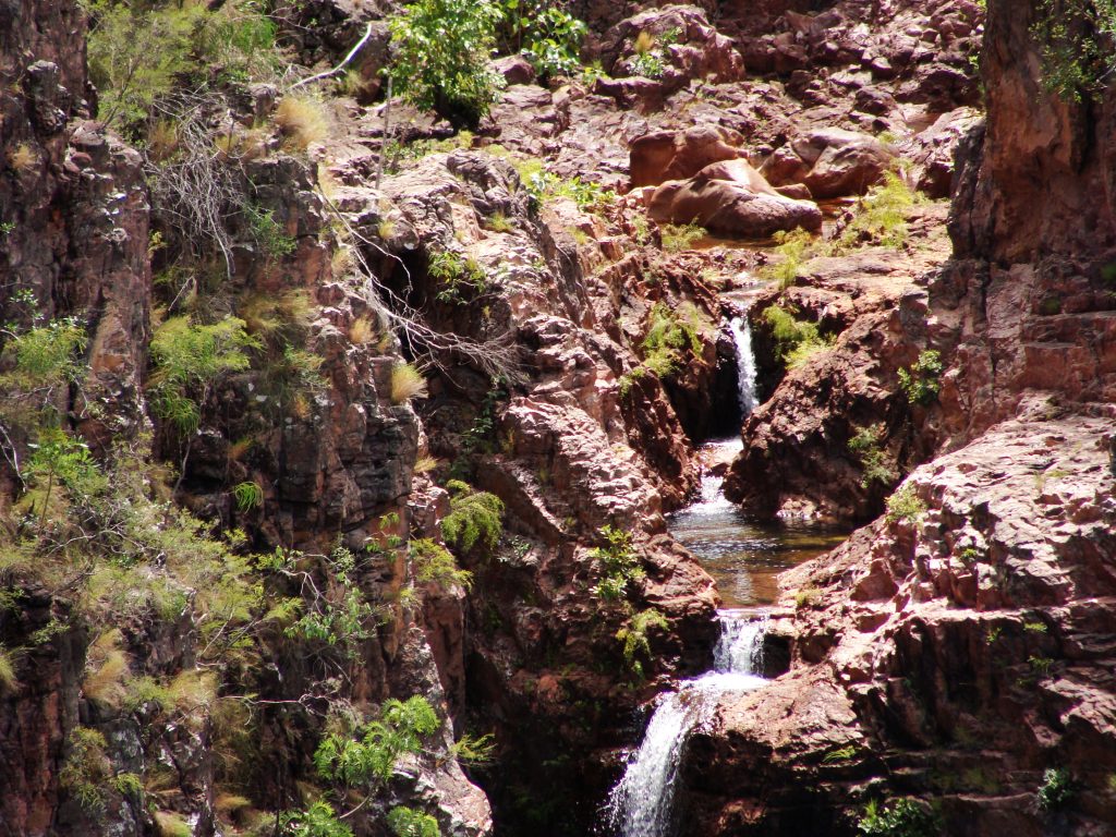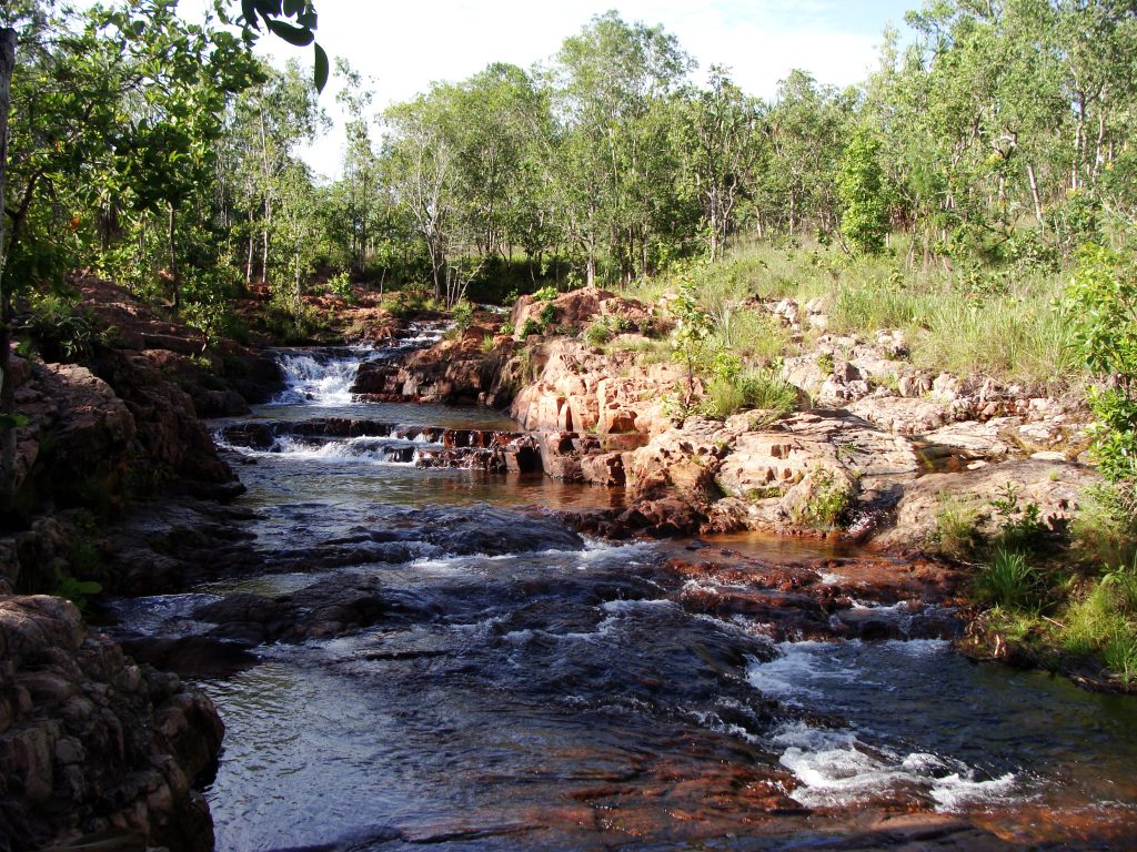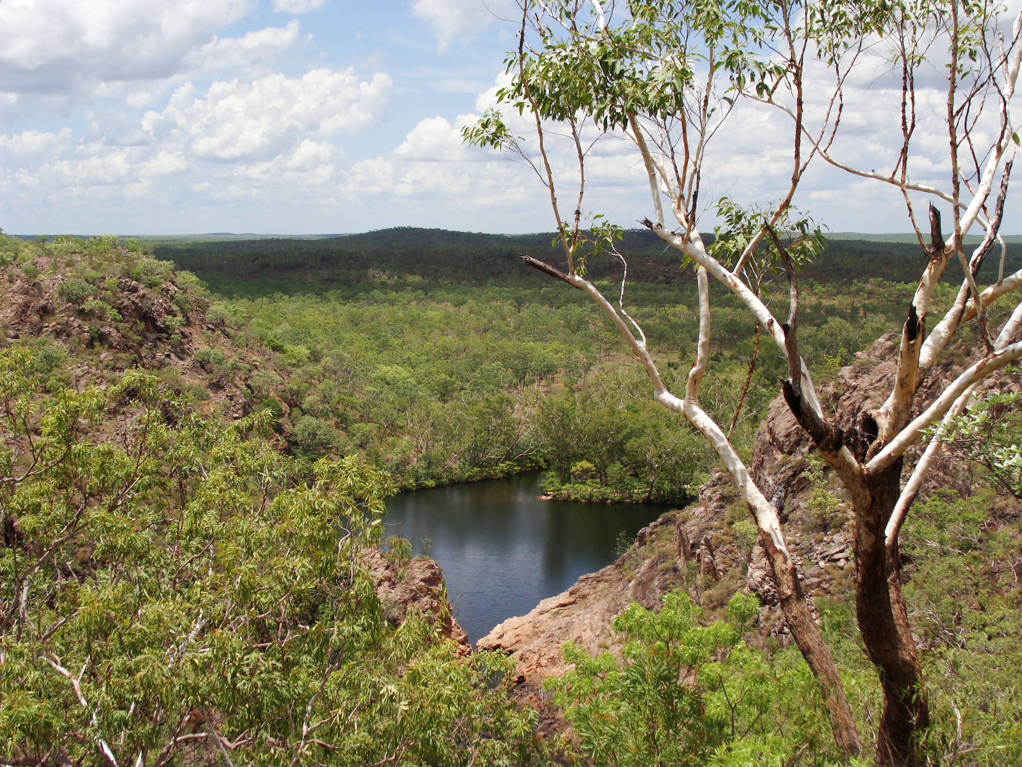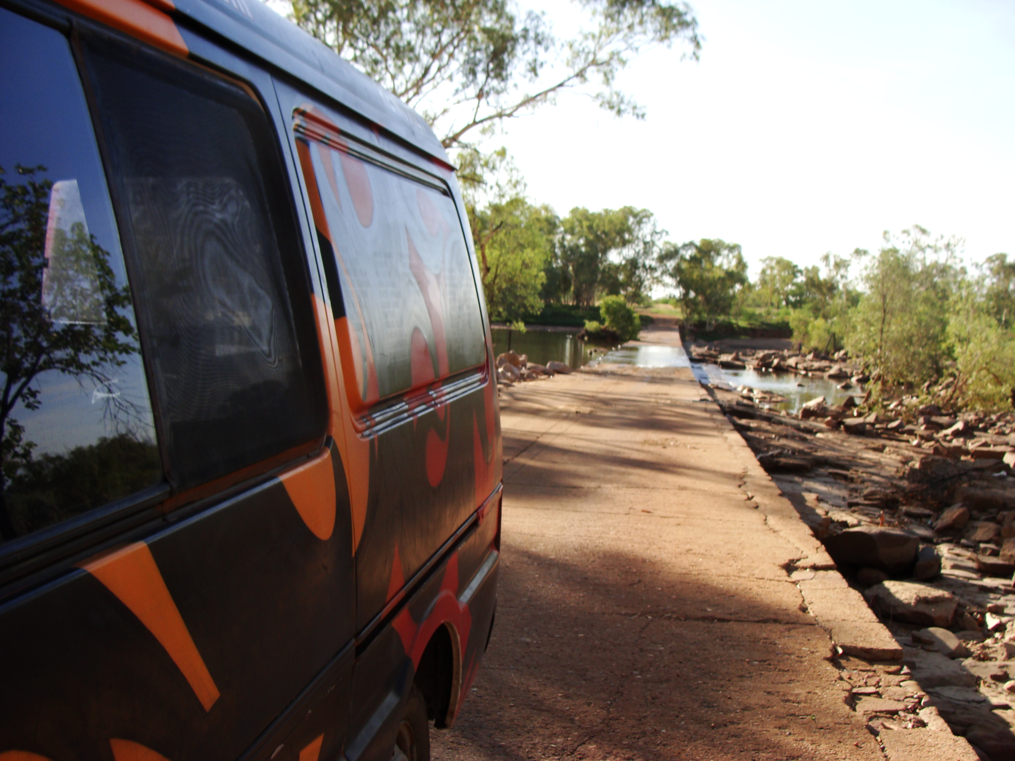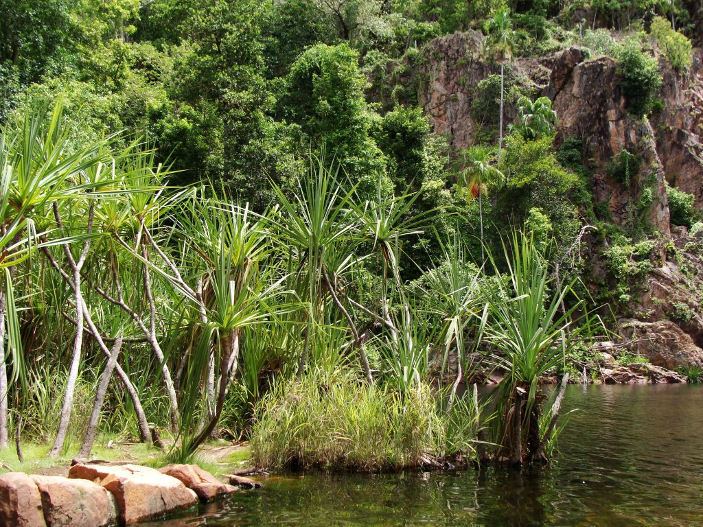 Es ging dann in drei Tagen bis nach Katherine, der nächsten größeren Stadt, aber auch etwa 1500km entfernt. Unterwegs haben wir auf einem 24h-Rastplatz übernachtet und dann noch am Lake Argyle, einem Stausee, der etwa 24,000 Freshies beherrbergt. Gesehen wurden aber leider keine… Mit Katherine waren wir dann auch im Northern Territory und da ging es dann erstmal für zwei Nächte zur Katherine Gorge. Ein Pool- und Kanutag auf dem Campingplatz, inklusive Schwimmen mit Freshies, aber die zeigten sich leider nicht. Dann waren wir noch eine Nacht bei den Edith Falls, wo wir das erste Mal richtig zugeregnet wurden. Als wir angefangen hatten, Essen zu machen, fing es an… Ich stand also in Badehose am (kostenlosen) BBQ und „kochte“ die Steaks, während Marian unter der Heckklappe die Kartoffeln kochte… Gegessen wurde dann unter der Heckklappe im Stehen und später saßen wir dann im Camper, total verdreckt und gelangweilt | das Gewitter hatte uns schon ein wenig überrascht. Den Tag über waren wir nämlich noch schön vier Stunden zum Sweetwater Pool wandern gegangen, natürlich in der prallen Hitze :). Gab dann da oben auch eine Abkühlung.