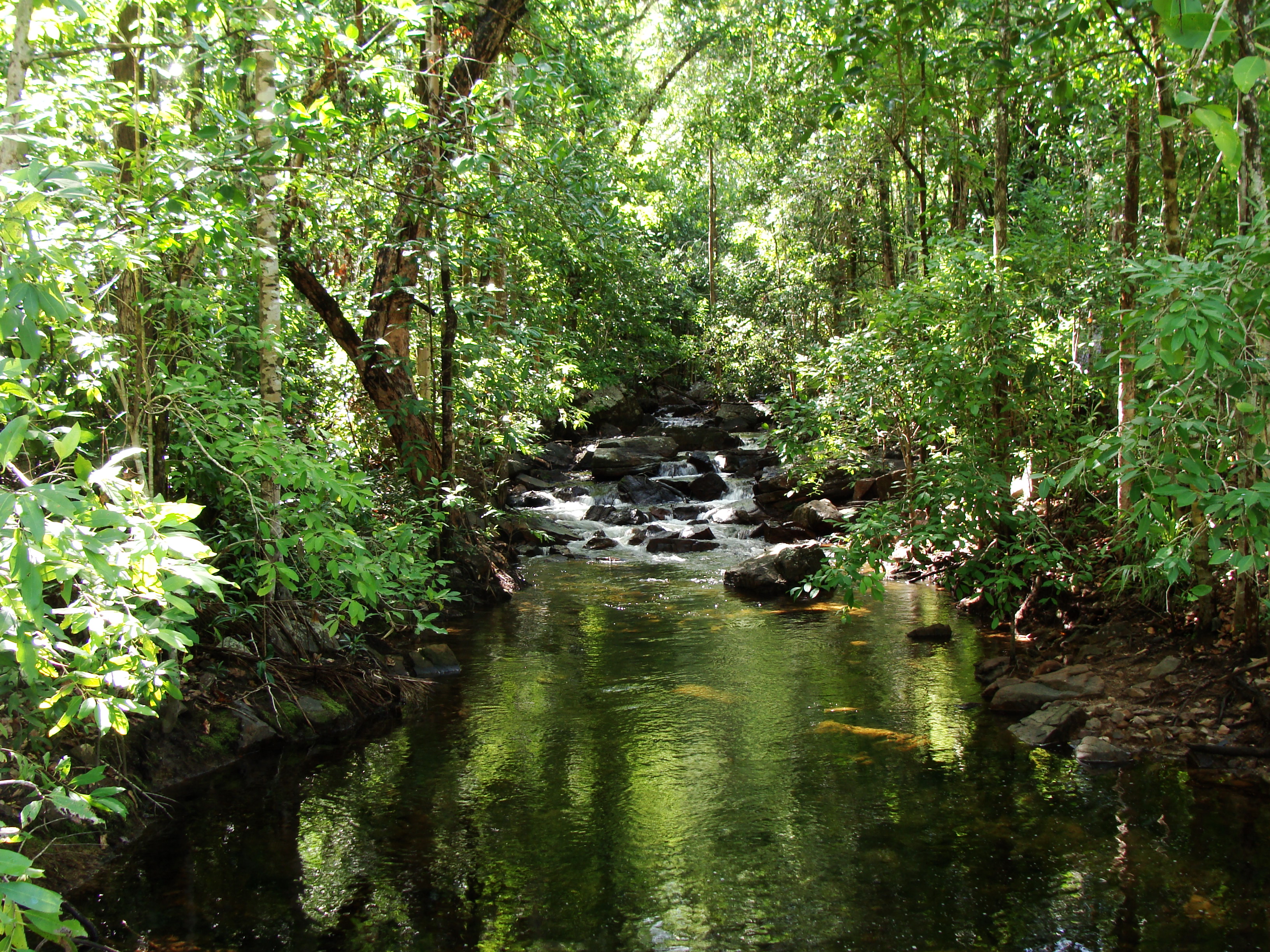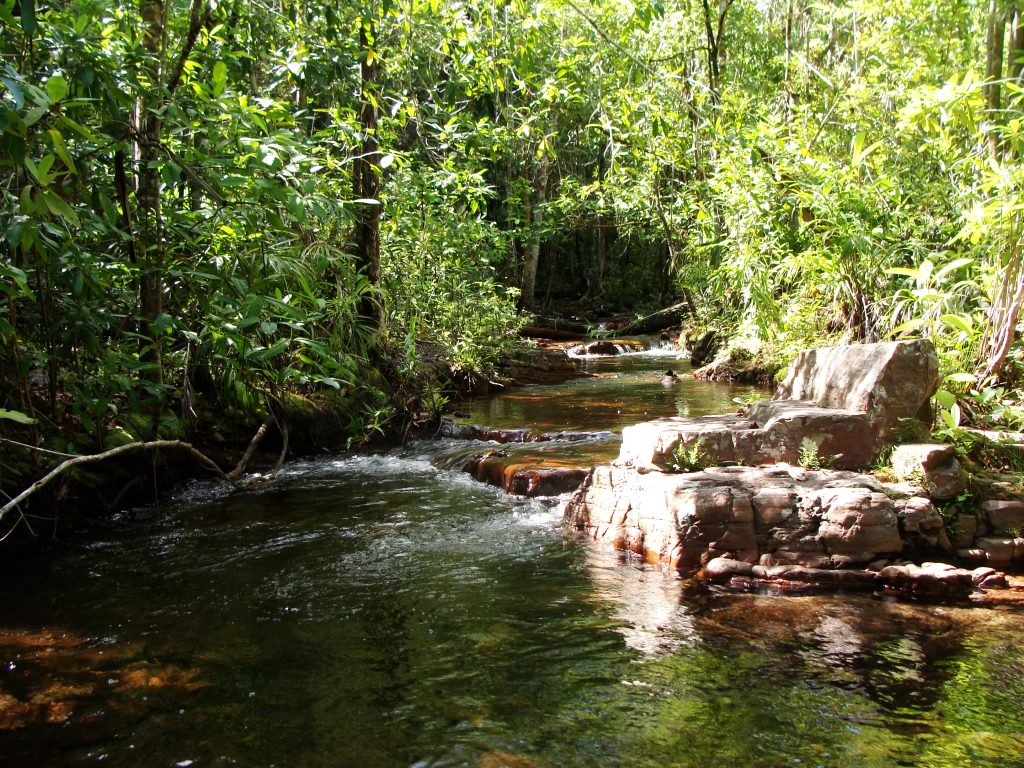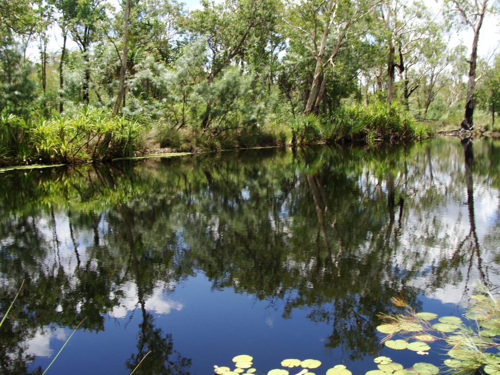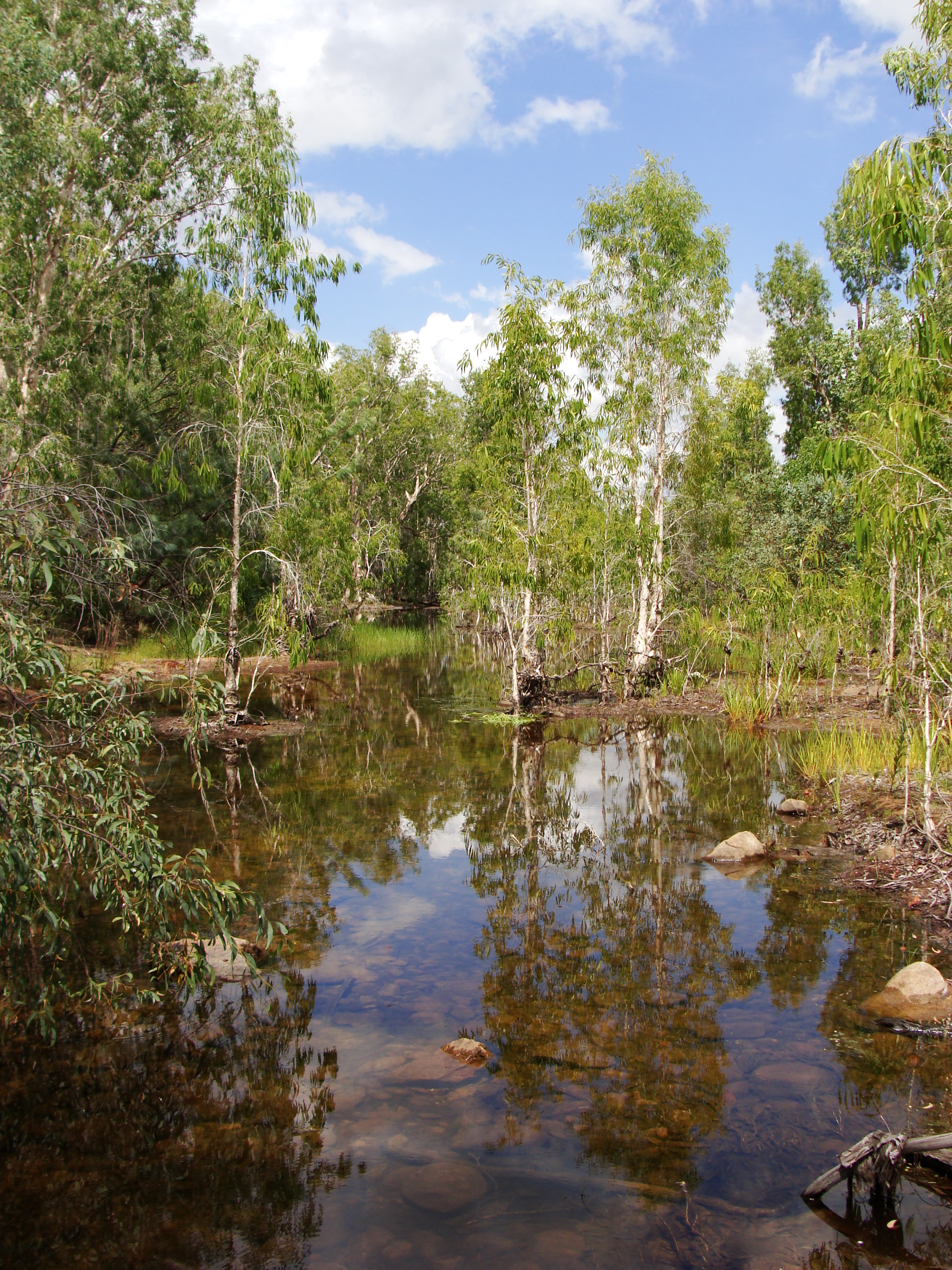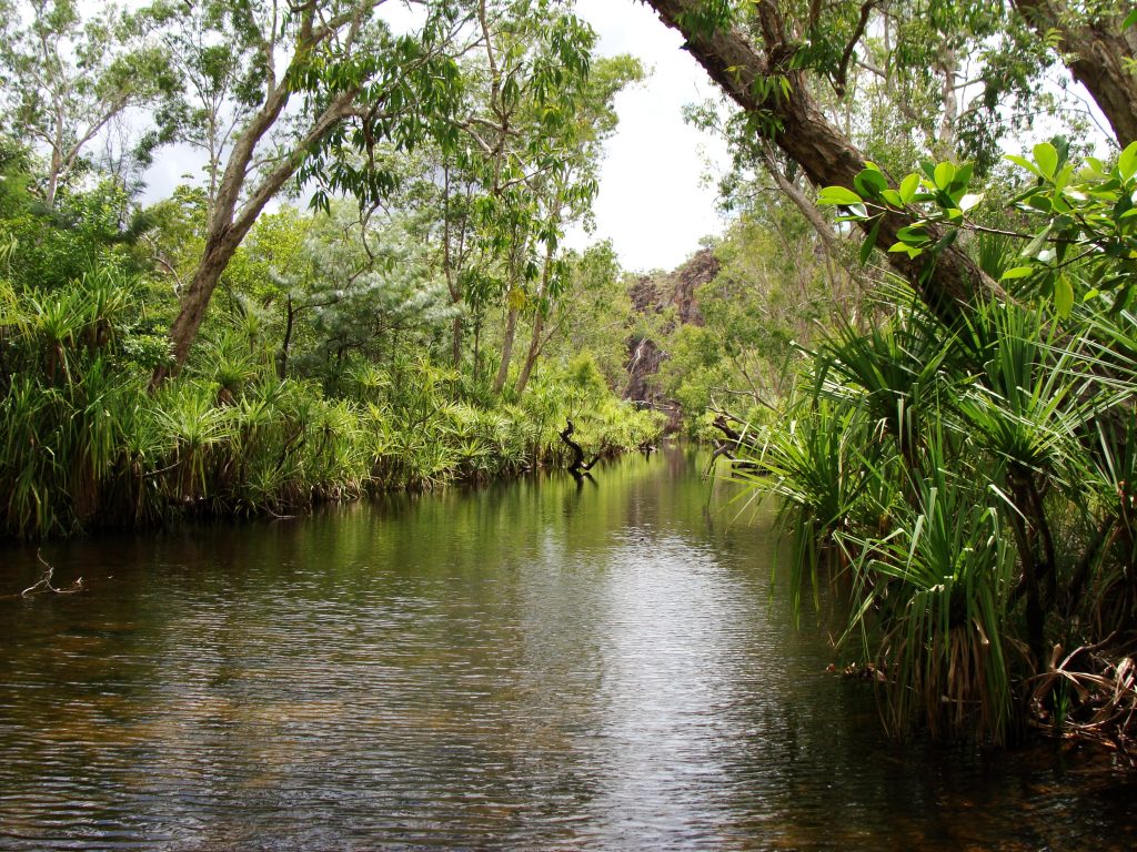 Es ging dann in drei Tagen bis nach Katherine, der nächsten größeren Stadt, aber auch etwa 1500km entfernt. Unterwegs haben wir auf einem 24h-Rastplatz übernachtet und dann noch am Lake Argyle, einem Stausee, der etwa 24,000 Freshies beherrbergt. Gesehen wurden aber leider keine… Mit Katherine waren wir dann auch im Northern Territory und da ging es dann erstmal für zwei Nächte zur Katherine Gorge. Ein Pool- und Kanutag auf dem Campingplatz, inklusive Schwimmen mit Freshies, aber die zeigten sich leider nicht. Dann waren wir noch eine Nacht bei den Edith Falls, wo wir das erste Mal richtig zugeregnet wurden. Als wir angefangen hatten, Essen zu machen, fing es an… Ich stand also in Badehose am (kostenlosen) BBQ und „kochte“ die Steaks, während Marian unter der Heckklappe die Kartoffeln kochte… Gegessen wurde dann unter der Heckklappe im Stehen und später saßen wir dann im Camper, total verdreckt und gelangweilt | das Gewitter hatte uns schon ein wenig überrascht. Den Tag über waren wir nämlich noch schön vier Stunden zum Sweetwater Pool wandern gegangen, natürlich in der prallen Hitze :). Gab dann da oben auch eine Abkühlung.