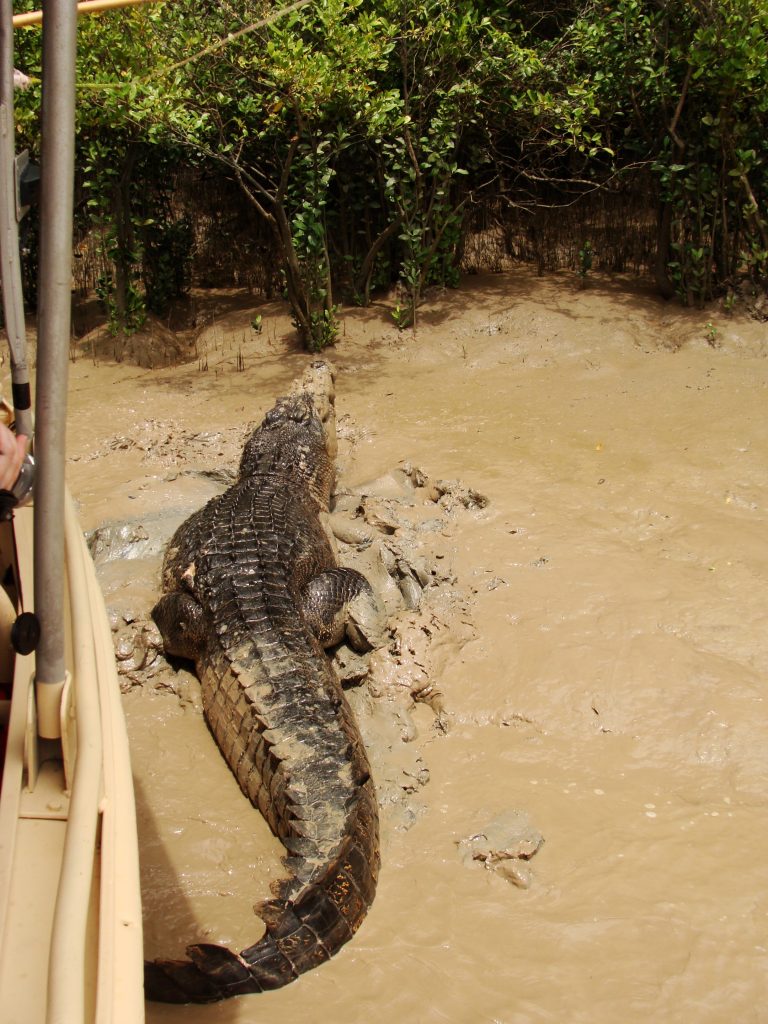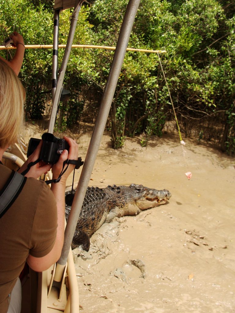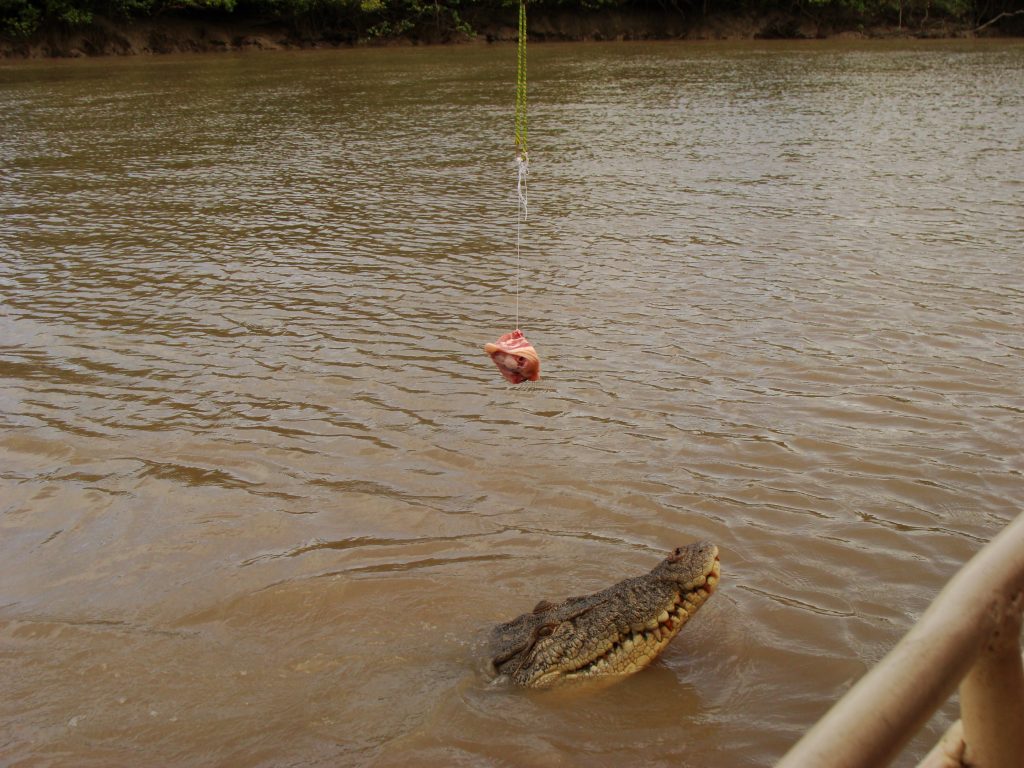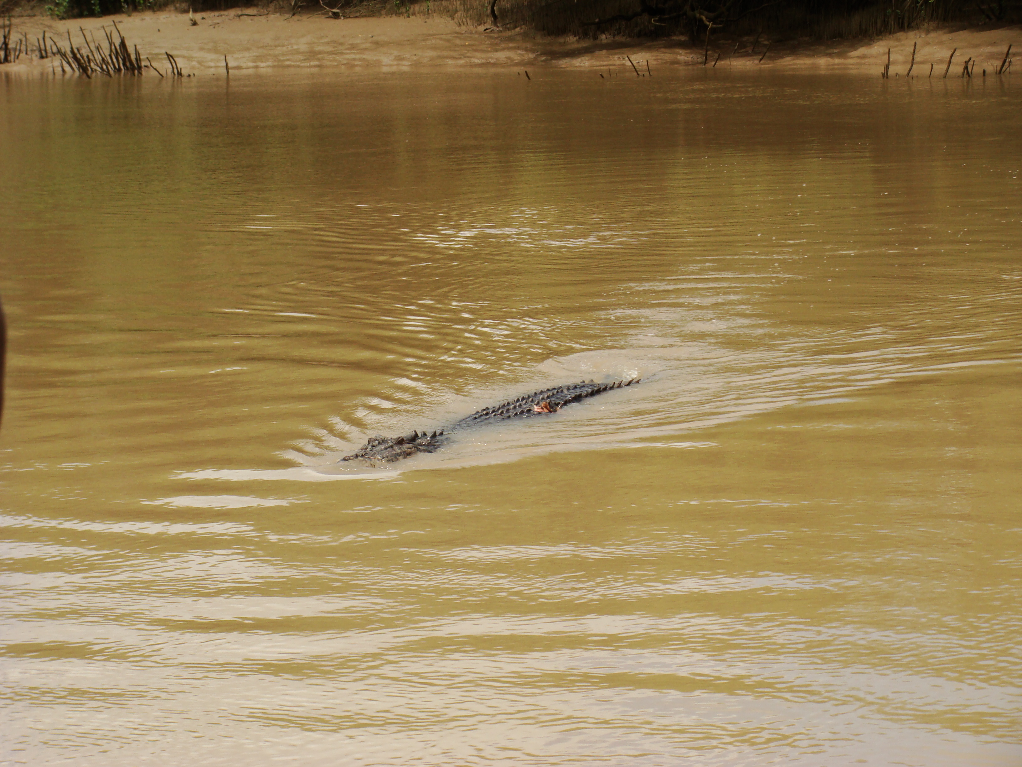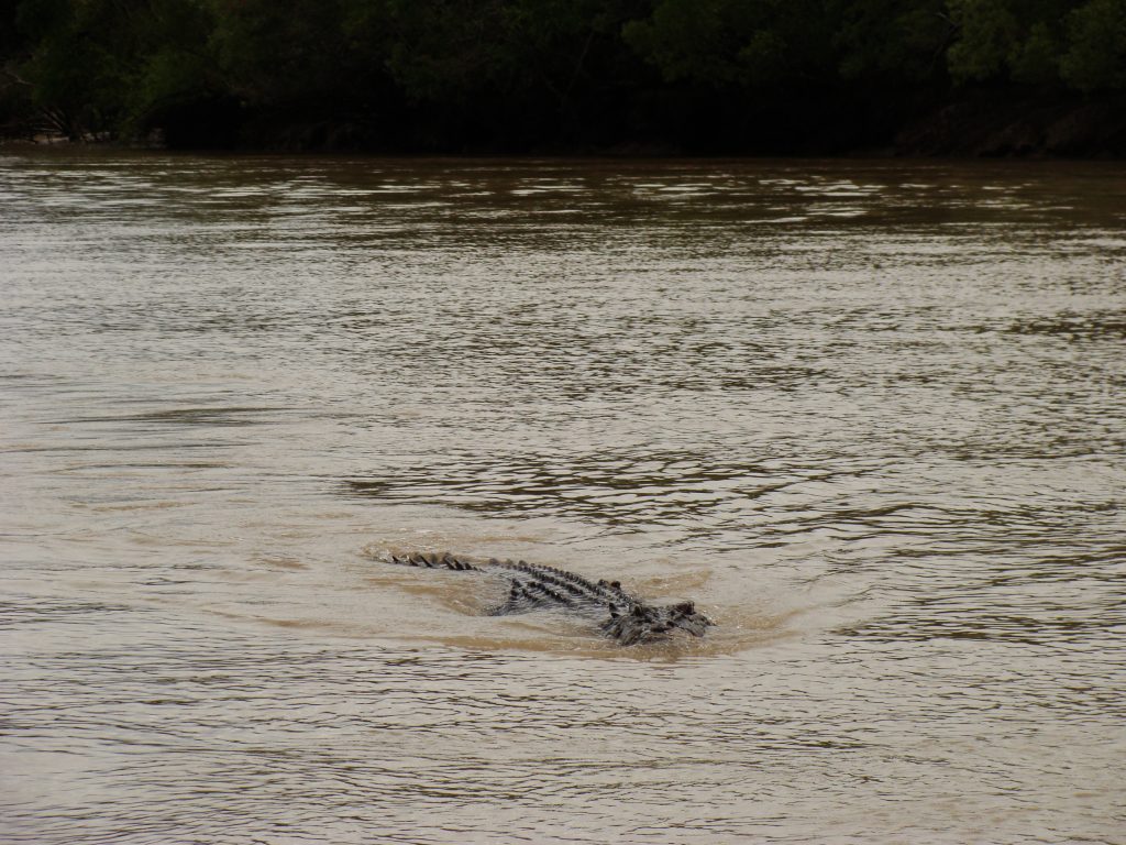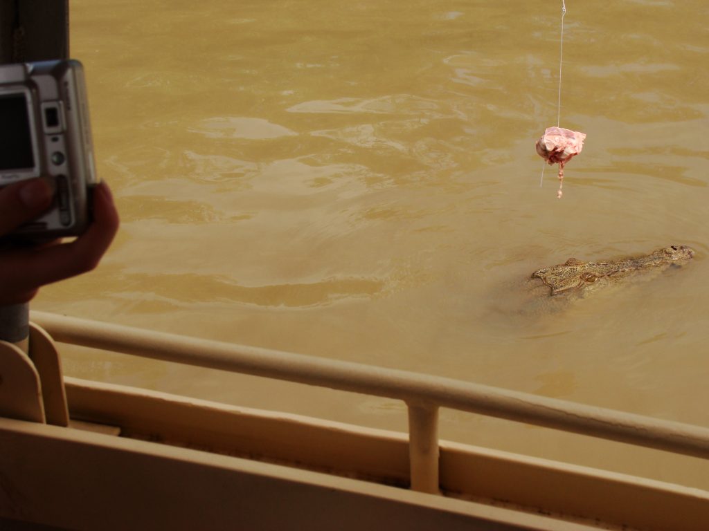Der nächste Ort war dann Jurabi im Kakadu Nationalpark. Zunächst aber waren wir 74km auf Dirt Roads unterwegs um zum Waterfall Creek zu kommen, in deren Lagune Crocodile Dundee gedreht wurde. Leider regnete es dann am Ubirr, sodass wir den Sonnenuntergang da nicht mehr verfolgen konnten. Es regnete nun nämlich jede Nacht und die Gewitter kamen langsam rein. Es ist jetzt nämlich Wetseason und das heißt: Tagsüber Sonne und nachts Gewitter, obwohl die schon gegen ein Uhr aufzogen. Von Jurabi sind wir dann in den Litchfield Park gefahren und haben auf dem Weg noch bei den Jumping Crocs Station gemacht. Da werden wilde Salties gefüttert, die sich für das Essen schon bis zu 1m aus dem Wasser bewegen müssen.