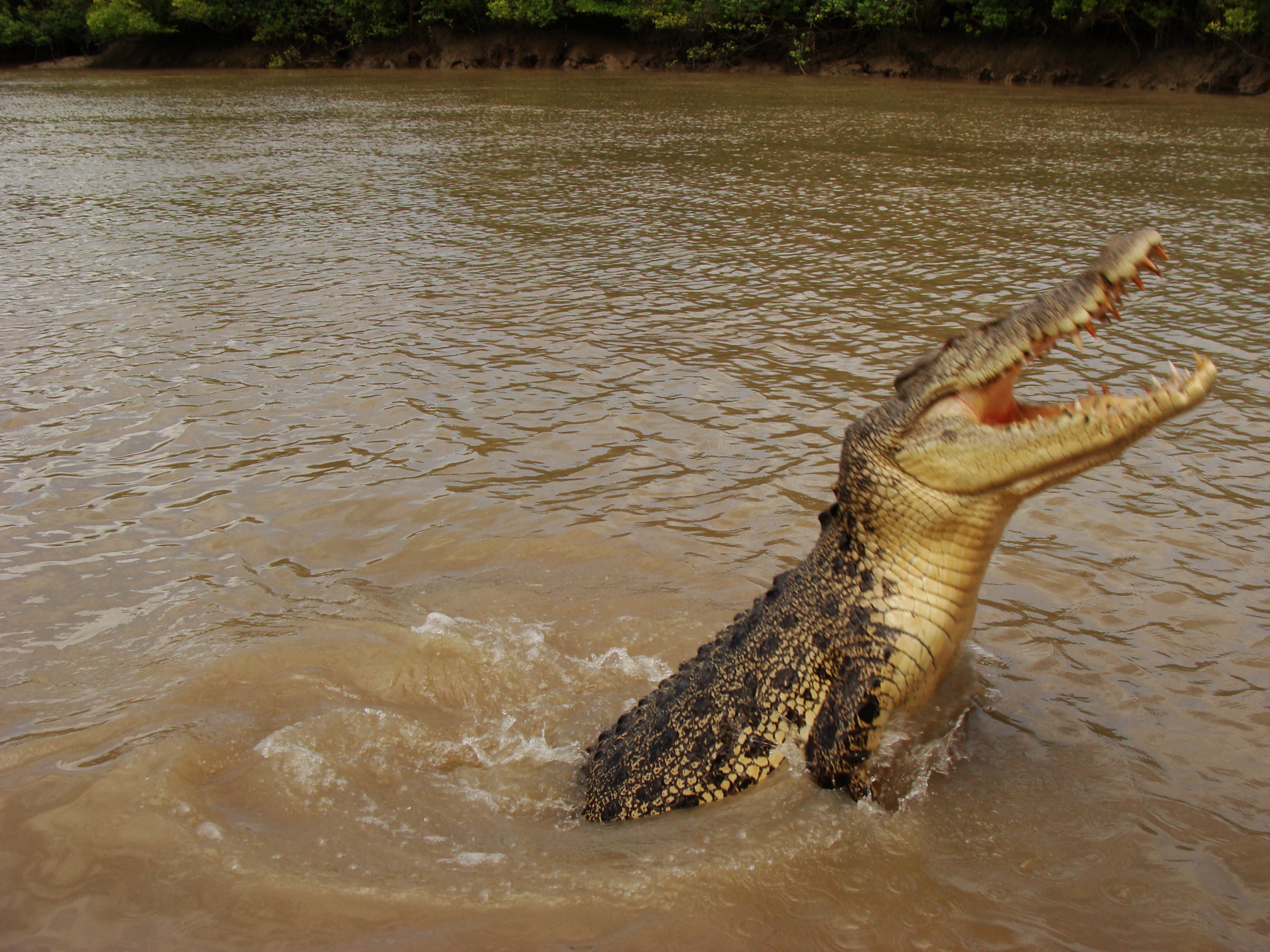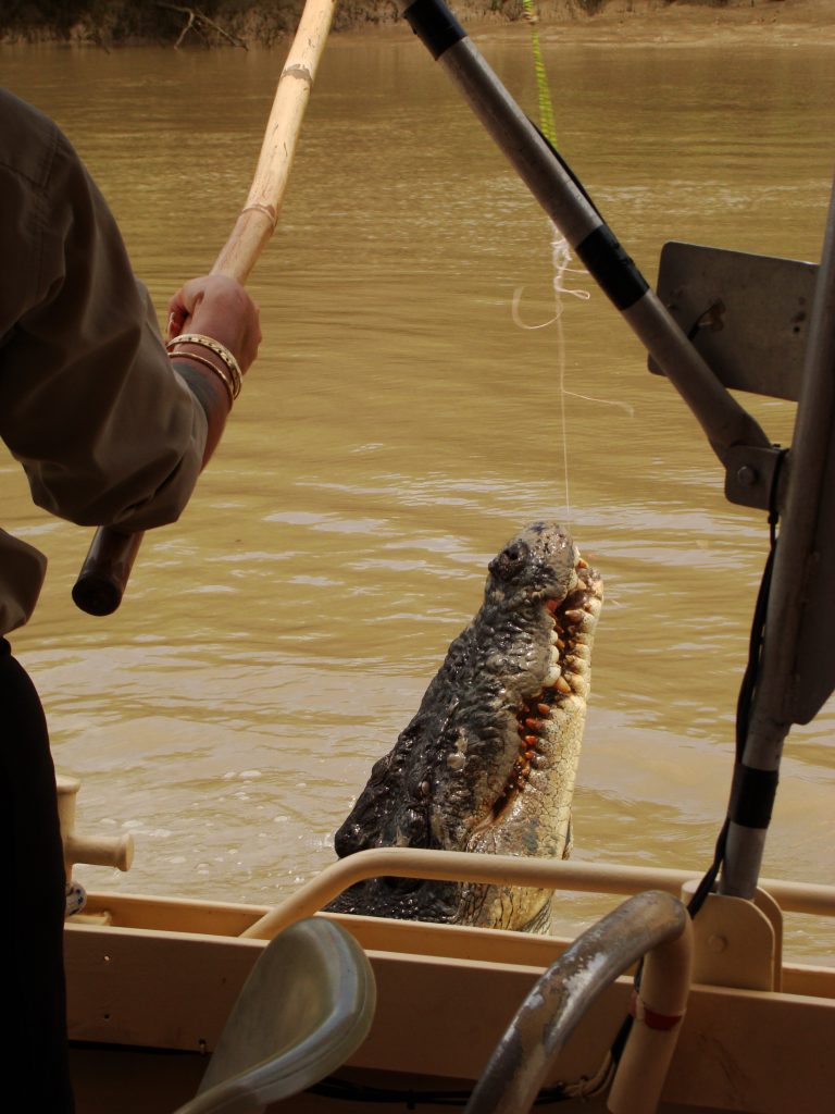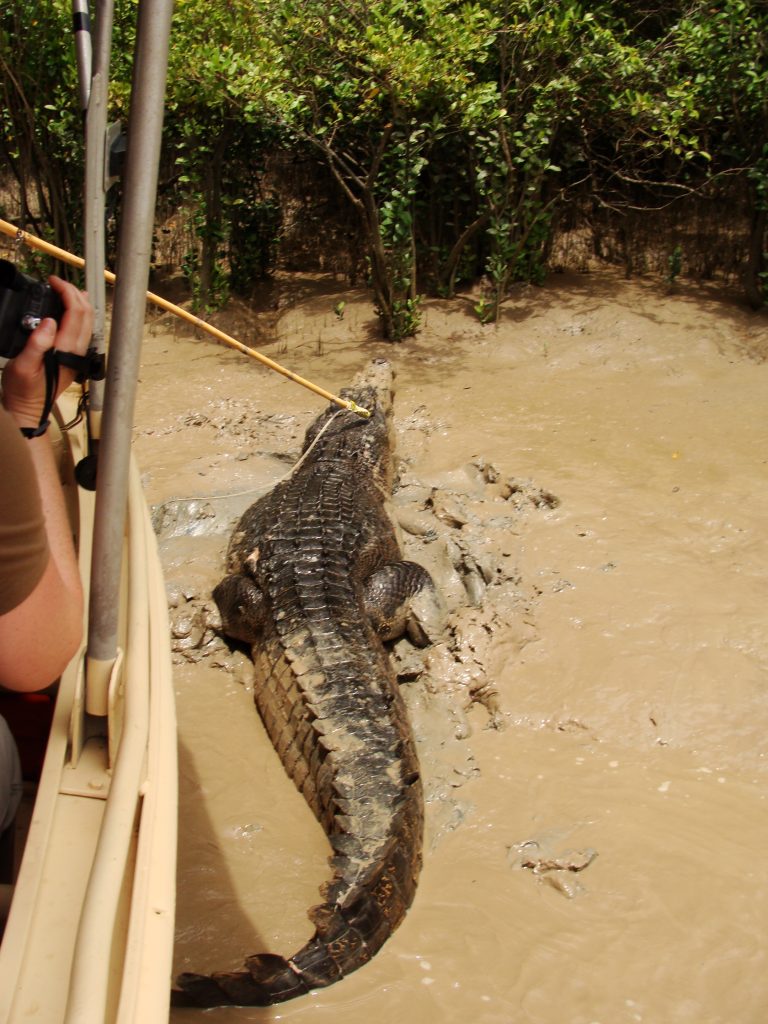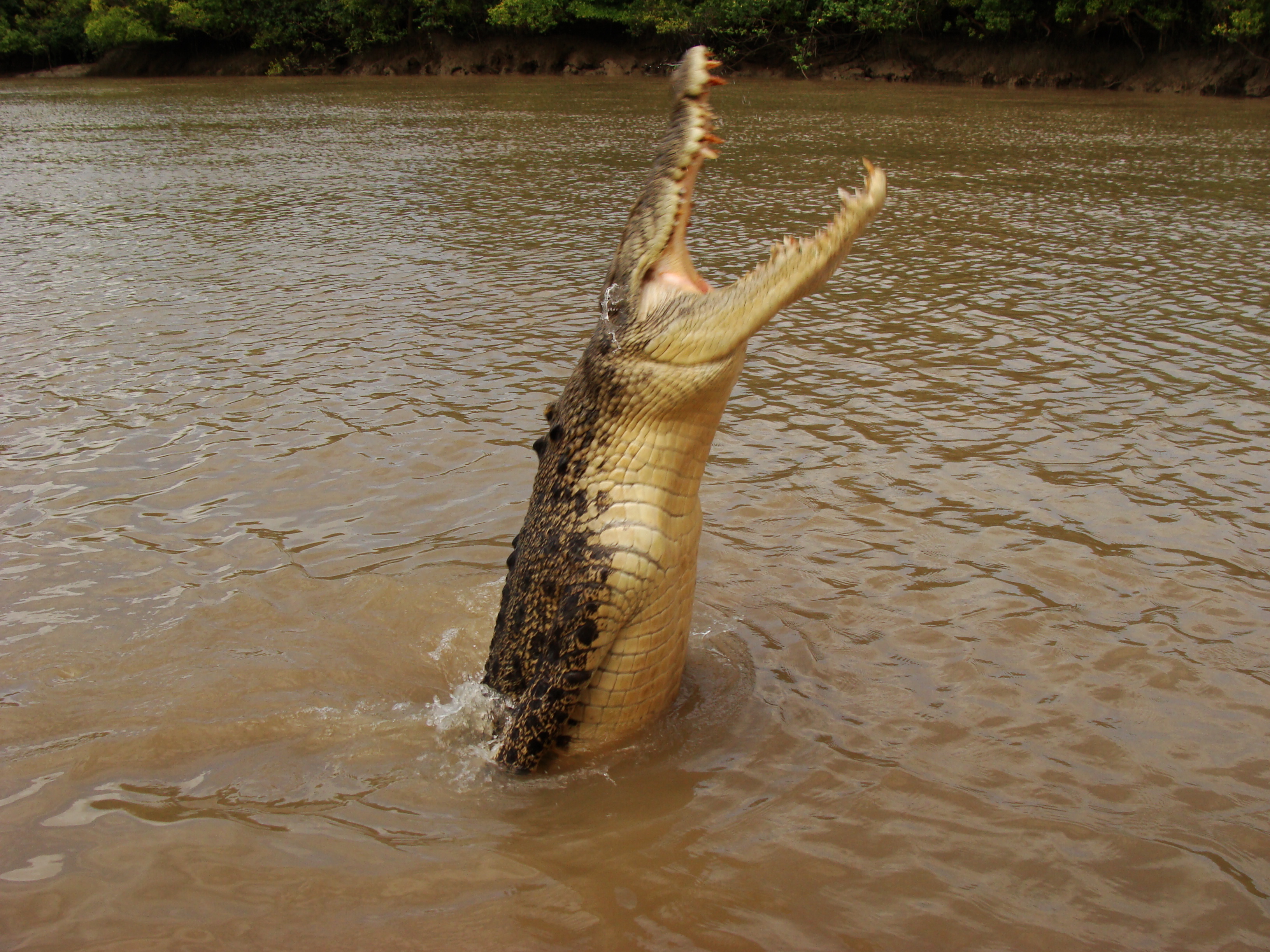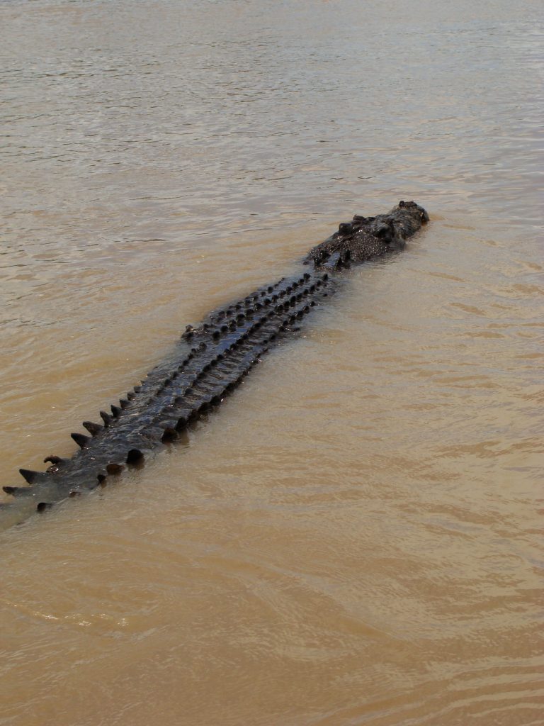 Der nächste Ort war dann Jurabi im Kakadu Nationalpark. Zunächst aber waren wir 74km auf Dirt Roads unterwegs um zum Waterfall Creek zu kommen, in deren Lagune Crocodile Dundee gedreht wurde. Leider regnete es dann am Ubirr, sodass wir den Sonnenuntergang da nicht mehr verfolgen konnten. Es regnete nun nämlich jede Nacht und die Gewitter kamen langsam rein. Es ist jetzt nämlich Wetseason und das heißt: Tagsüber Sonne und nachts Gewitter, obwohl die schon gegen ein Uhr aufzogen. Von Jurabi sind wir dann in den Litchfield Park gefahren und haben auf dem Weg noch bei den Jumping Crocs Station gemacht. Da werden wilde Salties gefüttert, die sich für das Essen schon bis zu 1m aus dem Wasser bewegen müssen.
