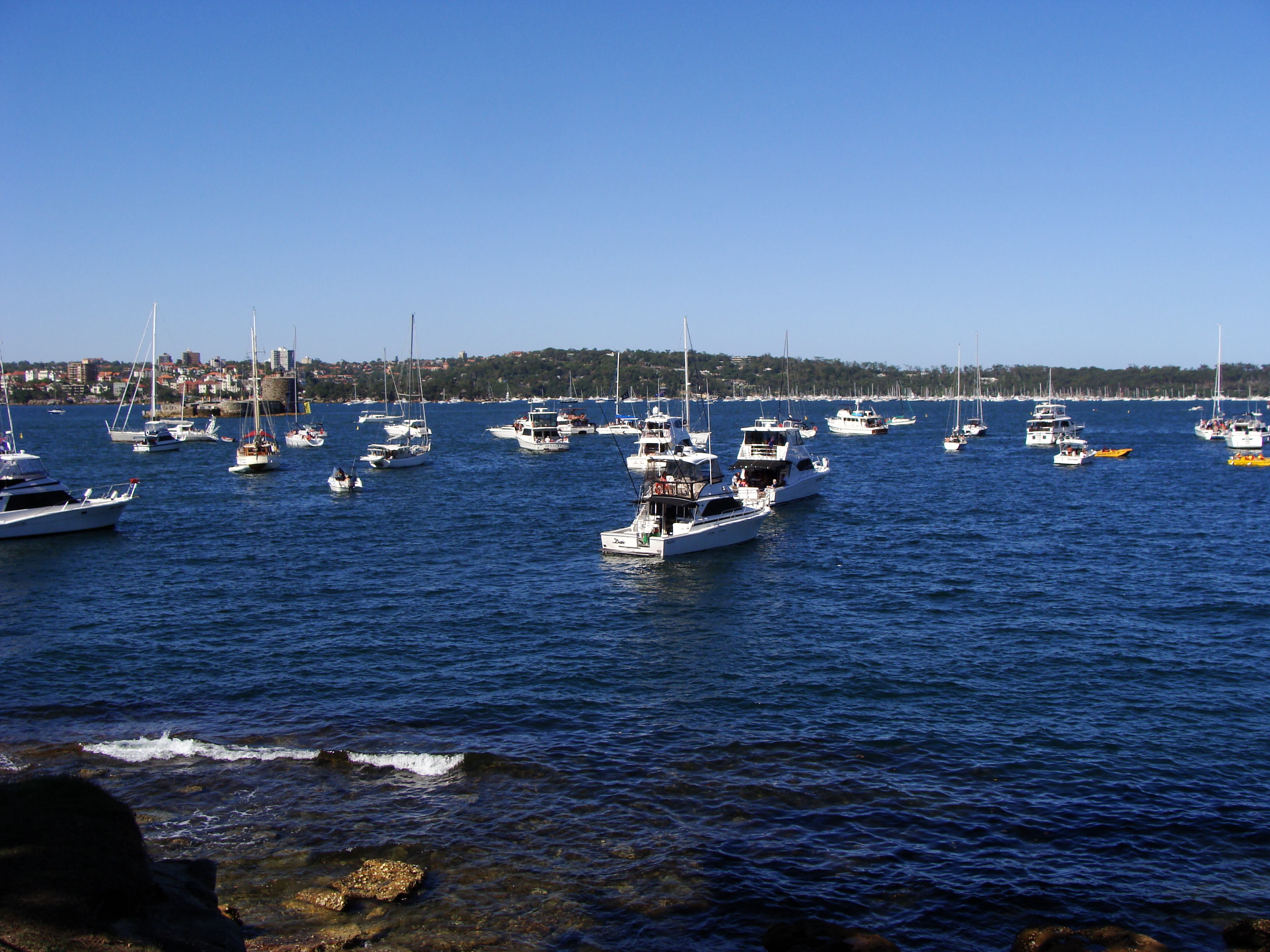 Richtig warme Weihnachten waren dann auch eine Erfahrung. Als überzeugter Weihnachtsmuffel gab es dann auch keine Bescherung, dafür ging es am Christmasday, dem offiziellen Weihnachtsfeiertag, an den Strand! Schon lustig, wenn die Leute in Badehose und Weihnachtsmannmütze herumlaufen. Ich wanderte aber gen Süden zum Coogee-Beach und fuhr dann wieder mit dem Bus zurück. An anderen Tagen erkundete ich noch Manly, das an der nördlichen Ende der Mündung von Port Jackson mit dem Pazifik liegt und dann auch noch Watson Bay, das am südlichen Ende jener Mündung liegt (North Head bzw. South Head). Zwei Tage ging es dann auch mal an den Strand und dreimal verhielt ich mich wie ein richtiger Tourist und lief durch die Stadt und von einer Sehenswürdigkeit zur nächsten.