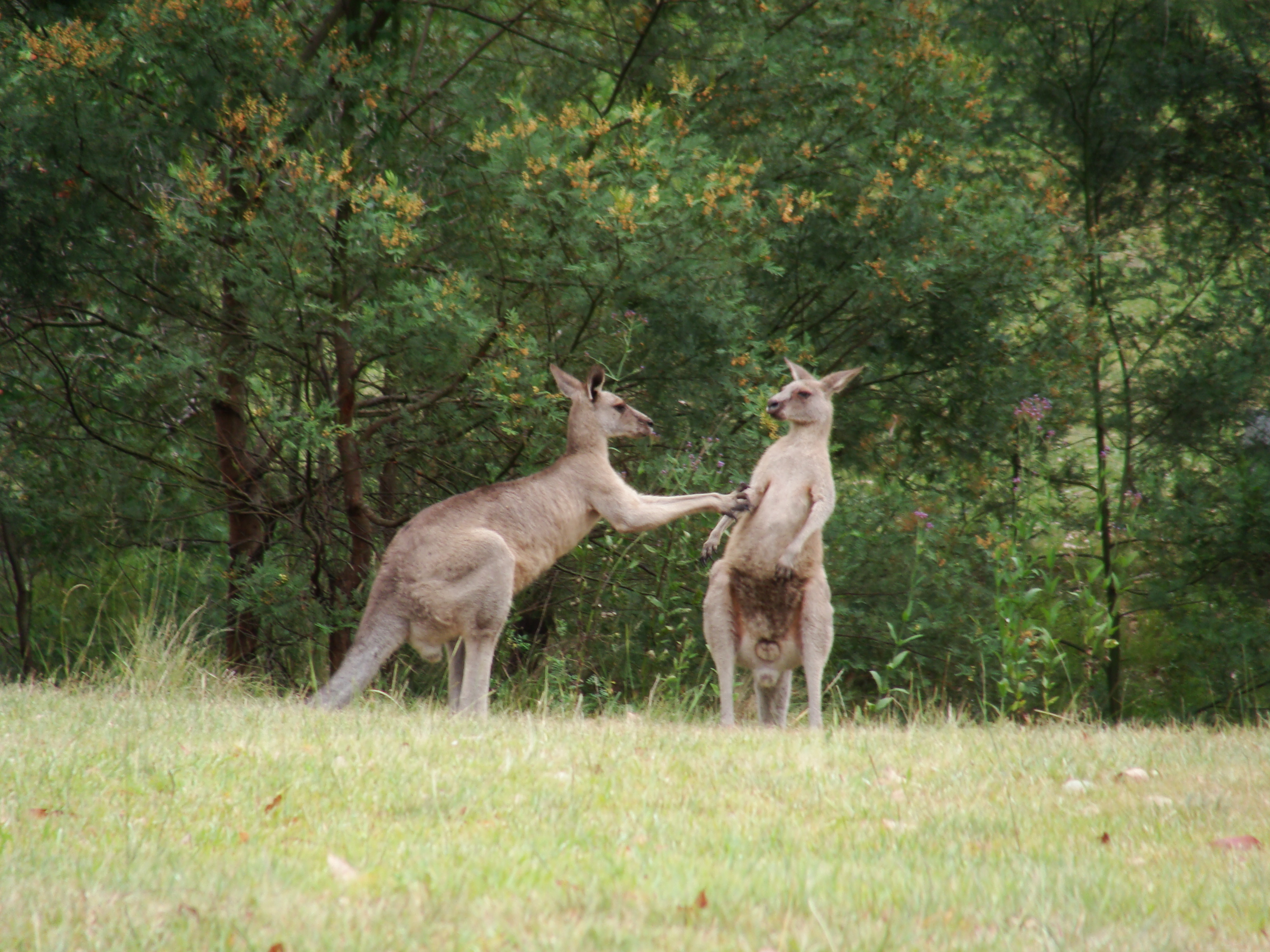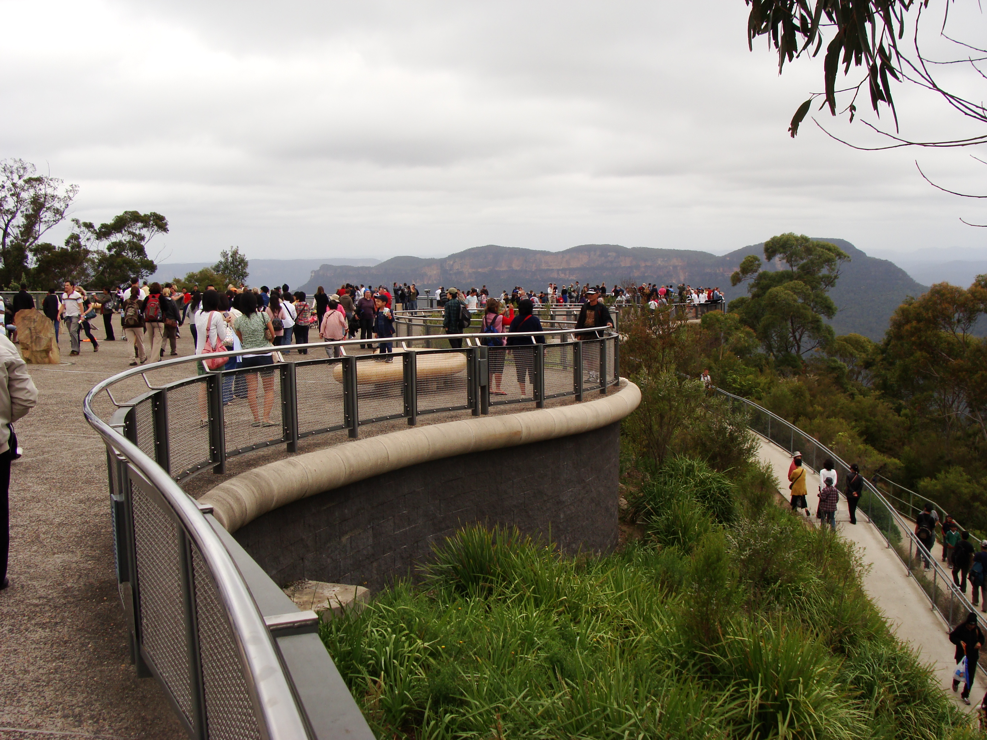 Nachdem ich Silvester gut überstanden hatte, ging es weiter in die Blue Mountains. Die liegen 100km westlich von Sydney und heißen so, weil es die ersten Berge waren, die die Europäer hier fanden. Dank Eucalyptus und Gum Tree „leuchten“ nämlich alle Gebirge in Australien in einem Blauton. Früh morgens ging es mit Oz Experience los. Zunächst Känguruhs anschauen und dann eine 4km=2h-Wanderung machen, an den Westworth Falls. War ok, aber ich hätte lieber die längere Route gemacht. Wäre wohl auch in der gleichen Zeit fertig geworden. Ich hielt mich immer am Ende der Gruppe auf, um länger an Plätzen zu bleiben, wo ich fotografieren wollte ;). Leider war das Wetter ziemlich beschissen, total bewölkt und einigermaßen kühl. So zog ich auch die Regenjacke über, geregnet hat es aber dann nicht. Nach einem kurzen Snack ging es dann noch die Furber Stairs mit 1009 Stufen nach unten. Anschließend dann mit der steilsten Seilbahn der Welt wieder nach oben. Fertig war die Tour und ich wurde im YHA in Katoomba abgeliefert. Hatte nämlich noch zwei Übernachtungen gebucht, um ein wenig herum zu wandern. Abends traf ich dann noch zwei Schotten, mit denen ich schon im YHA Darwin, im Ghan und schließlich im gleichen Hostel in Adelaide gewesen war. Toll, Australien ist fast wie ein Dorf, man trifft immer wieder die gleichen Leute. Da ich früh aufgestanden war, ging es auch früh wieder ins Bett. Achja, den Dominik hab ich hier auch wieder getroffen, die mussten aber wieder nach Sydney fahren, da hier alles ausgebucht war :D.