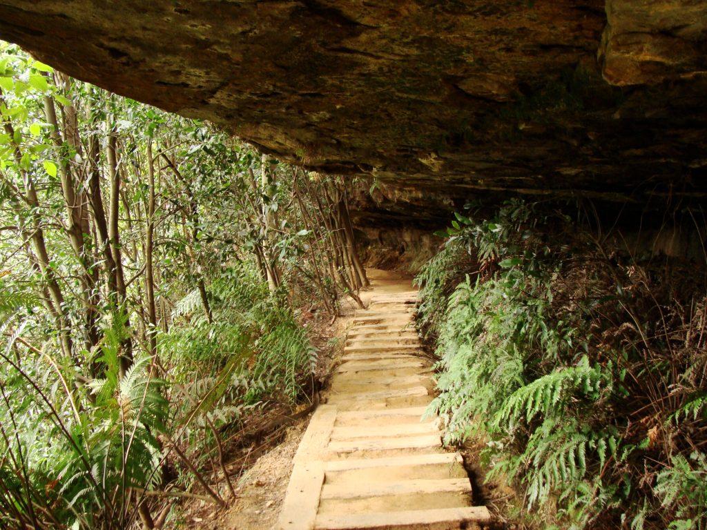 Tag zwei in den Blue Mountains begann dann mit einer Wanderung und die ist auch eigentlich das einzige, was ich an dem Tag gemacht habe. Von morgens um acht bis nachmittags um vier war ich ohne Pause unterwegs. Dank Hydration Pack muss man auch zum Trinken keine Pause machen. Allerdings für das Fotografieren musste ich dann schon mal anhalten… Das Wetter war gut und so ging es zunächst wieder die 1009 Treppenstufen hinab. Dann einen 15km Rundkurs zum „Ruined Castle“ und dann noch den Federation Pass, entlang den Leura Cascades bis zum Tarpeian Rock. Von da machte ich mich dann auf den Weg zurück ins Hostel, da mir so langsam auch die Beine schwer wurden. Zu den 1009 Treppenstufen kamen noch einmal genauso viele abwärts dazu. Und die gleiche Anzahl (bestimmt 2000) ging es wieder bergauf (natürlich nicht auf einmal, aber einmal waren es bestimmt 600 enge Stufen in Folge ohne Pause!!)… Das war gut anstrengend und natürlich lief die Brühe, aber das ist ja eh alles egal. Dank ganz vielen Bäumen lief ich auch die meiste Zeit im Schatten. Später fing es dann noch ein wenig an zu Regnen und Blitz und Donner liesen sich auch kurz Blicken. Im Hostel sprang ich nur noch unter die Dusche, machte etwas zu essen und bloggte. Daher gibt es diesen und den Sydney-Eintrag auch schon zu lesen. Hatte von der Rezeption 2h kostenloses Internet bekommen, da ich heute das Zimmer wechseln musste.
