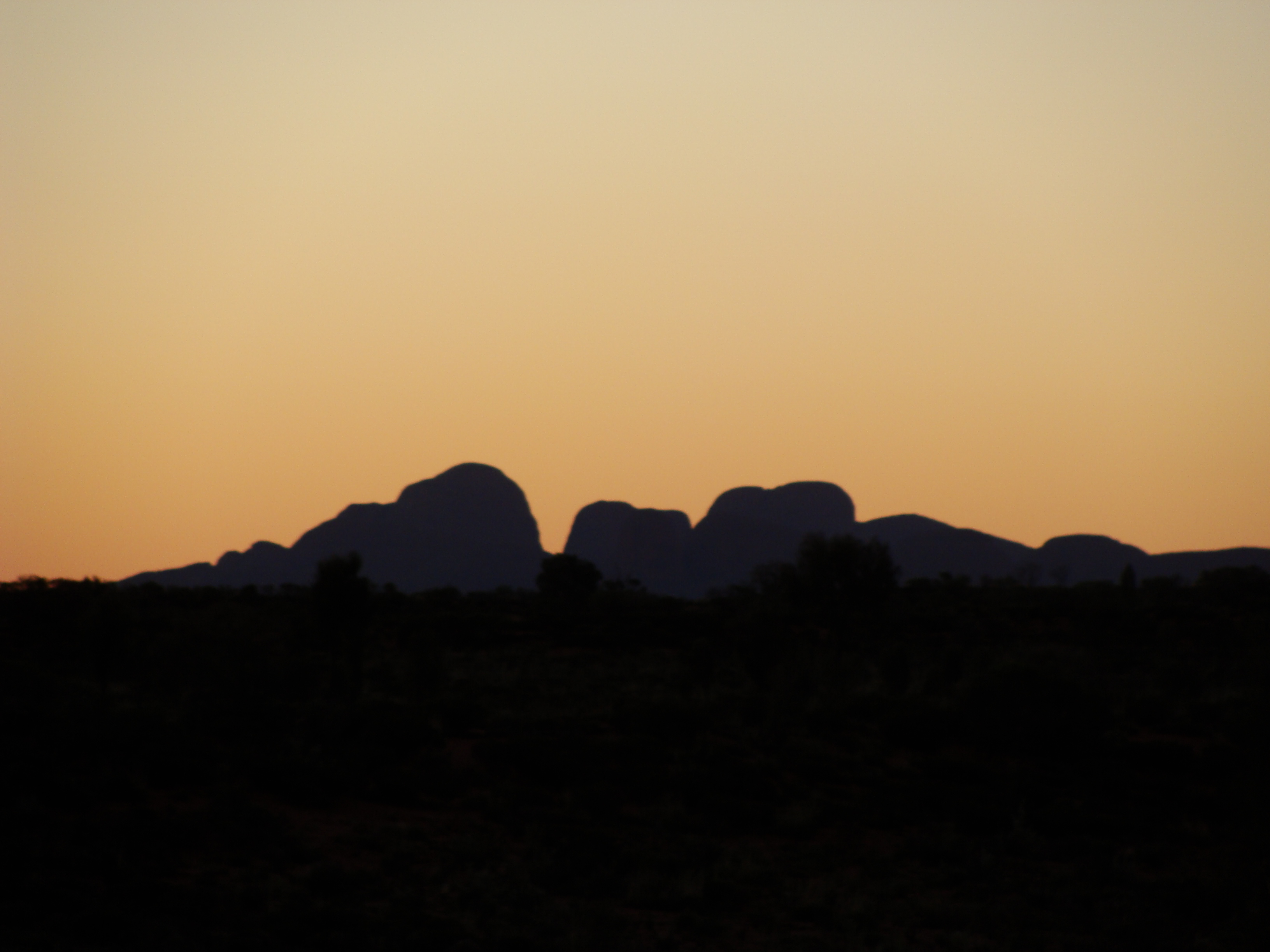 Also früh hoch und noch vor dem Frühstück losgefahren. Swags zusammen gerollt und verstaut und dann um Punkt 0500 als der Nationalpark die Pforten öffnete, an allen wartenden Autos vorbeigerauscht, da wir die Tickets schon hatten :). Die meisten Touren fahren zur Uluru Sunrise Viewing Area, für uns aber ging es zur Kaja Tjuta Sunrise Viewing Area. Da war natürlich weniger los und der Anblick war einfach besser. Frühstück wurde dann oben auf einer Düne gezaubert. Blick auf Uluru war auch inklusive, weshalb die meisten sich nach Osten orientierten: