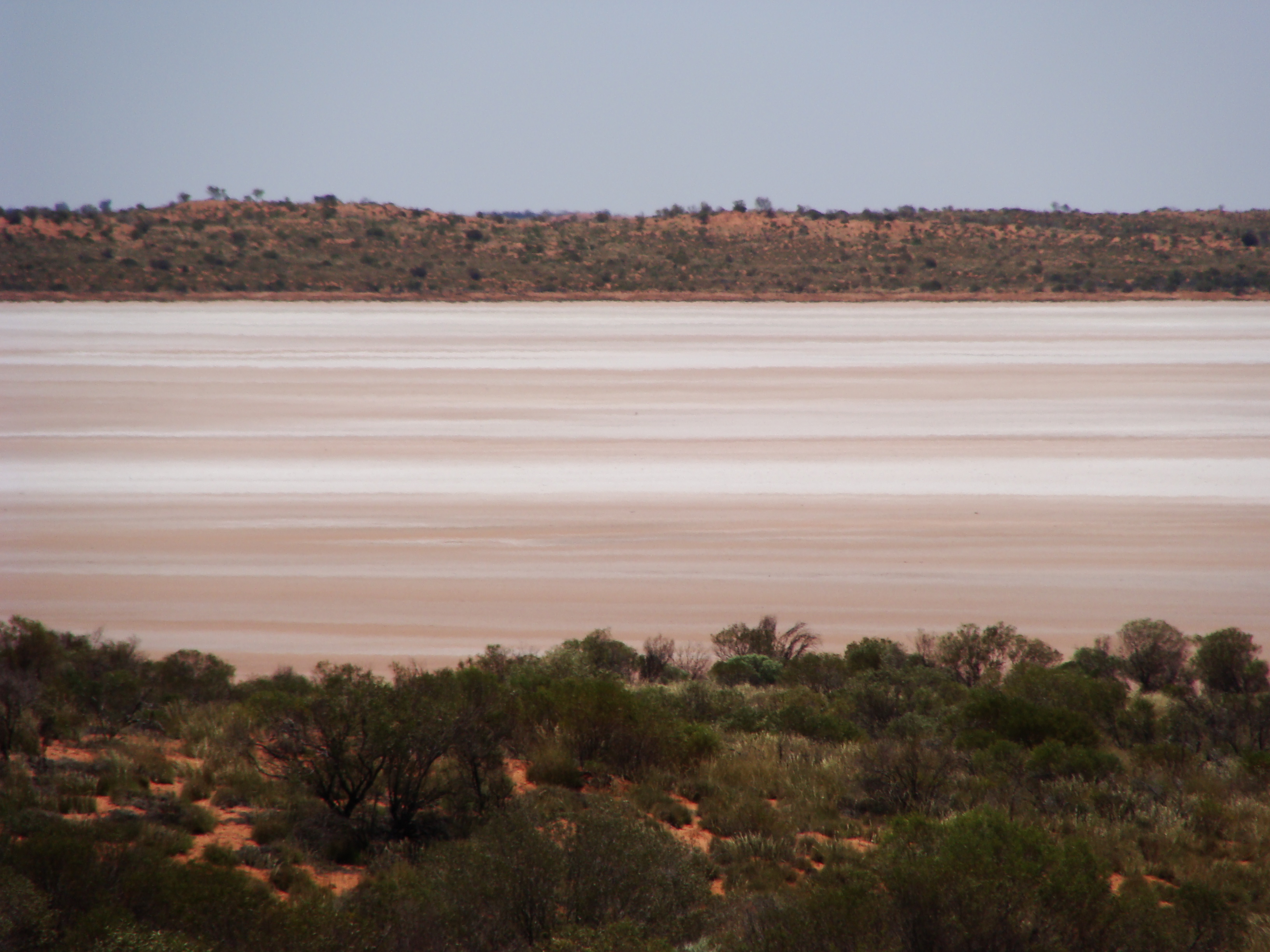Gegen elf waren wir dann auch wieder am Bus und es ging zurück nach Yulara, dem Ayers Rock Resort. Wahnsinn, dass gegen viertel vor Elf noch einige Eltern ihre schon müden und nicht wirklich begeisterten Kinder auf den Walk schleppten… Sandwiches gab es diesmal am Swimming Pool. Nach ausgiebiger Mittagspause ging’s zum Mt Connor Lookout, auf der anderen Seite gab’s dann auch noch einen der vielen Salzseen: