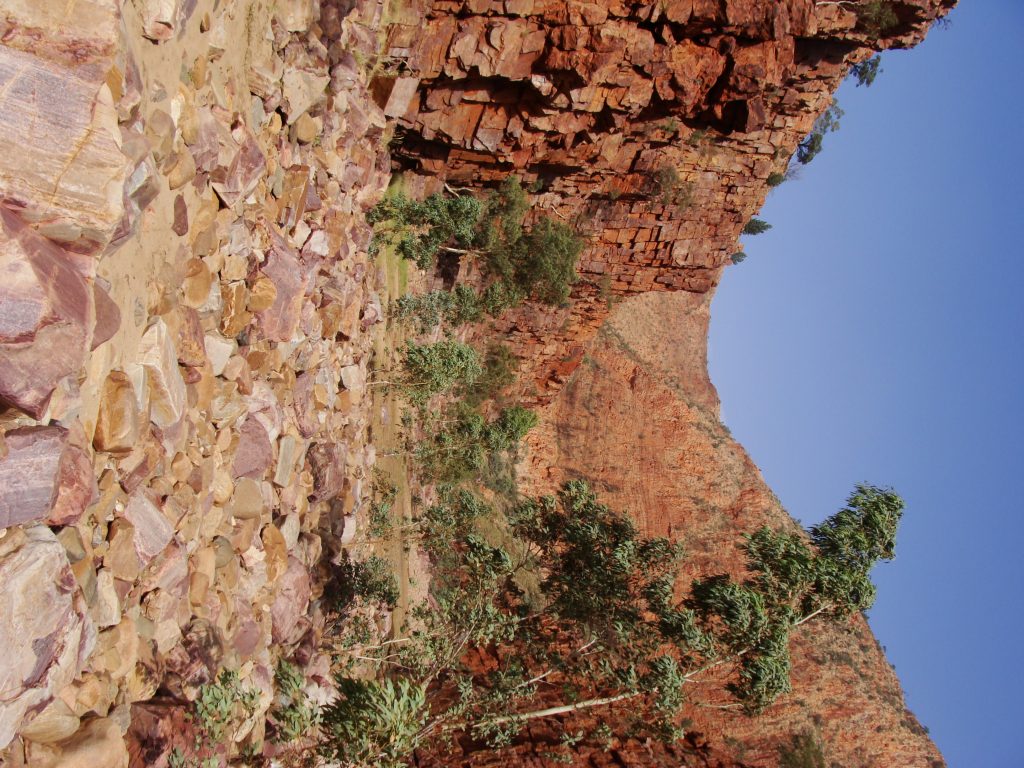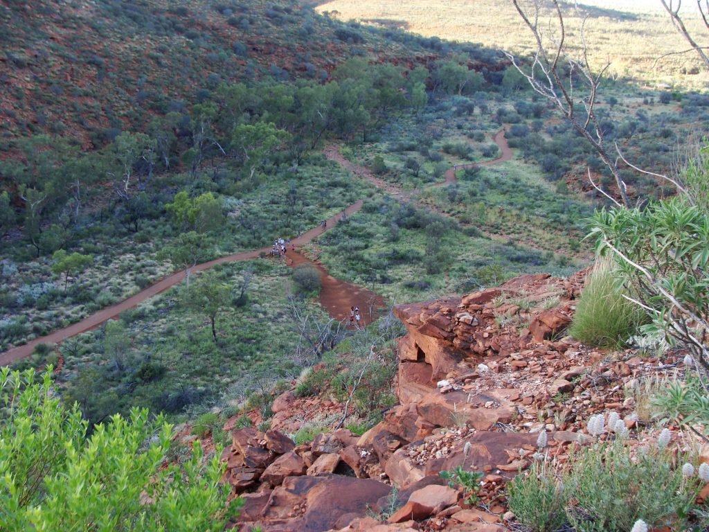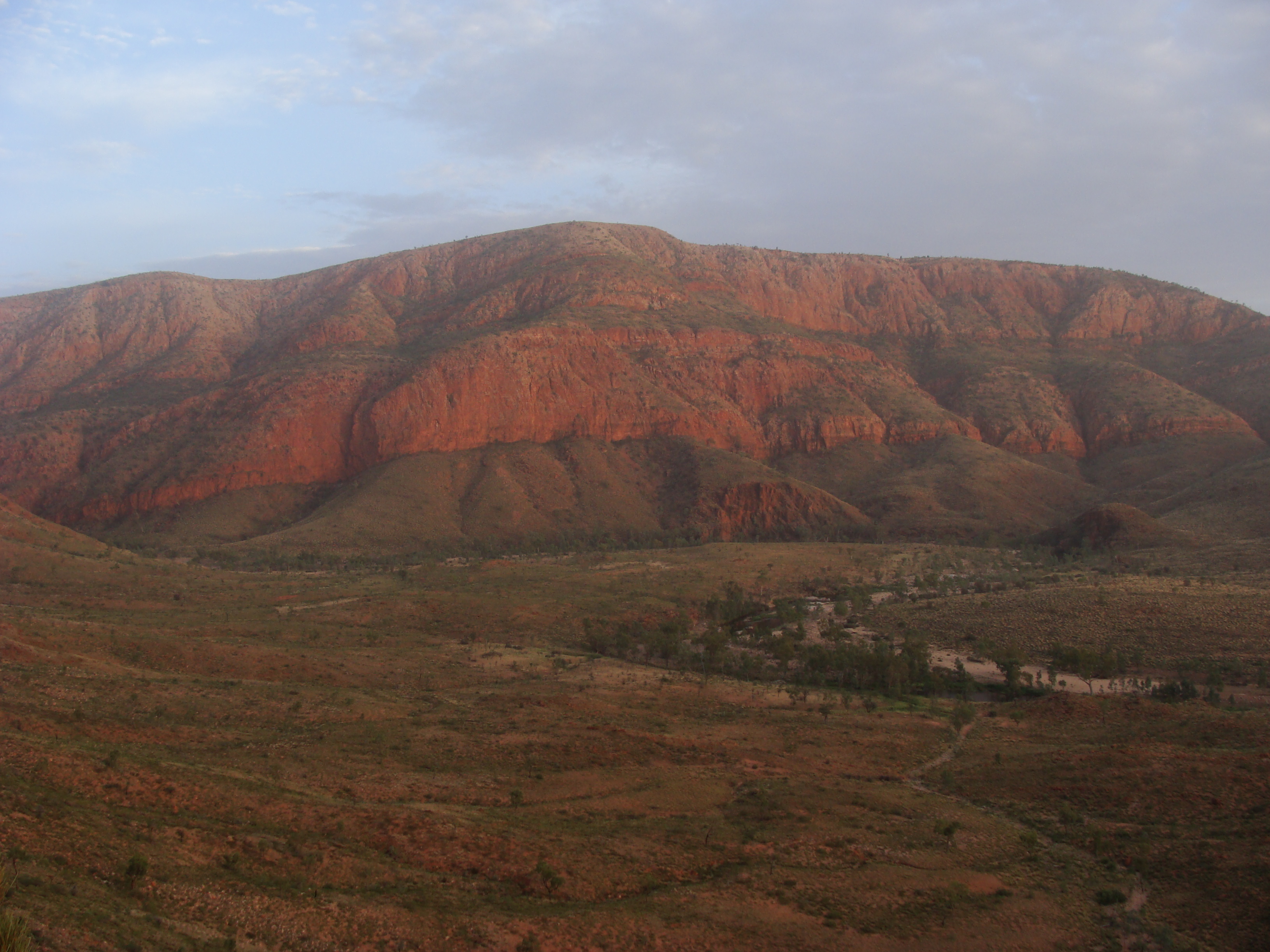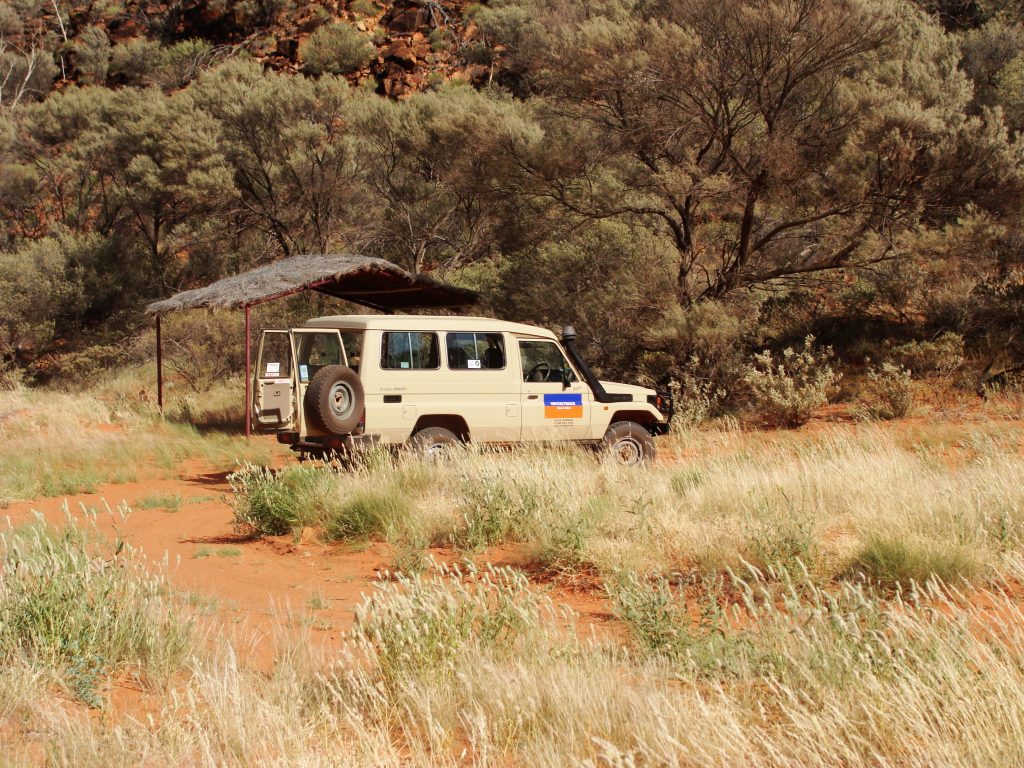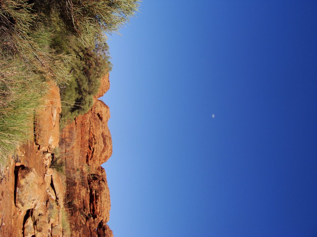 Steve meinte, dies sei die beste Wanderung in Central Australia. Also früh aufstehen… Es ging dann noch kurz in den Pub und anschließend zum Campground für die letzte Nacht, der einzige ohne Toilette und fließend Wasser: