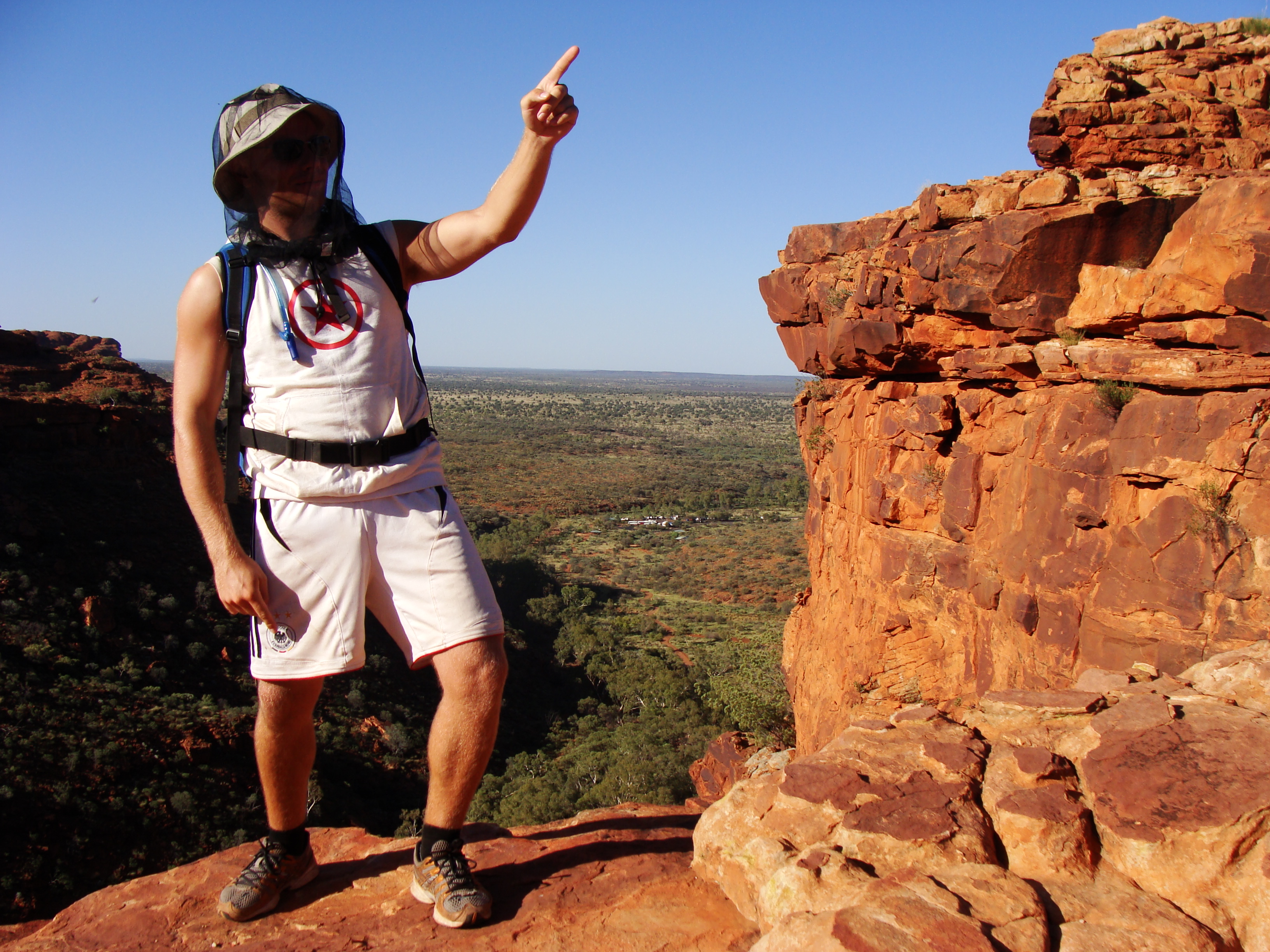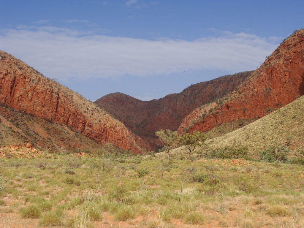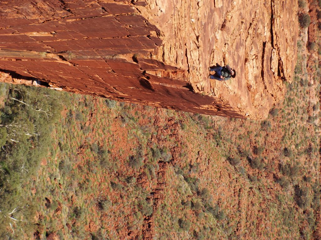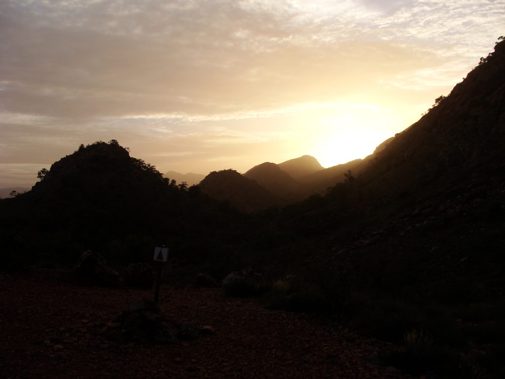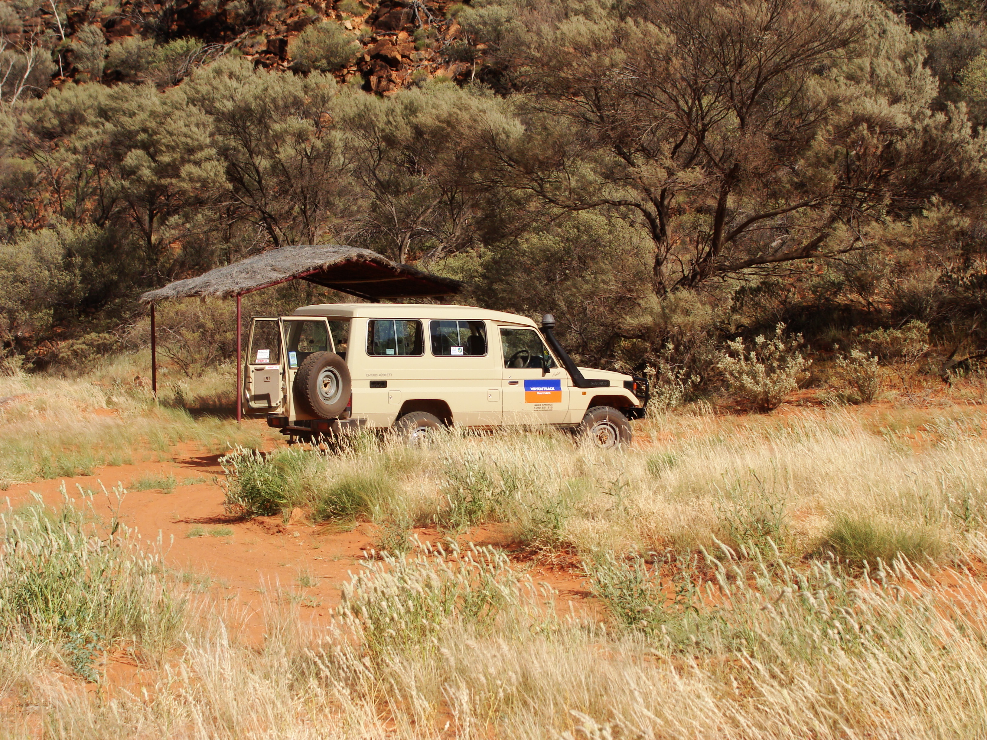 Steve meinte, dies sei die beste Wanderung in Central Australia. Also früh aufstehen… Es ging dann noch kurz in den Pub und anschließend zum Campground für die letzte Nacht, der einzige ohne Toilette und fließend Wasser: