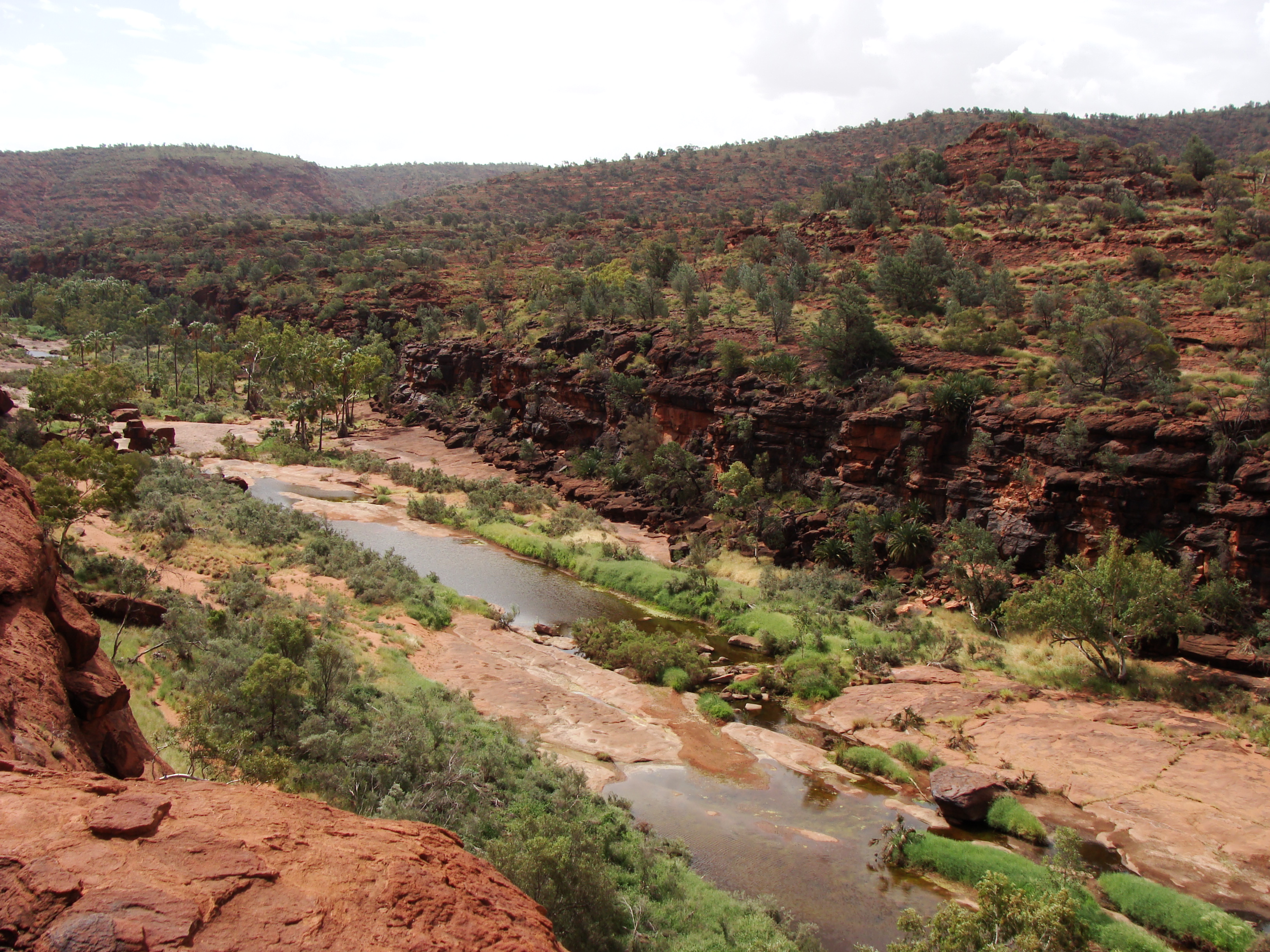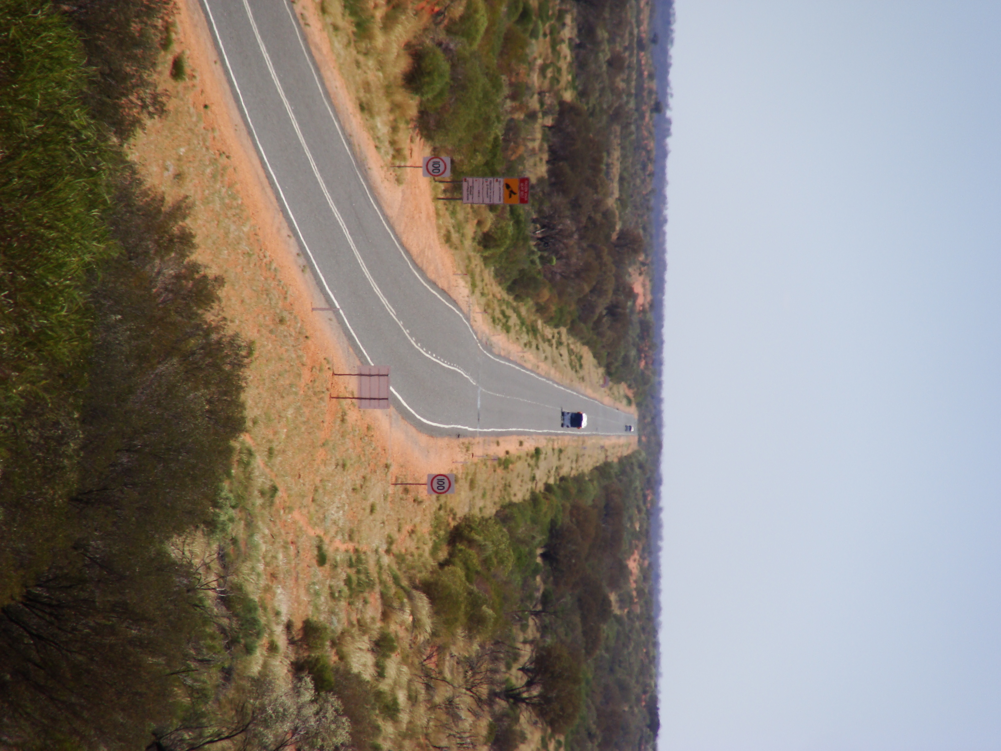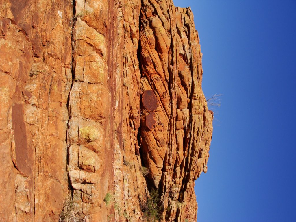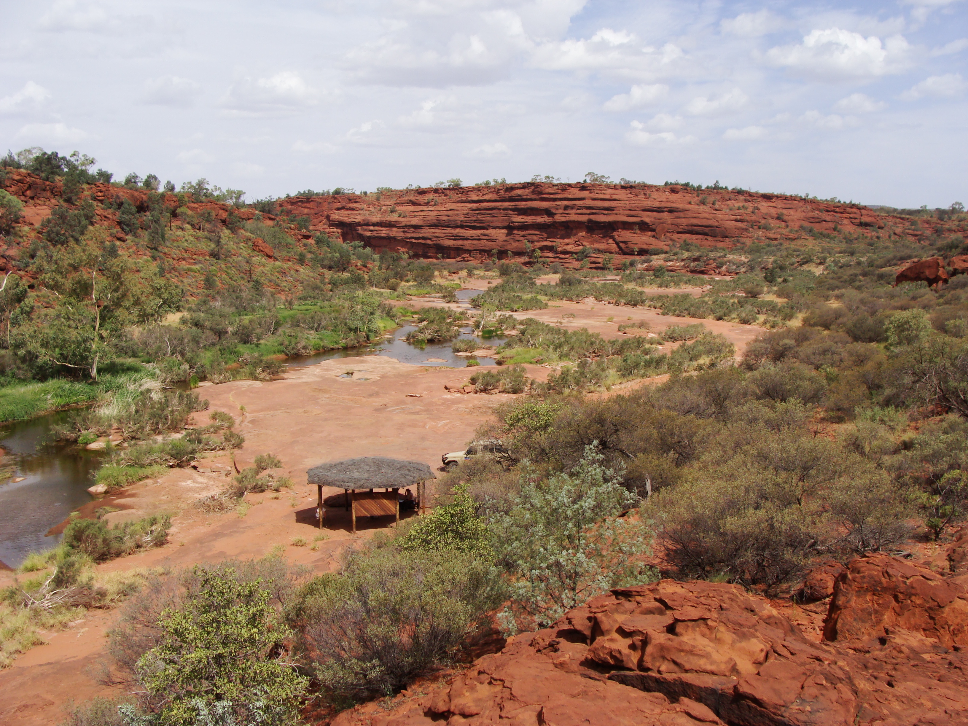 Steve meinte, dies sei die beste Wanderung in Central Australia. Also früh aufstehen… Es ging dann noch kurz in den Pub und anschließend zum Campground für die letzte Nacht, der einzige ohne Toilette und fließend Wasser: