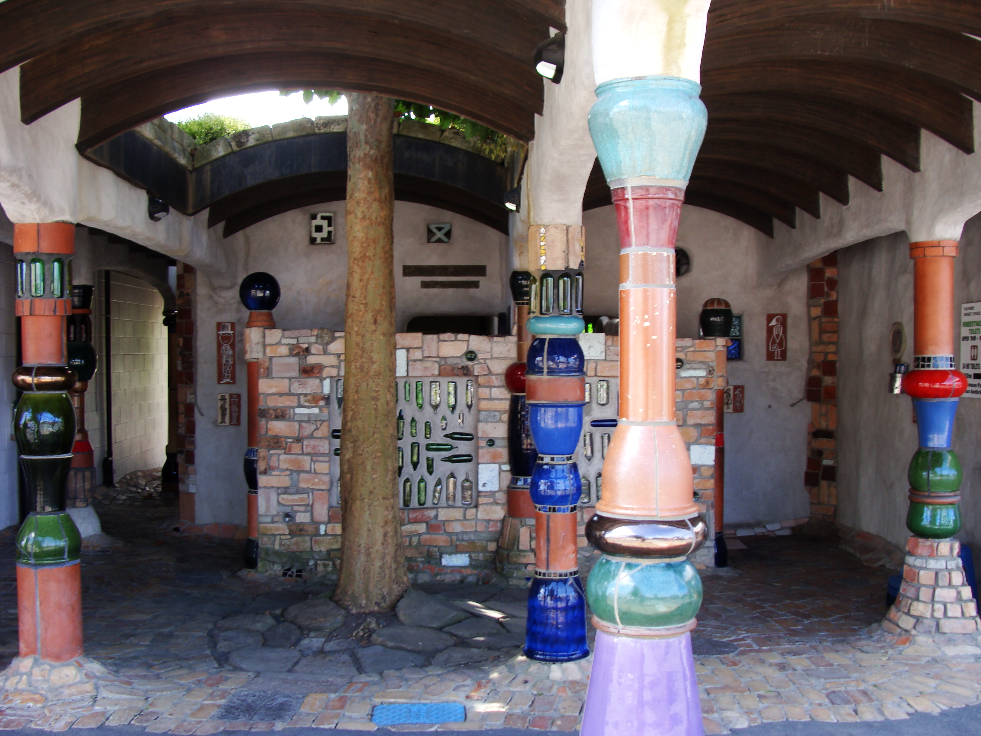 Auf dem Weg gab es auch noch von Hundertwasser entworfene Toiletten zu sehen:
