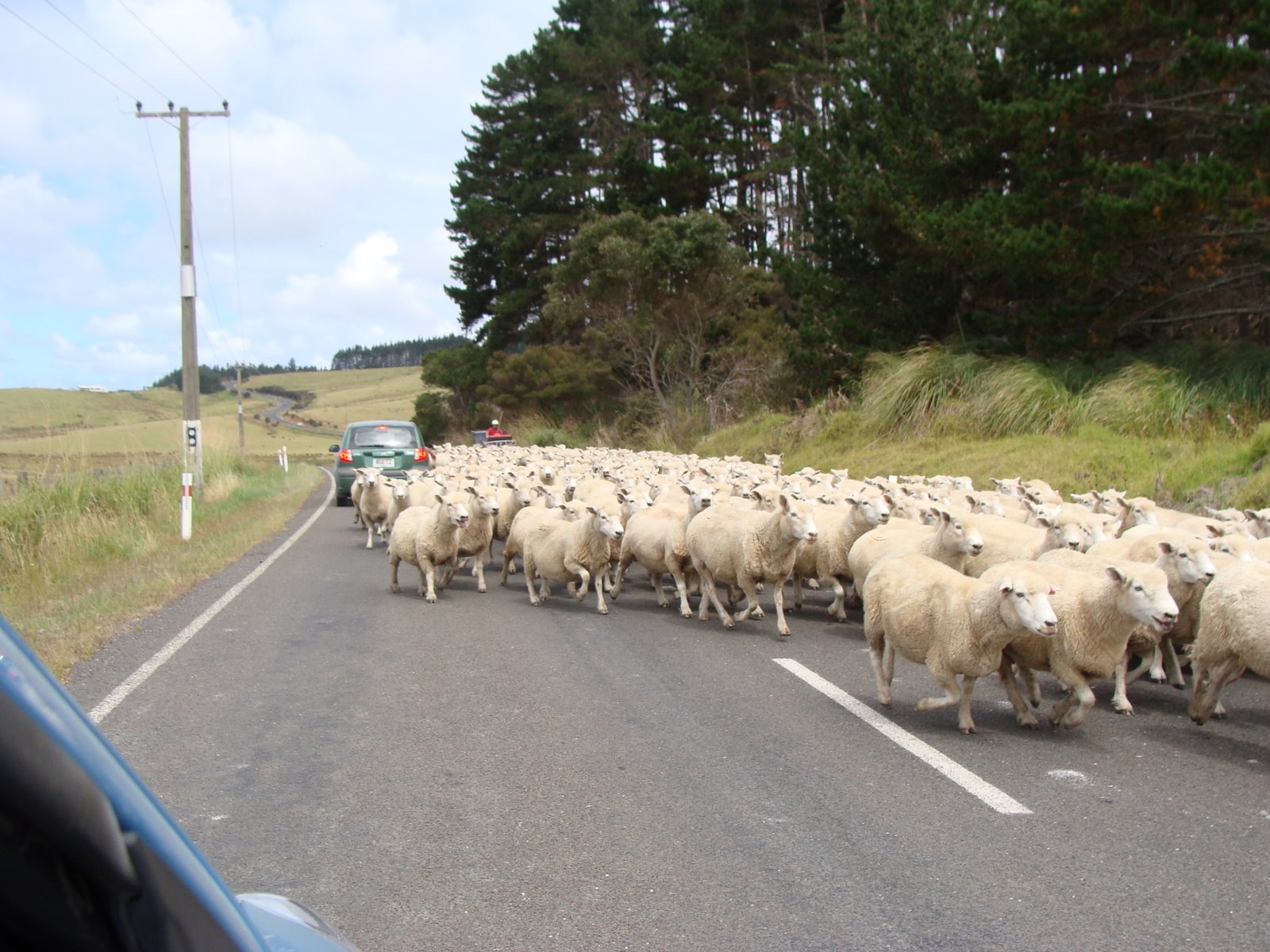Anschließend gab es einen wunderbaren Drive auf der Landstraße über Berge. Traumhaft und ganz anders als die endlichen Weiten Westaustraliens… Das macht richtig Spaß und das eigene Auto hat sich schon gelohnt! Es ging zurück nach Paihia. Eine Schaafherde gab es auch mal auf der Landstraße