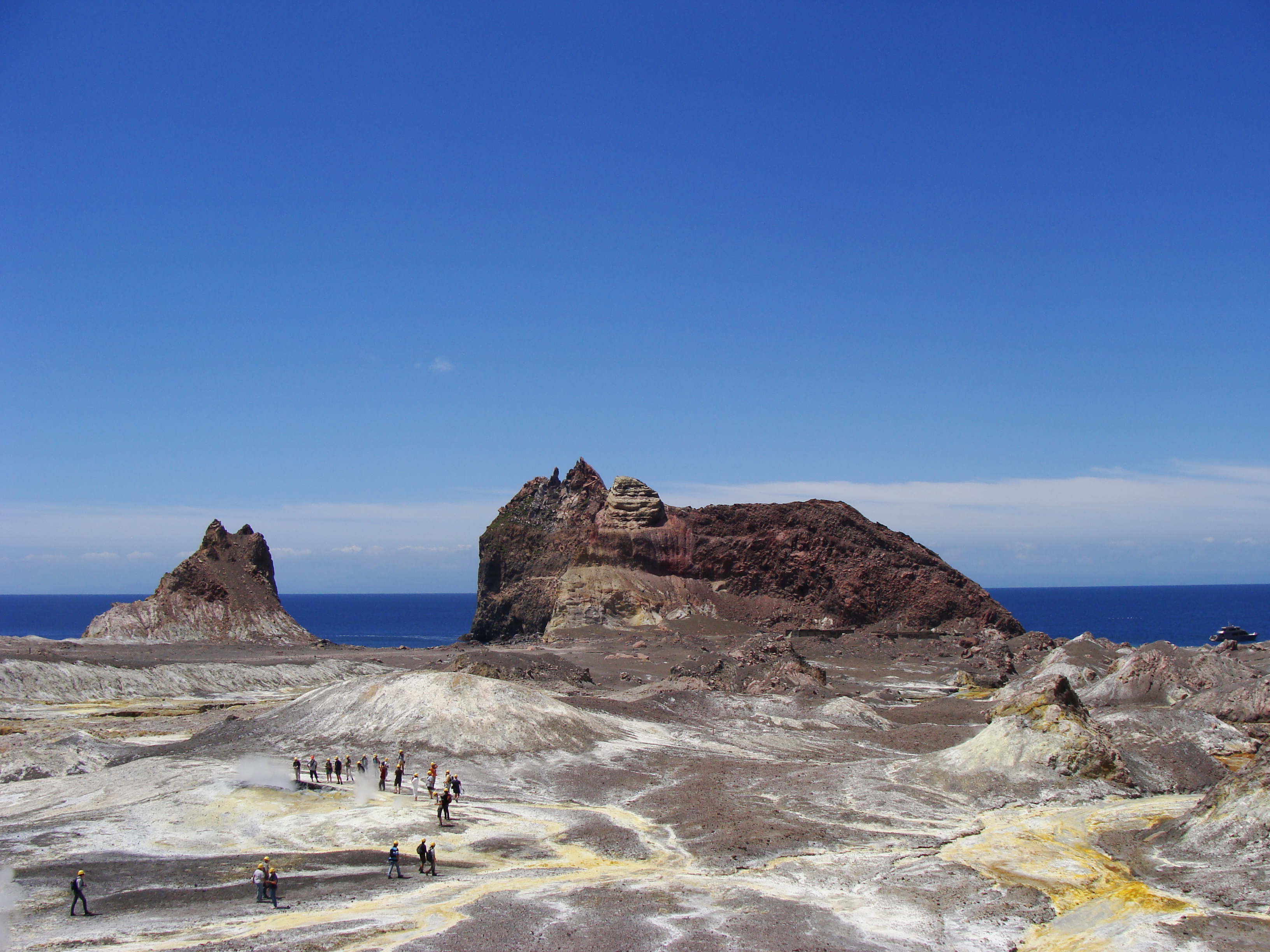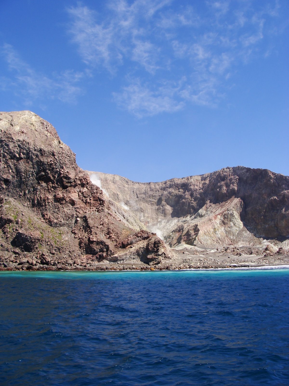 Am fünften Tag ging es früh morgens von Tauranga nach Whatakane, von wo ich für einen Tag nach White Island, dem einzigen aktiven Vulkan Neuseelands gefahren bin.der liegt etwa 50km vor der Küste, war also einen Tagesausflug wert. Wieder gab es ein paar kleine Küstendelfine:
