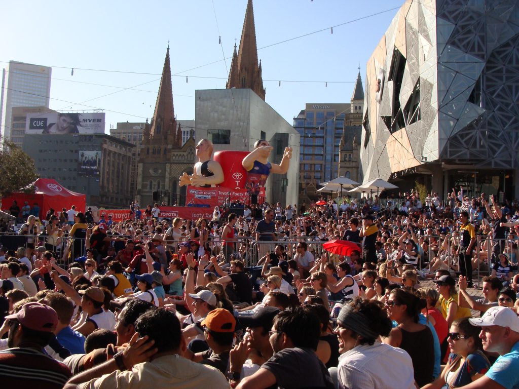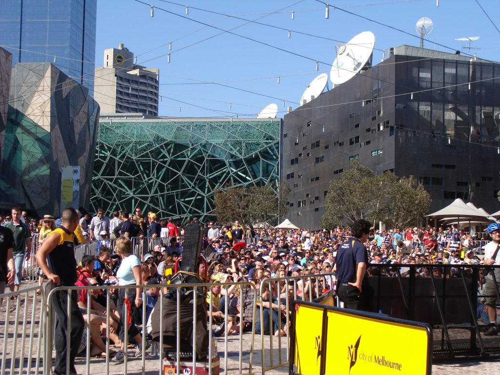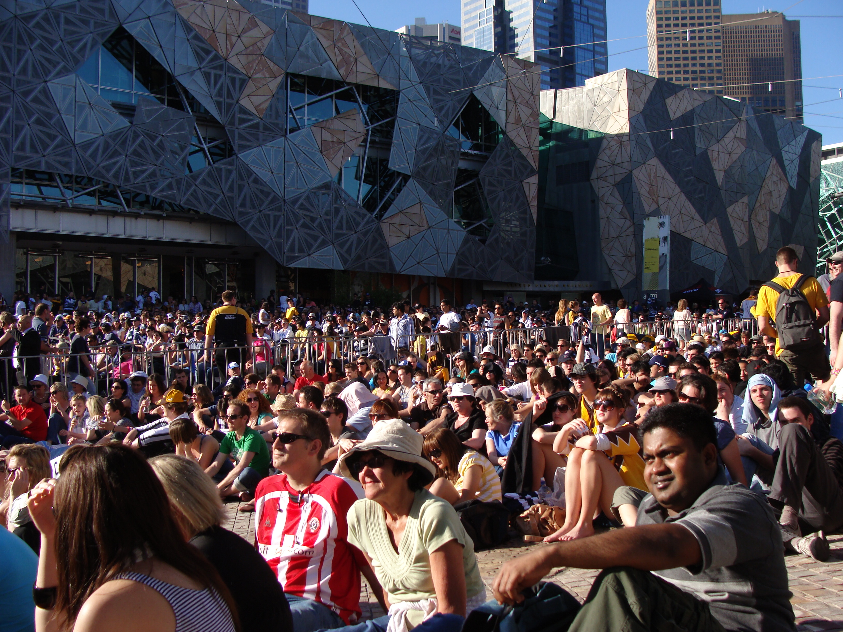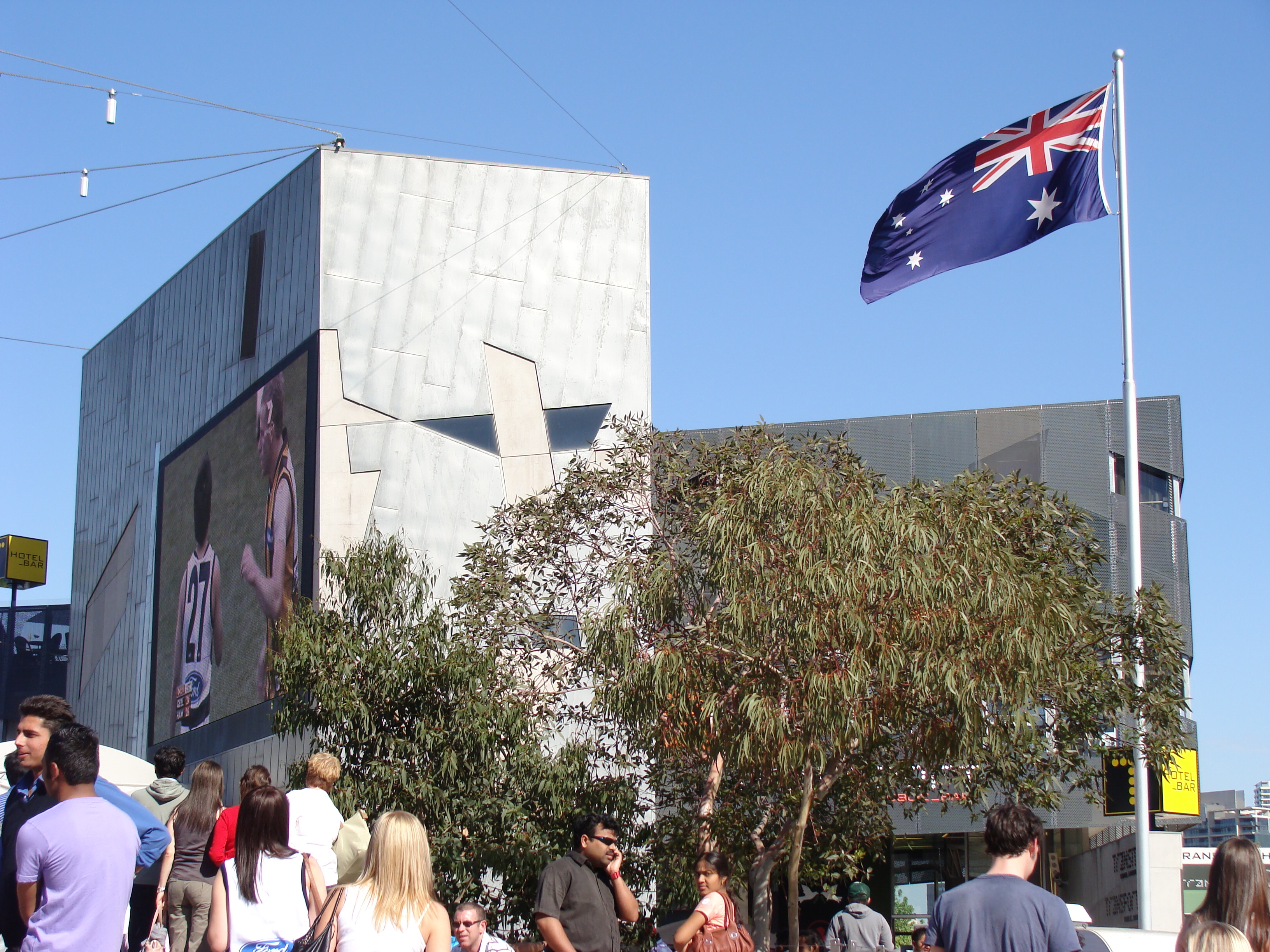 Montag ging’s dann Tagsüber in die State Library, die kostenloses Internet erlaubte, um für die in Deutschland gebliebenen die Berichterstattung nachzutragen. Nach einer kurzen Stärkung im Hostel ging es dann abends zu den Australian Open. Hatte am Sonntag noch schnell ne Karte gekauft und so lief ich da ab 5pm von Court zu Court und schaute ein wenig zu. Um halb acht ging es dann in die Rod Laver Arena. Zunächst spielte nen Aussie-Girl, die natürlich vom Stadion angefeuert wurde (C’mon Casey), letztlich aber doch der gesetzten Spielerin unterlag. Anschließend gab’s dann Federer zu sehen. Leider konnte der nur im ersten Satz und dann nur in einigen wenigen Spielen eine offensive, aggresive Spielweise hinlegen, sodass sich das Stadion doch relativ schnell leerte. War trotzdem ganz nett zu sehen und ein deutlicher Unterschied in Sachen Geschwindigkeit und Länge des Ballwechsels zu dem Frauen-Tennis.
